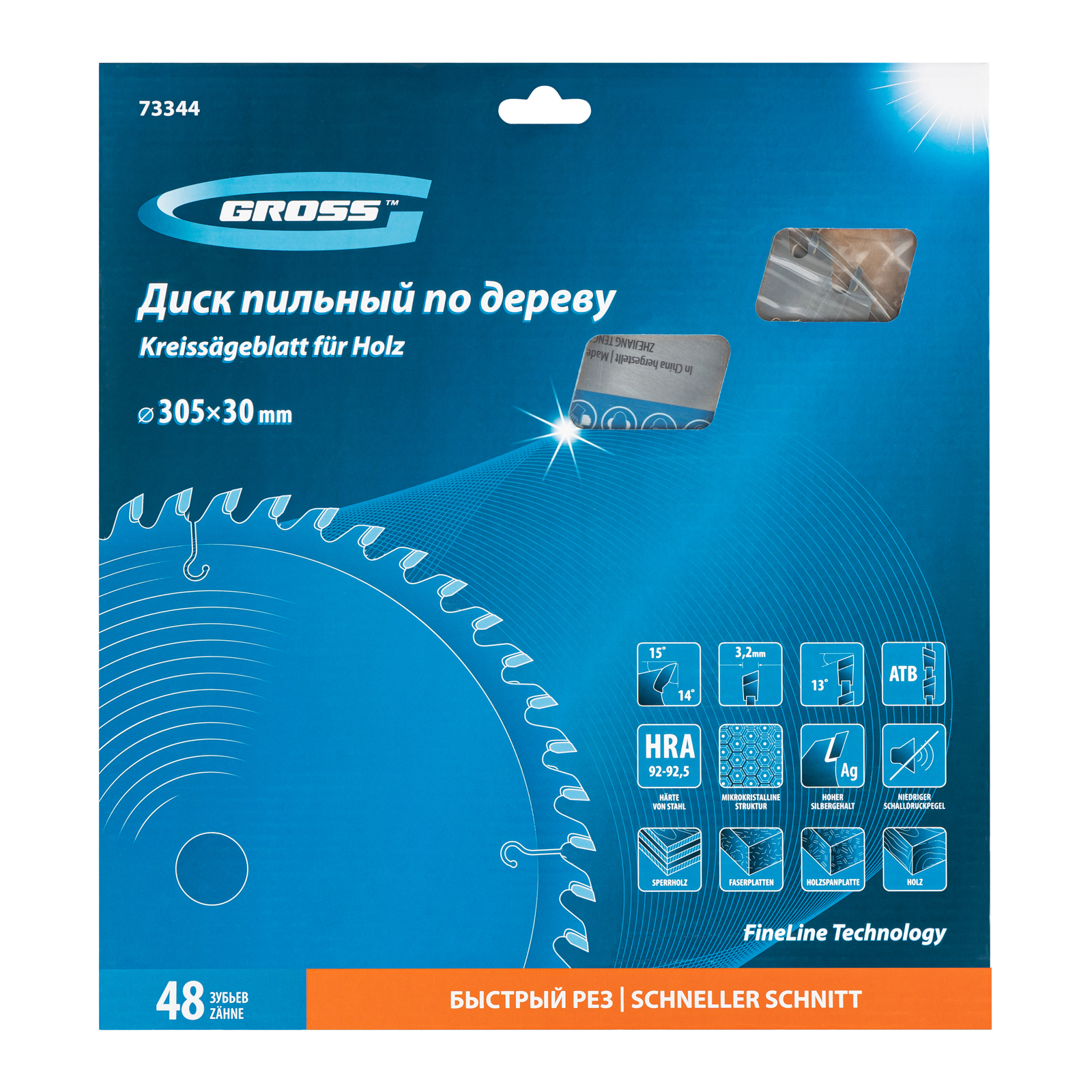 Пильный диск Gross 73344 диаметром 305 х 30 мм, с 48 зубьями, предназначен для распила древесины мягких и твердых пород, ДСП, МДФ и фанеры. Используется в качестве оснастки для циркулярных и торцовочных пил с посадочным диаметром 30 мм, благодаря универсальному типу зубьев АТВ используется преимущественно для поперечного реза материалов. Диск изготовлен на высококачественном оборудовании, специально рассчитан на профессиональное применение и выполнение большого объема работ.