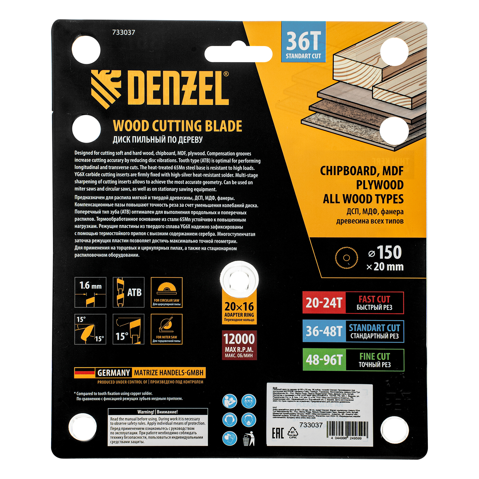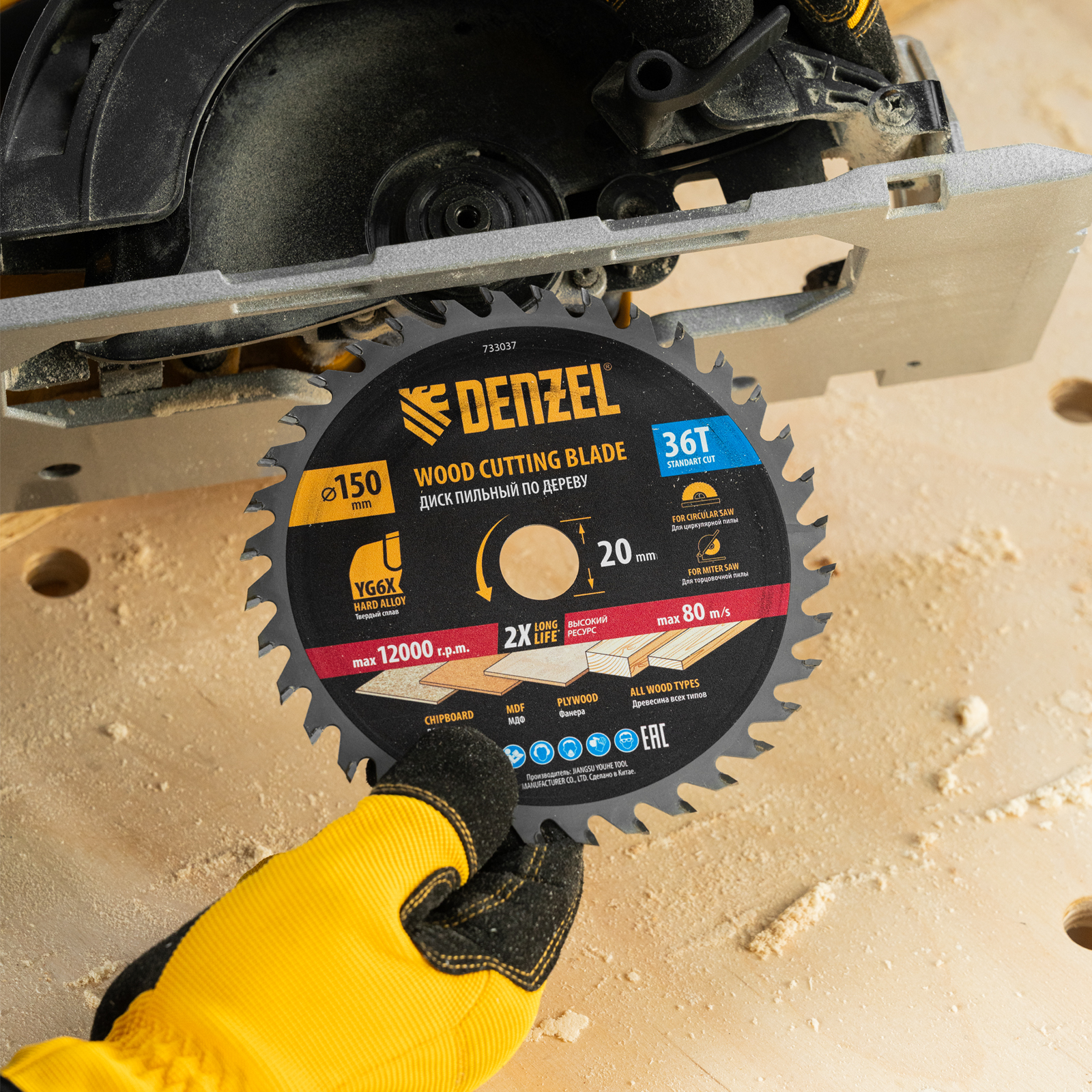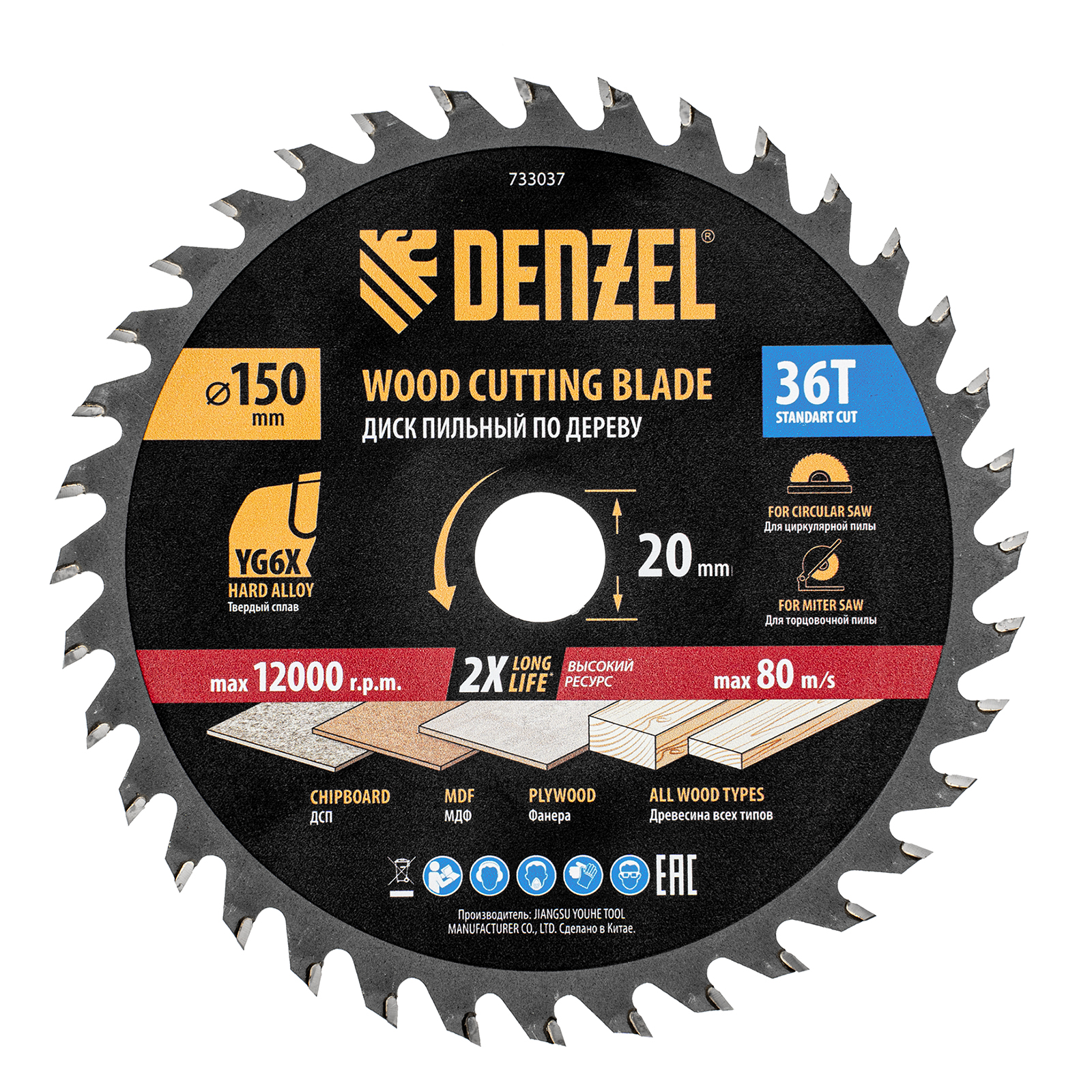Тонкий пильный диск Denzel 733037 диаметром 150 x 20 мм, с 36 зубьями, устанавливается на циркулярную, торцовочную пилу или распиловочный станок и предназначен для выполнения работ по дереву. Подходит для распиливания древесины любого типа, а также фанеры, ДСП, МДФ. Зубья типа ATB обеспечивают высокое качество и скорость как продольного, так и поперечного распила. Тип реза — стандартный. Толщина диска уменьшена, что повышает производительность и снижает нагрузку на инструмент. На зубья напаяны твердосплавные пластины, длительное время сохраняющие режущую способность. Пластины из твердого сплава YG6X прошли многоступенчатую заточку, что позволило достичь оптимальной геометрии и максимальной эффективности распиловки.