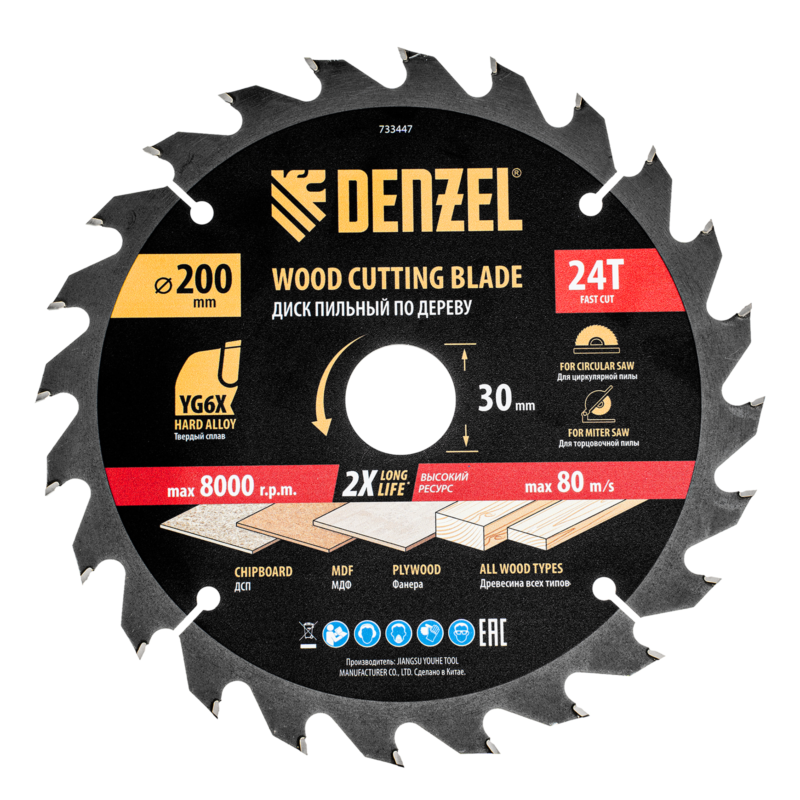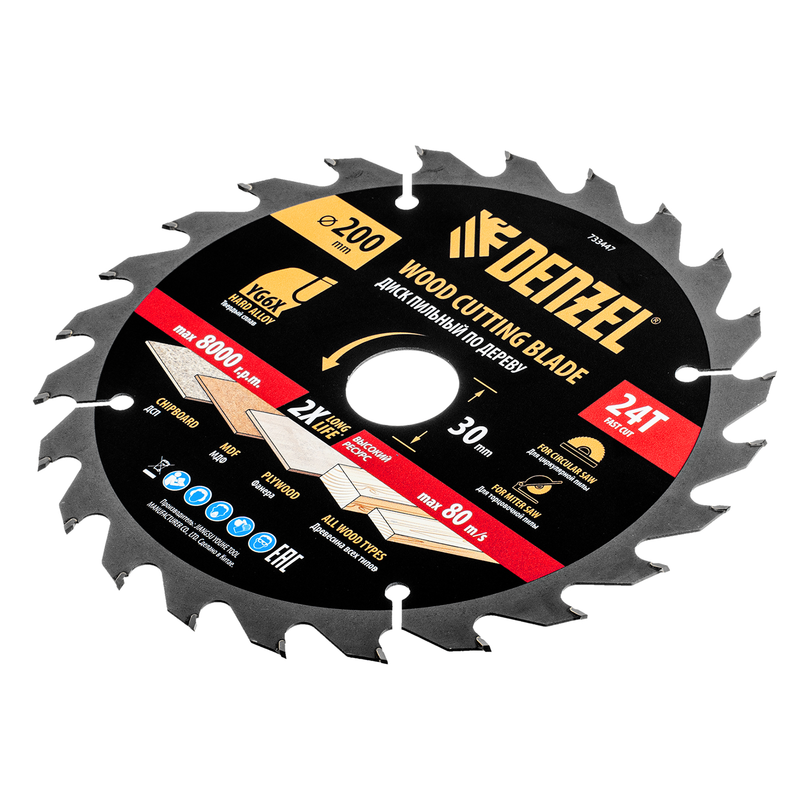 Пильный диск Denzel 733447 диаметром 200 x 30 мм, с 24 зубьями, предназначен для продольного и поперечного распила твердой и мягкой древесины, фанеры, МДФ, ДСП. 24 зуба типа ATB с режущими пластинами оптимальной геометрии обеспечивают быстрый рез. Режущие пластины из твердого сплава YG6X сохраняют рабочие свойства при интенсивном использовании. Диск устанавливается на циркулярную, торцовочную пилу или на распиловочный станок. В комплект поставки входит переходное кольцо с 30 на 20 мм, что позволяет изменить посадочный размер и расширяет возможности использования диска.