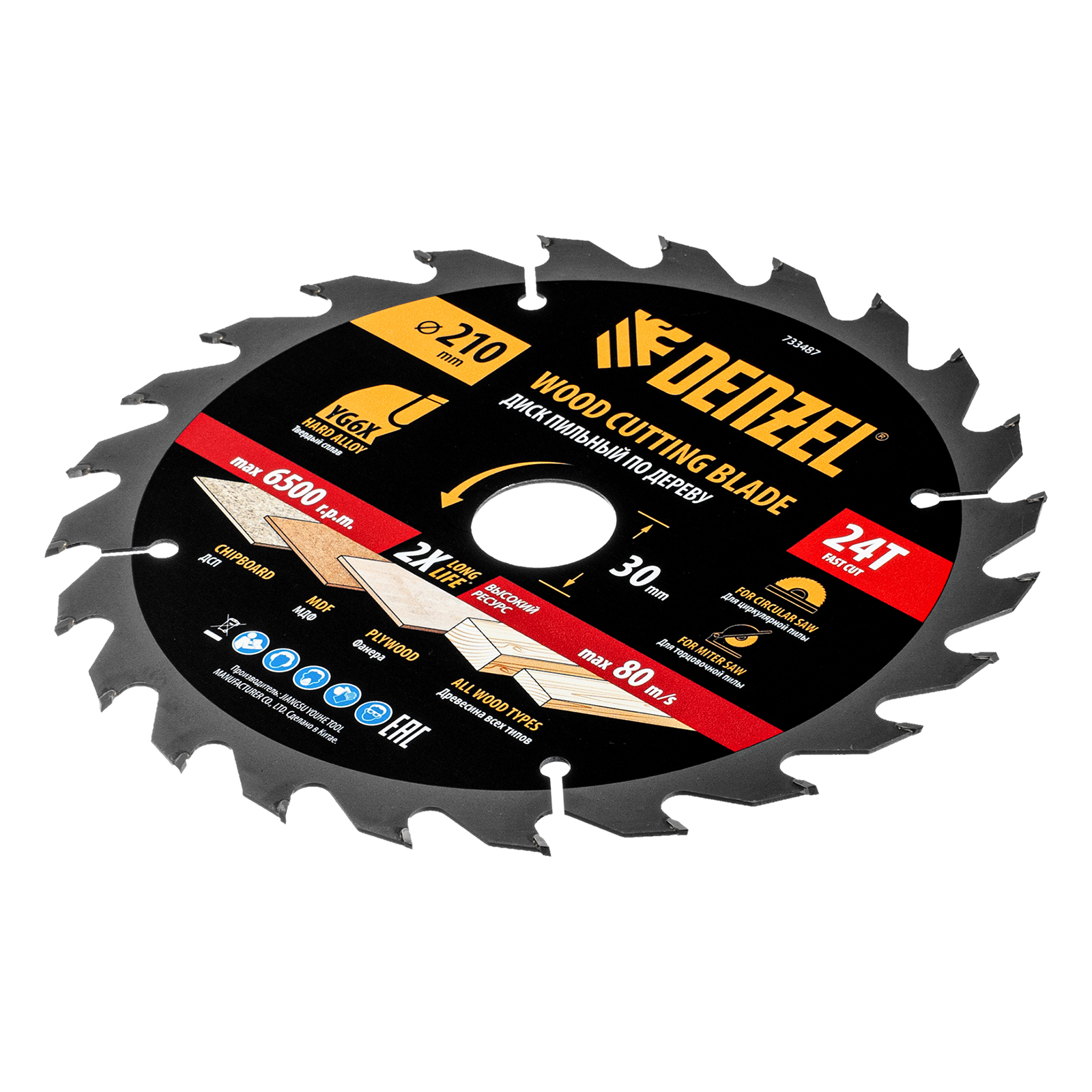 Пильный диск Denzel 733487 диаметром 210 x 30 мм, с 24 зубьями, предназначен для продольного и поперечного распила твердой и мягкой древесины, фанеры, МДФ, ДСП. 24 зуба типа ATB с режущими пластинами оптимальной геометрии обеспечивают быстрый рез. Режущие пластины из твердого сплава YG6X сохраняют рабочие свойства при интенсивном использовании. Диск устанавливается на циркулярную, торцовочную пилу или на распиловочный станок. В комплект поставки входит переходное кольцо с 30 на 20 мм, что позволяет изменить посадочный размер и расширяет возможности использования диска.