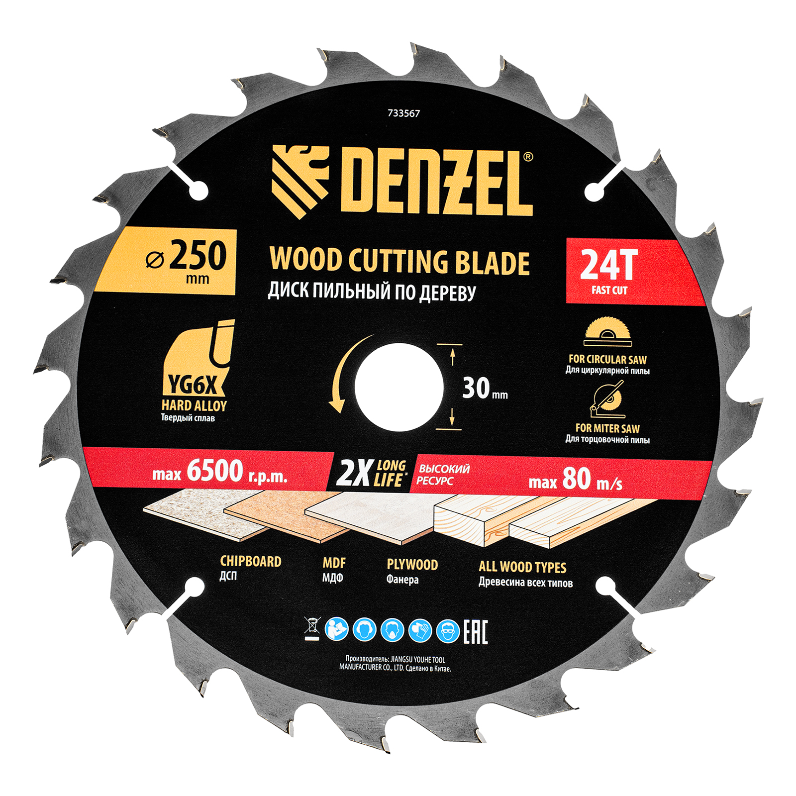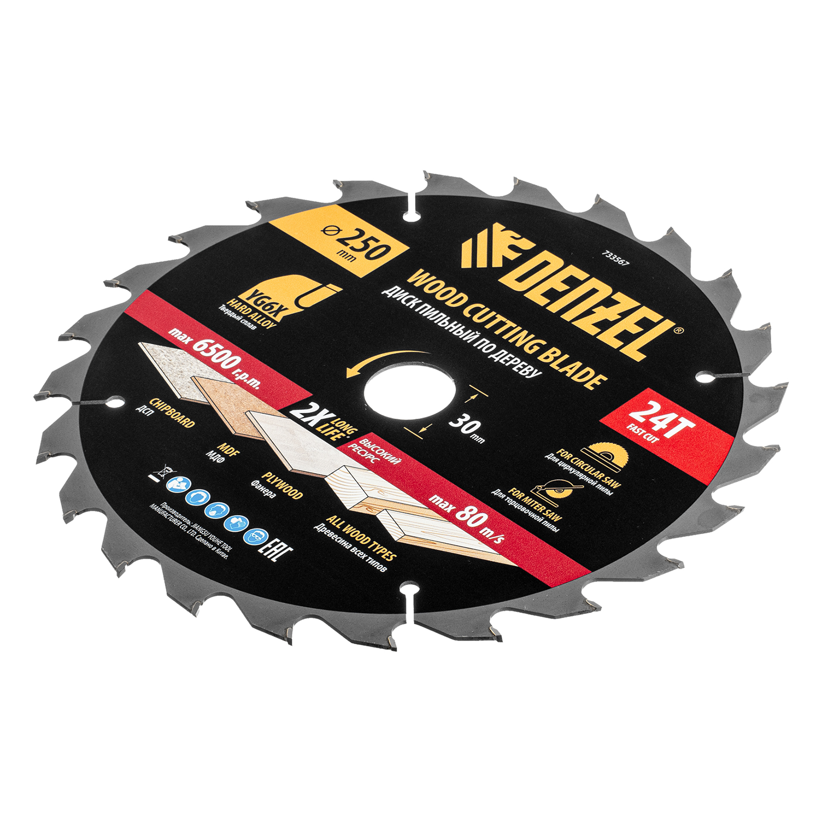 Пильный диск Denzel 733567 диаметром 250 x 30 мм, с 24 зубьями, предназначен для продольного и поперечного распила твердой и мягкой древесины, фанеры, МДФ, ДСП. 24 зуба типа ATB с режущими пластинами оптимальной геометрии обеспечивают быстрый рез. Режущие пластины из твердого сплава YG6X сохраняют рабочие свойства при интенсивном использовании. Диск устанавливается на циркулярную, торцовочную пилу или на распиловочный станок. В комплект поставки входит переходное кольцо с 30 на 20 мм, что позволяет изменить посадочный размер и расширяет возможности использования диска.