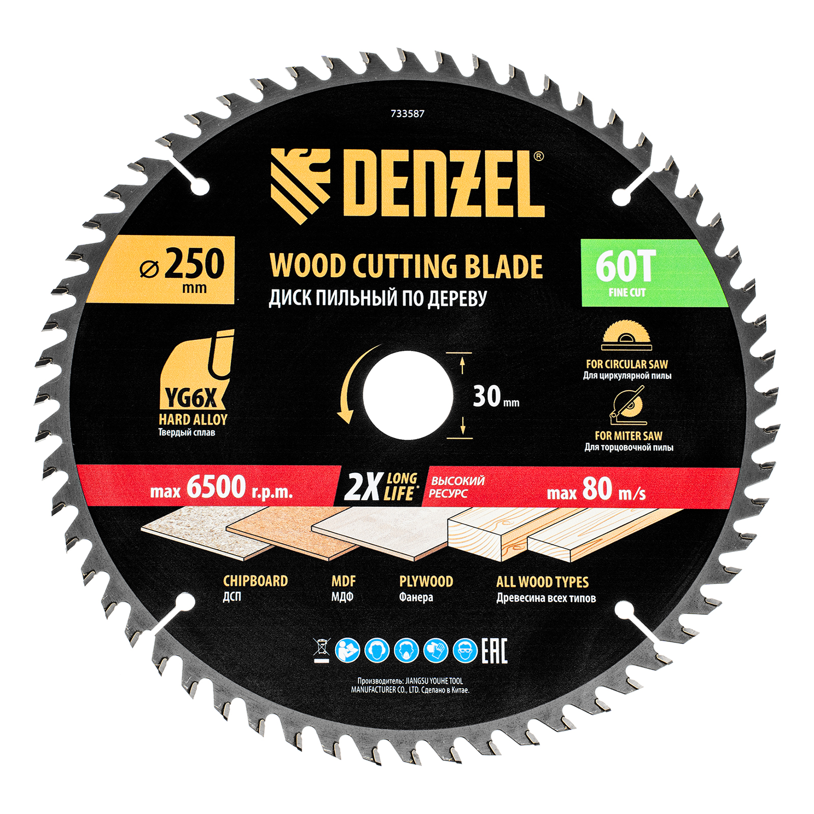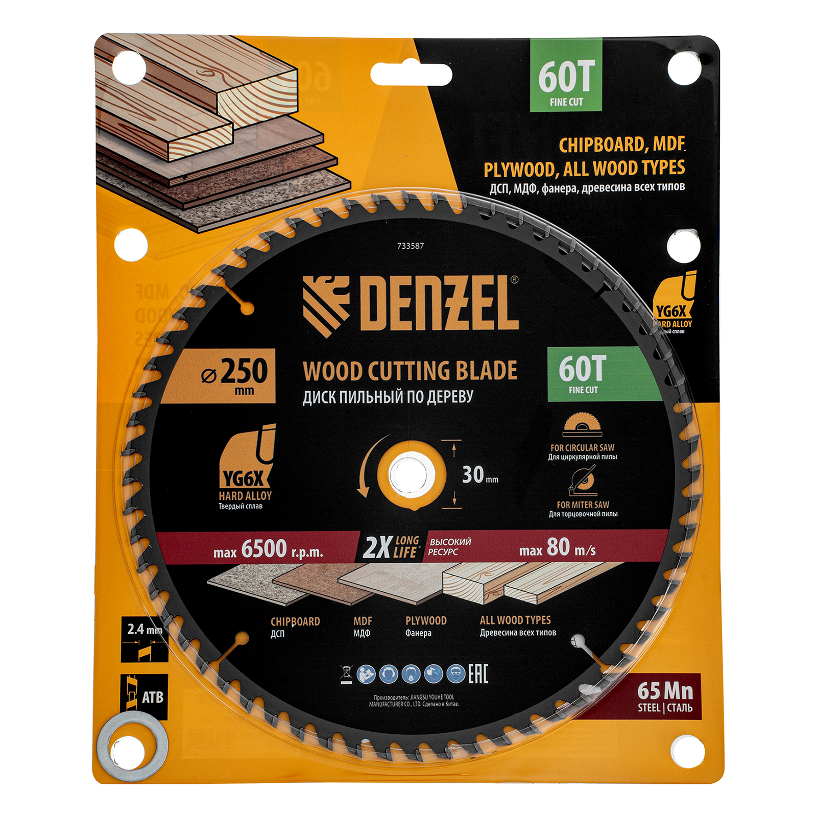 Пильный диск Denzel 733587 диаметром 250 x 30 мм, с 60 зубьями, предназначен для точного продольного и поперечного распила твердой и мягкой древесины, фанеры, МДФ, ДСП. 60 зубьев типа ATB с режущими пластинами оптимальной геометрии обеспечивают чистый рез. Режущие пластины из твердого сплава YG6X сохраняют рабочие свойства при интенсивном использовании. Диск устанавливается на циркулярную, торцовочную пилу или на распиловочный станок. В комплект поставки входит переходное кольцо с 30 на 20 мм, что позволяет изменить посадочный размер и расширяет возможности использования диска.