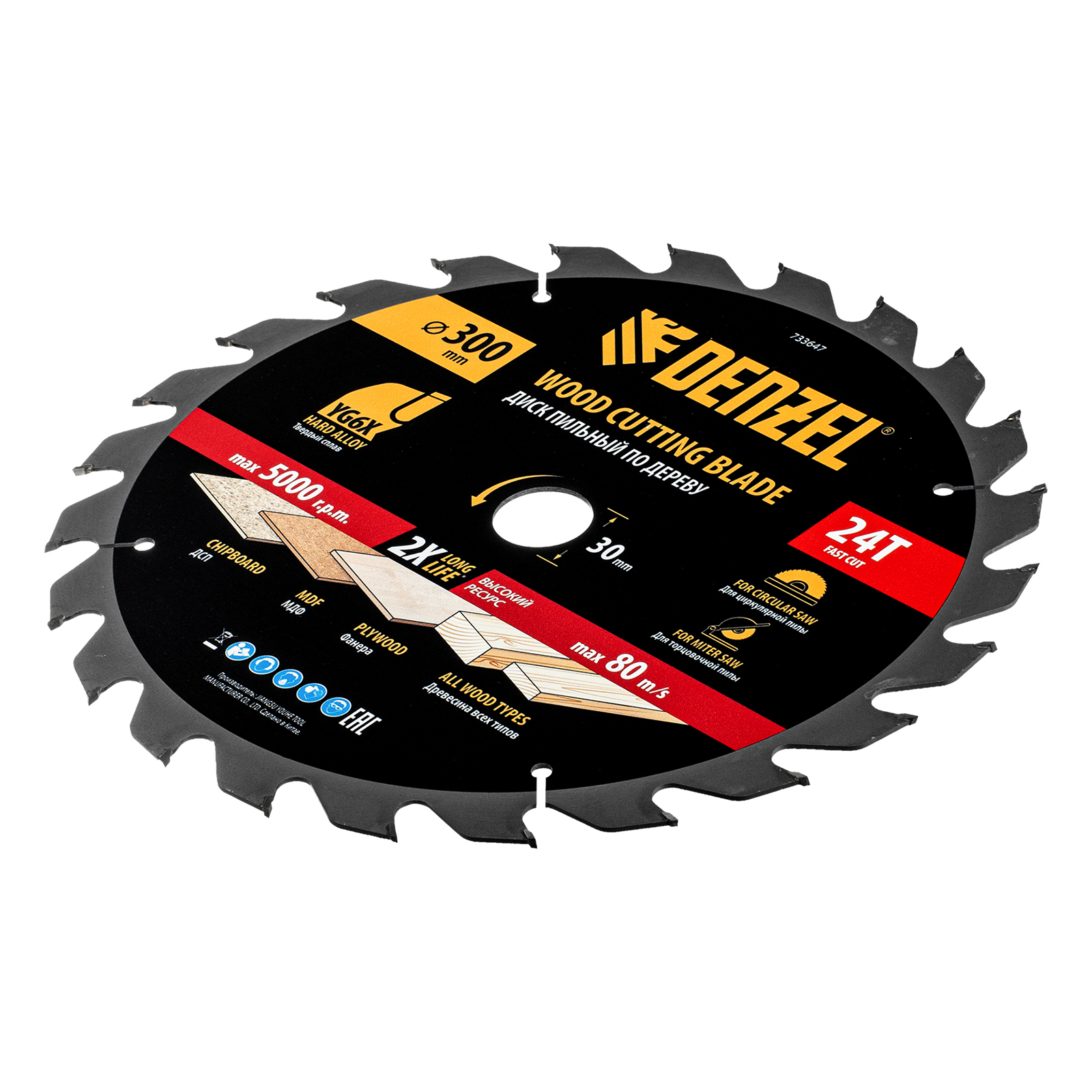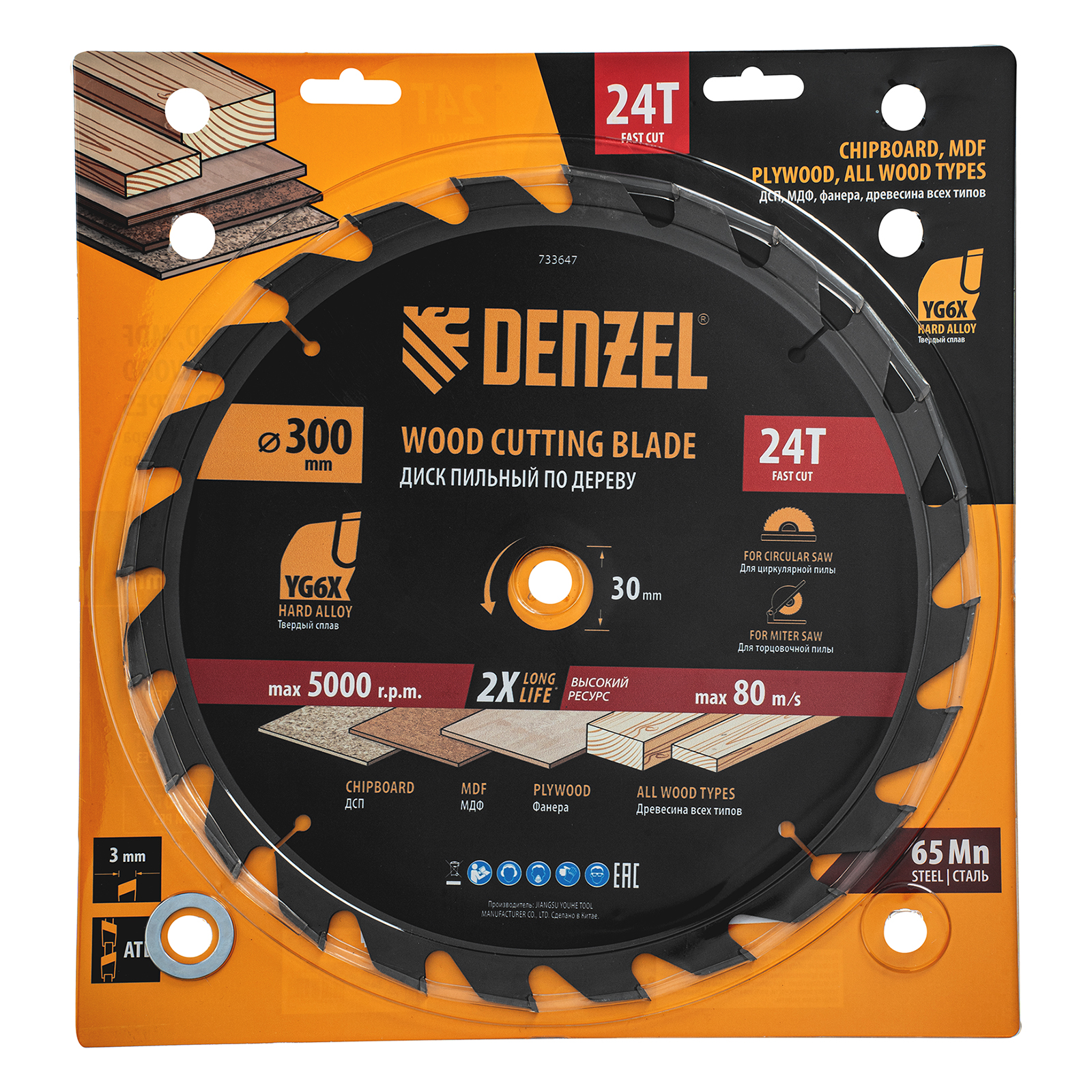 Пильный диск Denzel 733647 диаметром 300 x 30 мм, с 24 зубьями, предназначен для продольного и поперечного распила твердой и мягкой древесины, фанеры, МДФ, ДСП. 24 зуба типа ATB с режущими пластинами оптимальной геометрии обеспечивают быстрый рез. Режущие пластины из твердого сплава YG6X сохраняют рабочие свойства при интенсивном использовании. Диск устанавливается на циркулярную, торцовочную пилу или на распиловочный станок. В комплект поставки входит переходное кольцо с 30 на 20 мм, что позволяет изменить посадочный размер и расширяет возможности использования диска.