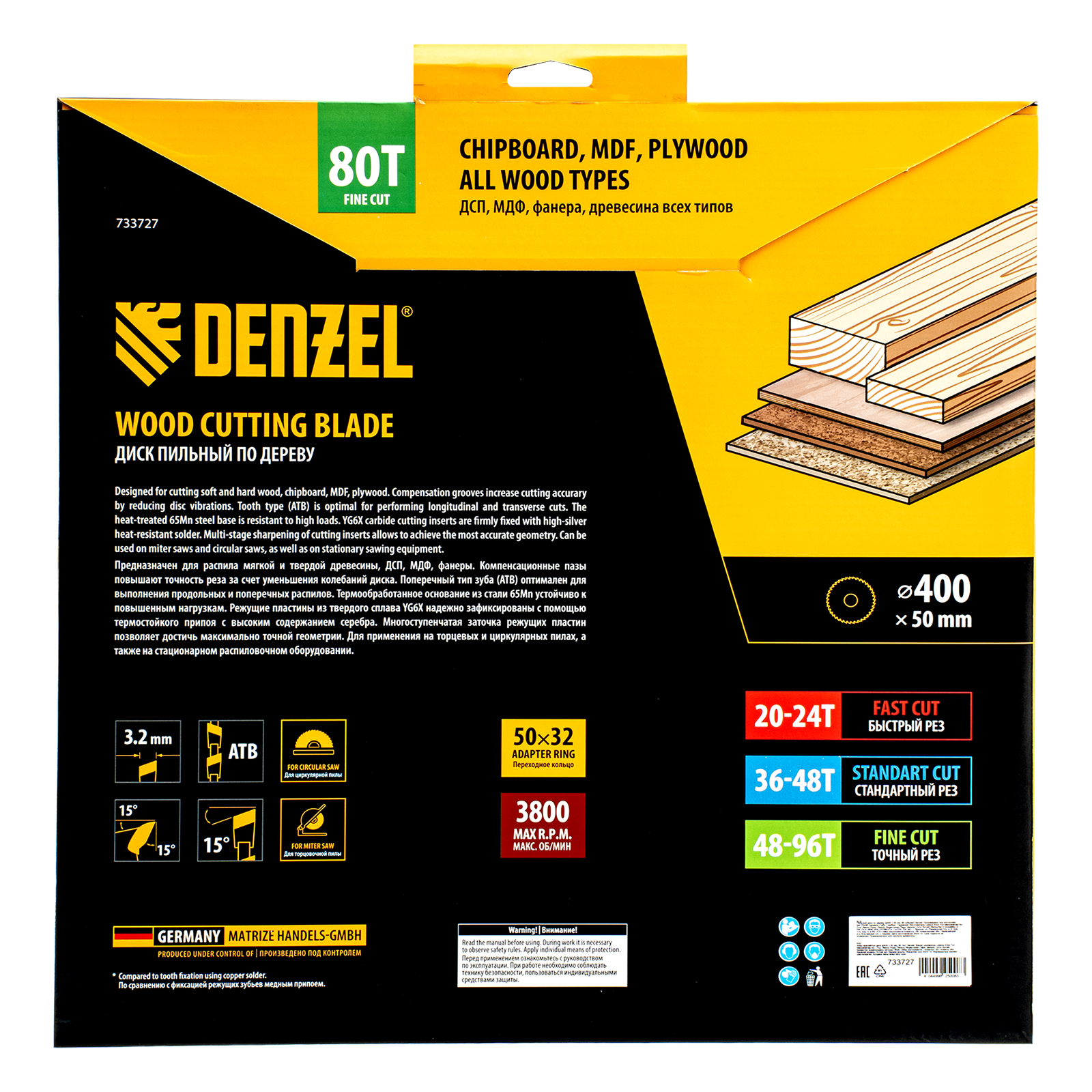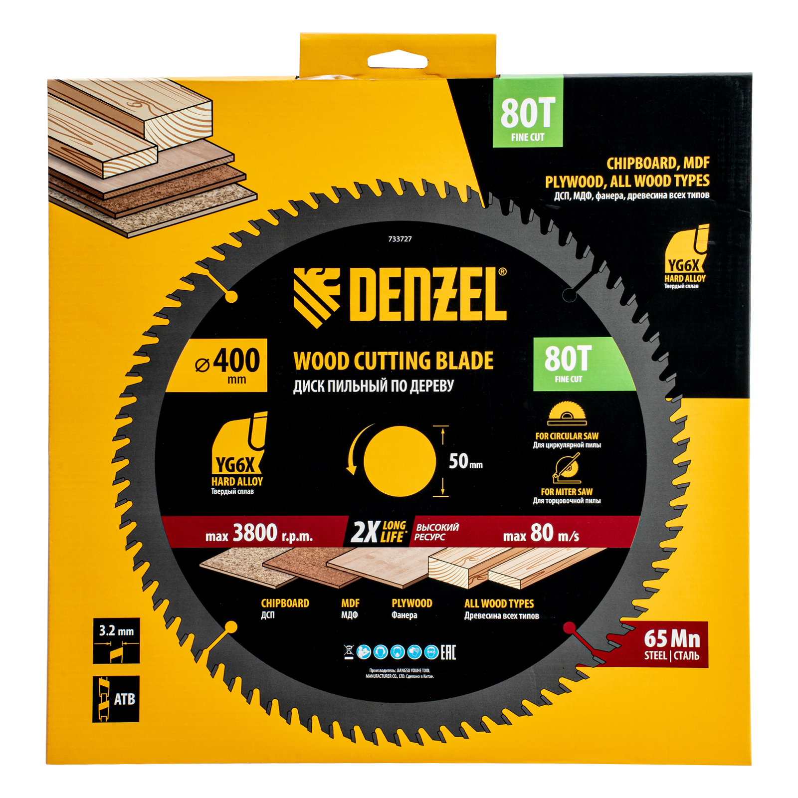 Пильный диск Denzel 733727 диаметром 400 x 50 мм, с 80 зубьями, предназначен для точного продольного и поперечного распила твердой и мягкой древесины, фанеры, МДФ, ДСП. 80 зубьев типа ATB с режущими пластинами оптимальной геометрии обеспечивают максимально чистый рез. Режущие пластины из твердого сплава YG6X сохраняют рабочие свойства при интенсивном использовании. Диск устанавливается на циркулярную, торцовочную пилу или на распиловочный станок. В комплект поставки входит переходное кольцо с 50 на 32 мм, что позволяет изменить посадочный размер и расширяет возможности использования диска.
