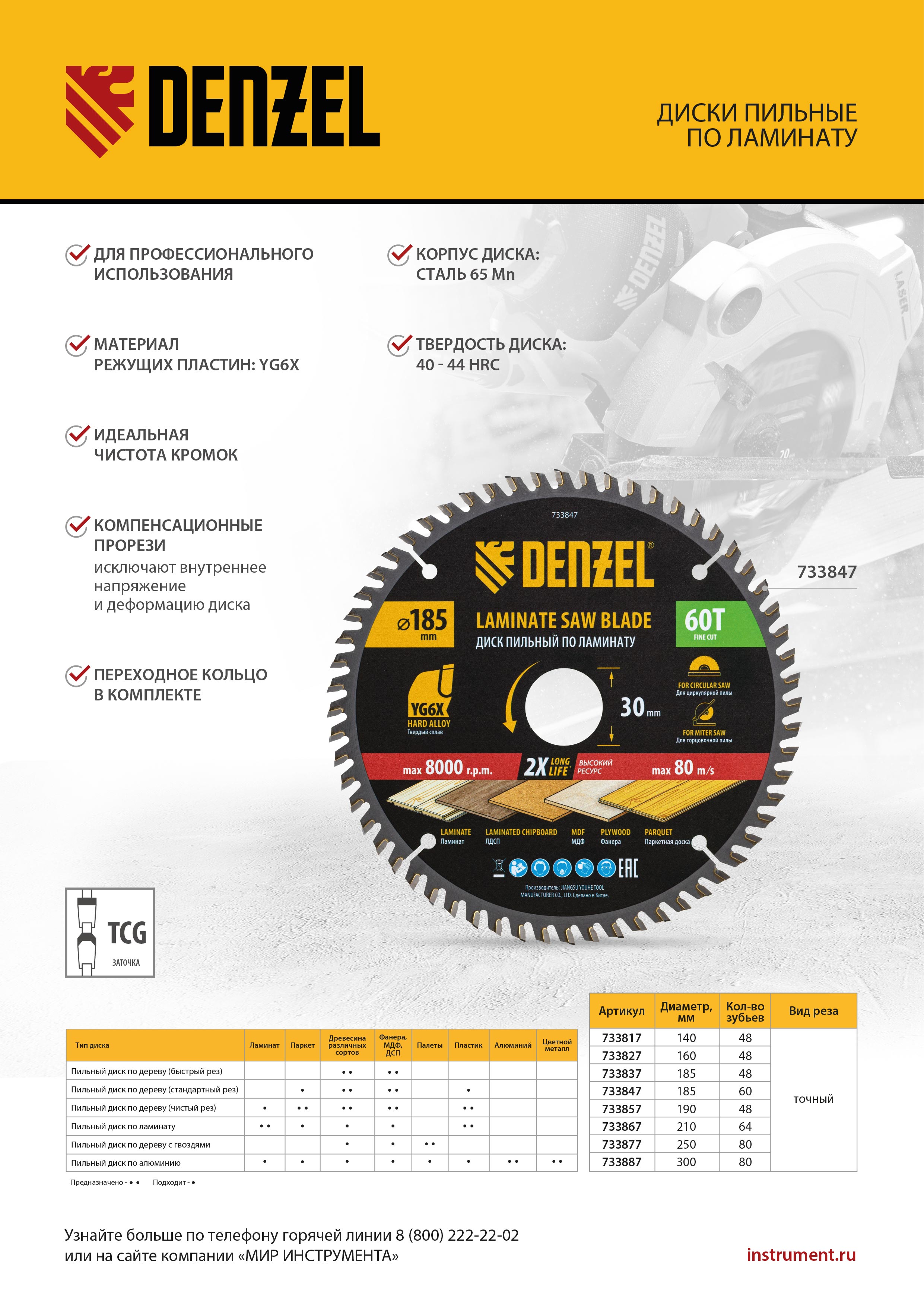 - Эффективность — зубья из твердого сплава YG6X, прошедшие многоступенчатую заточку, обеспечивают высокую производительность.