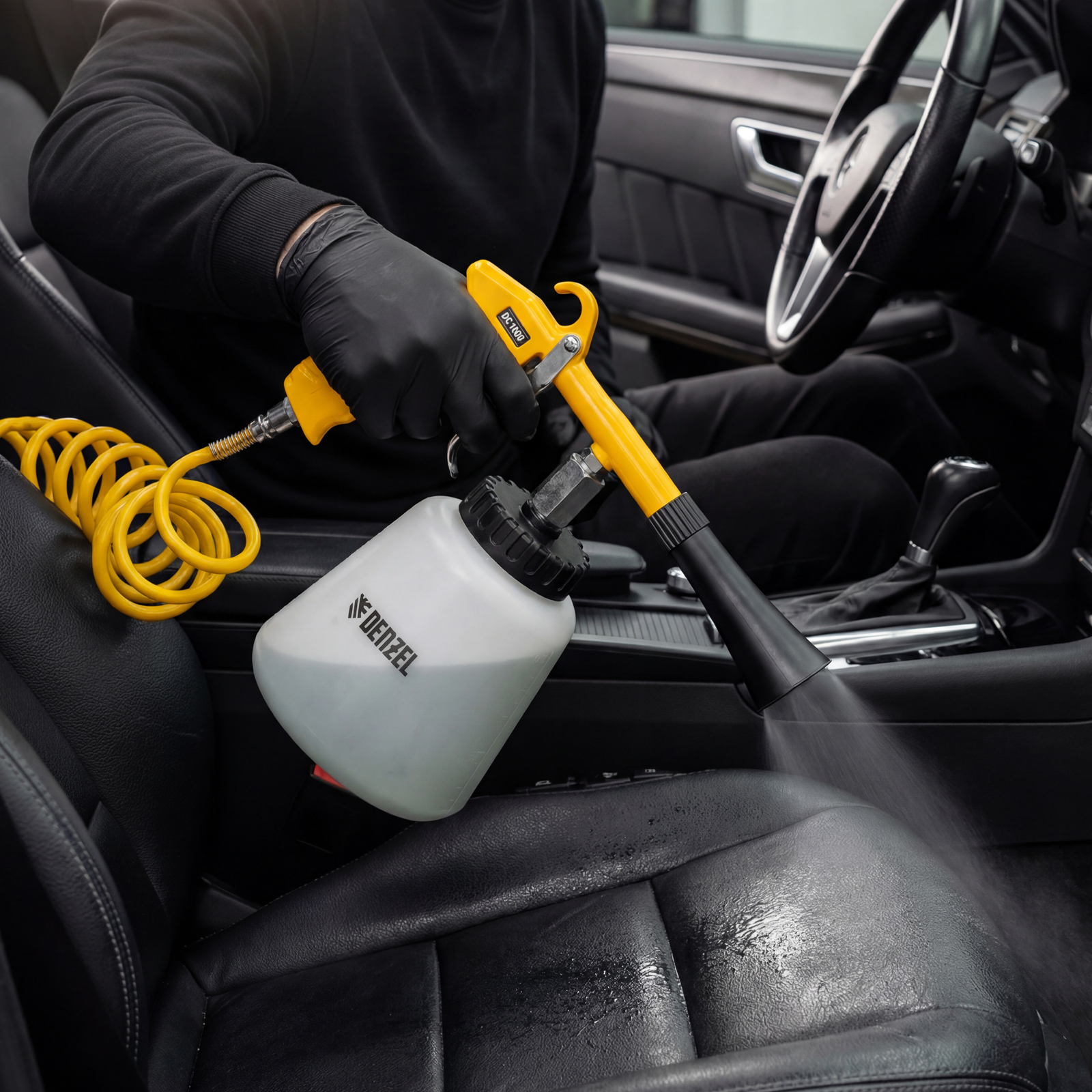 Пневматический пистолет для химчистки Denzel DC1000 57331 предназначен для очищения различных поверхностей: велюра, ткани, пластика, винила и т.д. Поможет удалить загрязнения с обивки сидений в салоне автомобиля, дверных порогов, приборной панели, удобен для обработки труднодоступных мест. Инструмент подходит для сухой и влажной чистки. Частота вращения форсунки составляет 6000 об/мин, что позволяет успешно решать поставленные задачи.