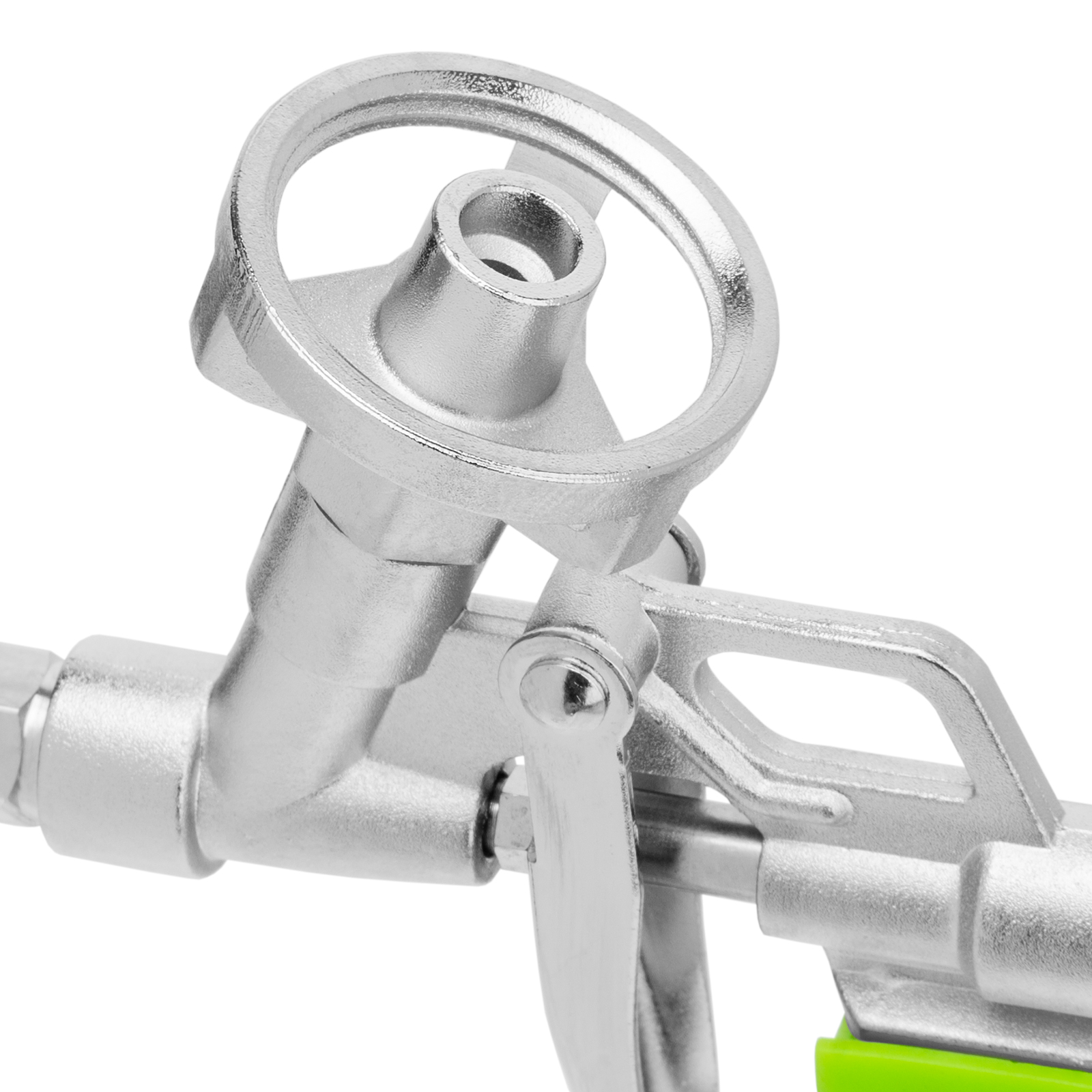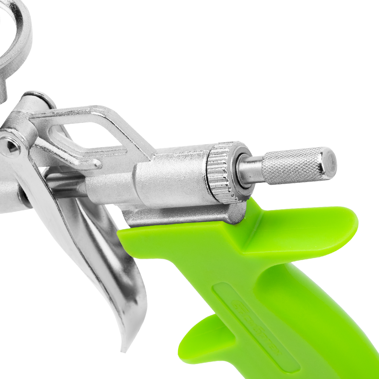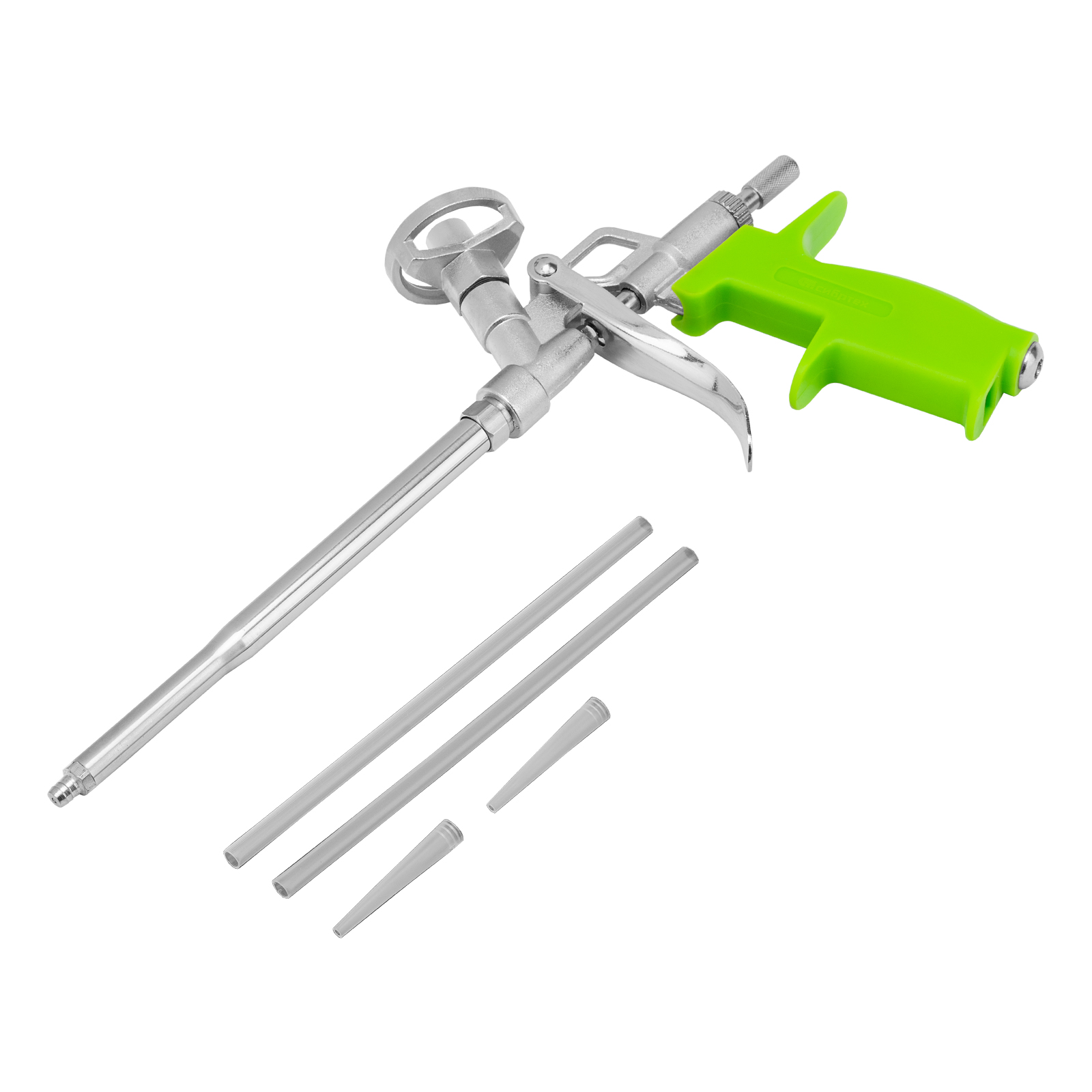 - Контроль скорости и объема выпуска монтажной пены — производитель предусмотрел трещоточный винт-регулятор.
