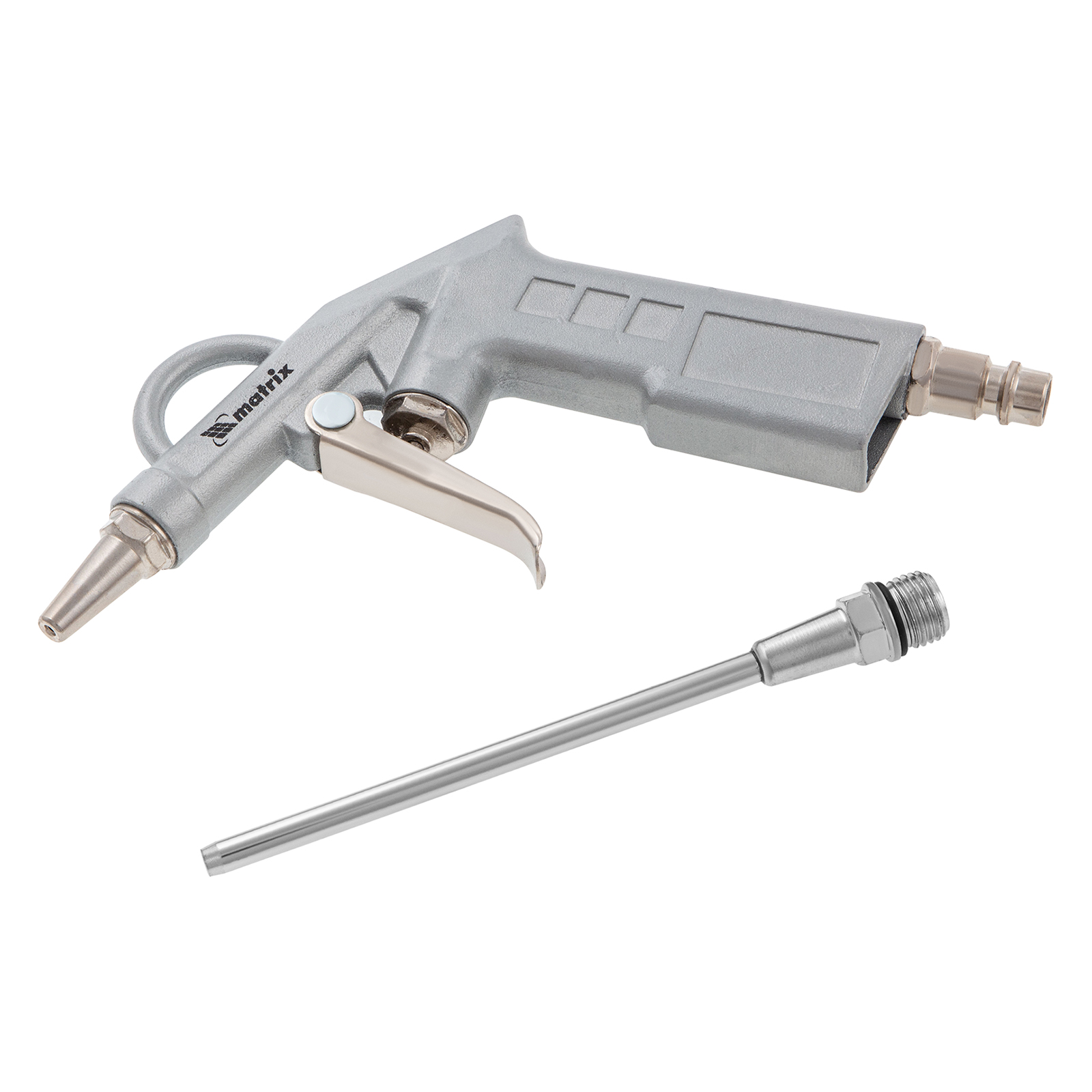Пистолет продувочный Matrix 57332 оснащен удлиненным металлическим соплом длиной 135 мм, поэтому идеально подходит для применения в труднодоступных и узких местах. Работает под давлением до 8 бар, быстро удаляет пыль, грязь, опилки, стружку, строительный мусор не только из маленьких отверстий, но и с больших поверхностей, из трубопроводов и технологических каналов. Работа на сжатом воздухе обеспечивает высокую пожаробезопасность и позволяет осуществлять продувку изделий и поверхностей во влажных помещениях.