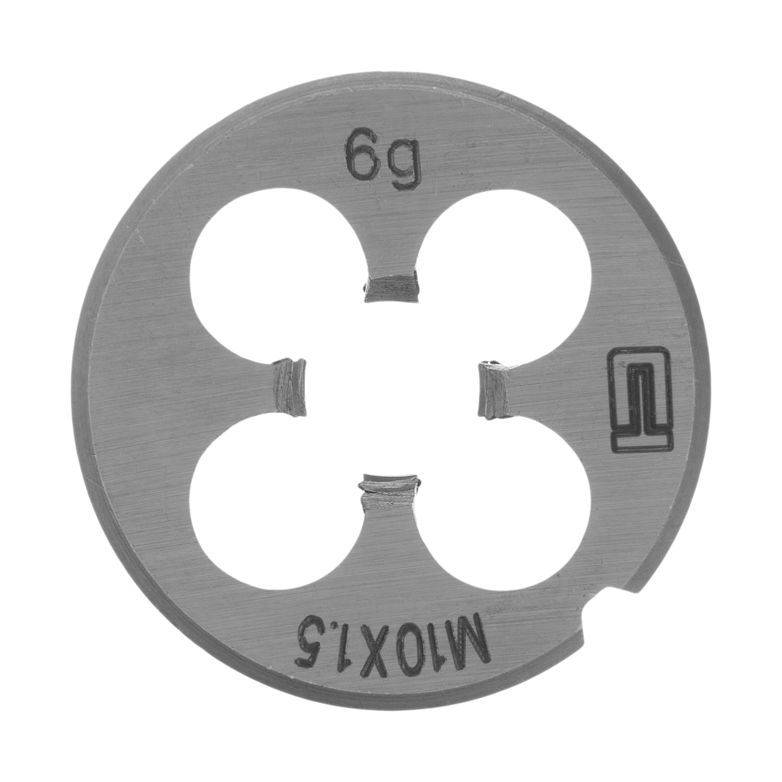 Плашка Сибртех 77027 типоразмера М10 х 1,5 мм предназначена для нарезания внешней метрической резьбы. Проста в использовании, поэтому пригодится даже начинающему мастеру для проведения слесарных и монтажных работ в быту. Цельная конструкция плашки позволяет полностью захватить деталь и нарезать высокоточную резьбу за один проход.