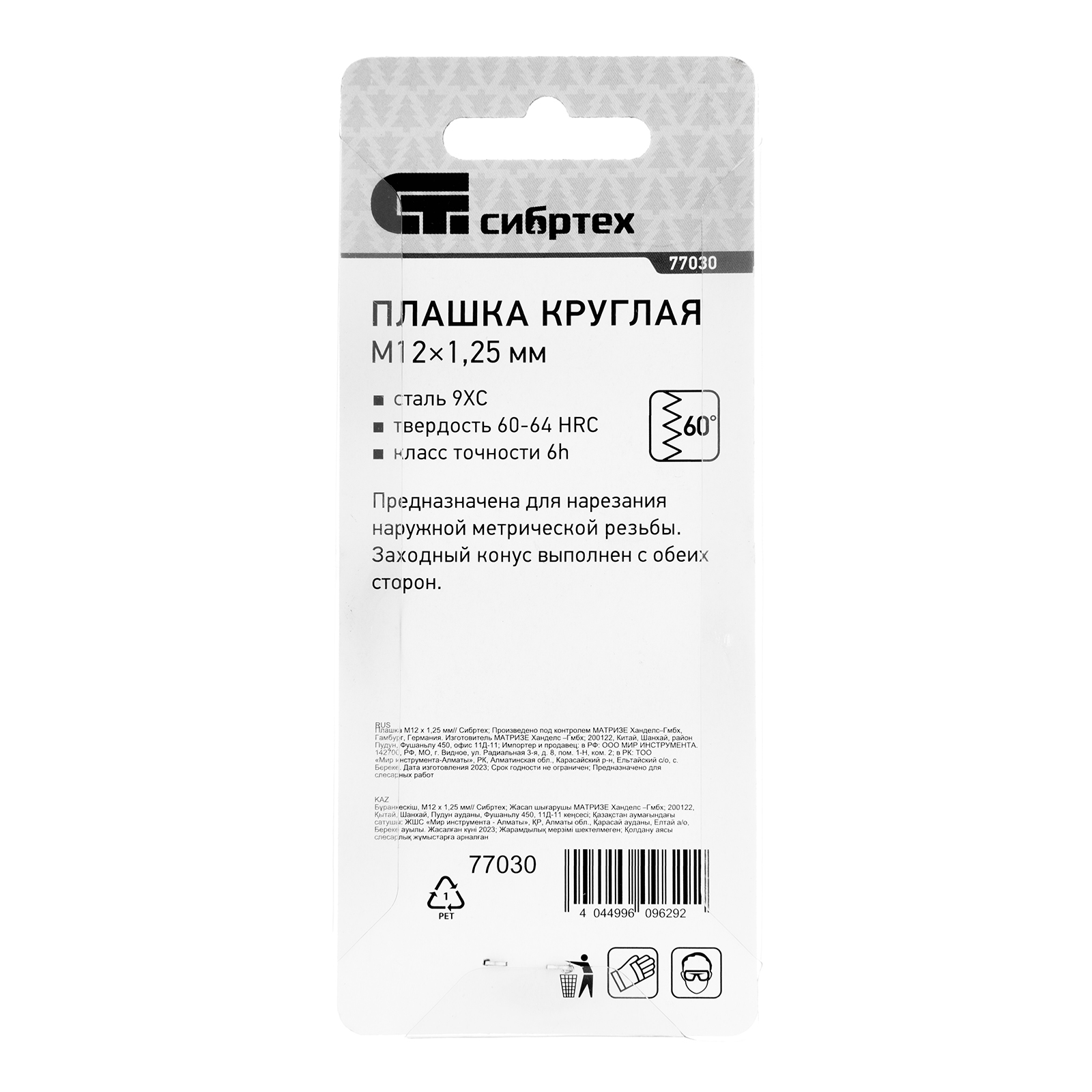 - Надежность и долговечность — плашка изготовлена из инструментальной стали 9XC, режущие кромки закалены до твердости 60 HRC в соответствии с ГОСТом.