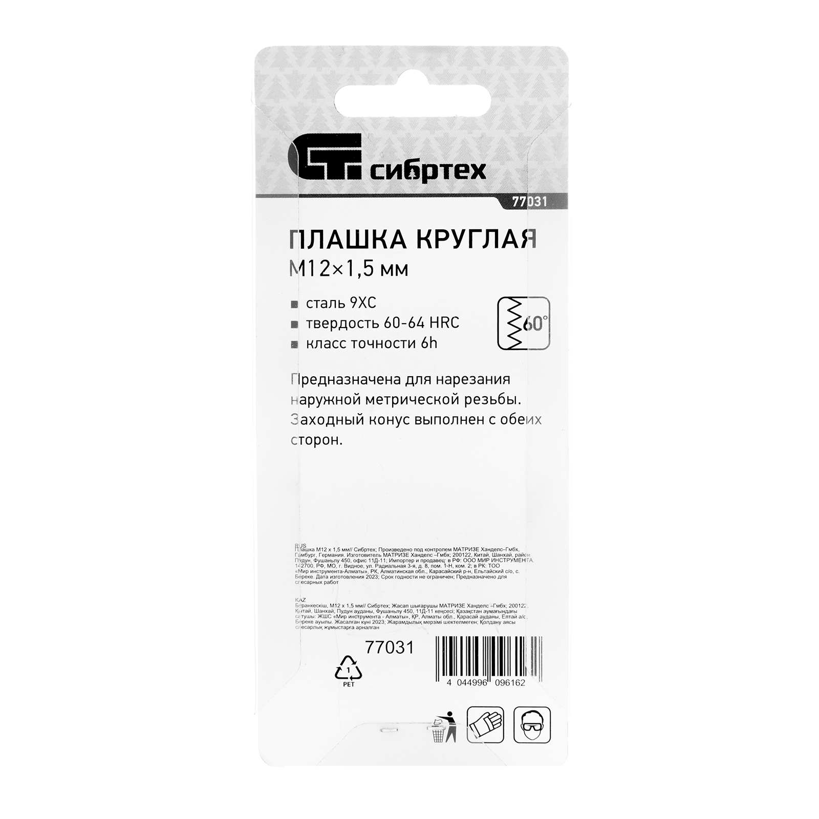 Плашка Сибртех 77031 типоразмера М12 х 1,5 мм предназначена для нарезания внешней метрической резьбы. Проста в использовании, поэтому пригодится даже начинающему мастеру для проведения слесарных и монтажных работ в быту. Цельная конструкция плашки позволяет полностью захватить деталь и нарезать высокоточную резьбу за один проход.
