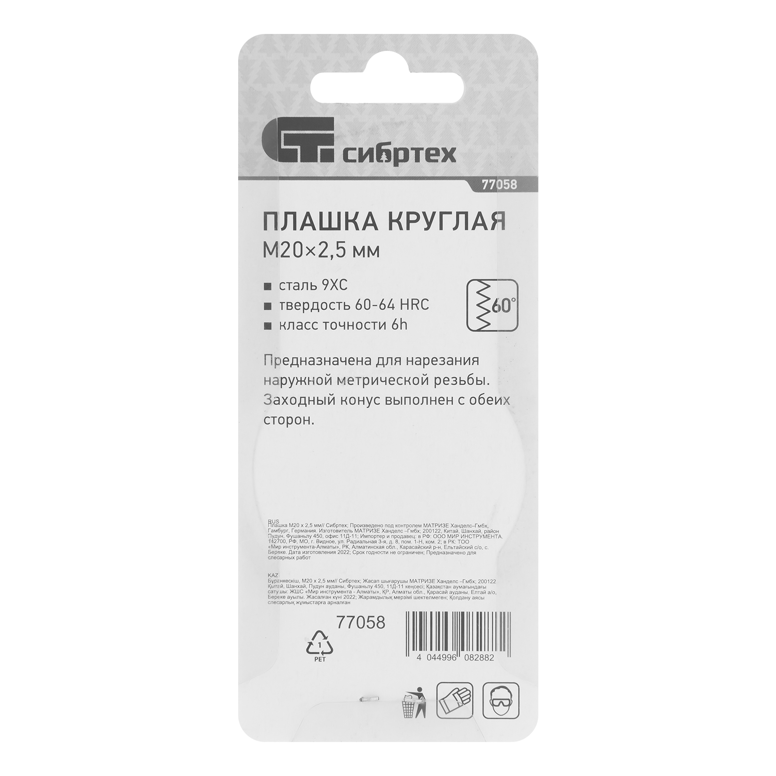 Плашка Сибртех 77058 типоразмера М20 х 2,5 мм предназначена для нарезания внешней метрической резьбы. Проста в использовании, поэтому пригодится даже начинающему мастеру для проведения слесарных и монтажных работ в быту. Цельная конструкция плашки позволяет полностью захватить деталь и нарезать высокоточную резьбу за один проход.