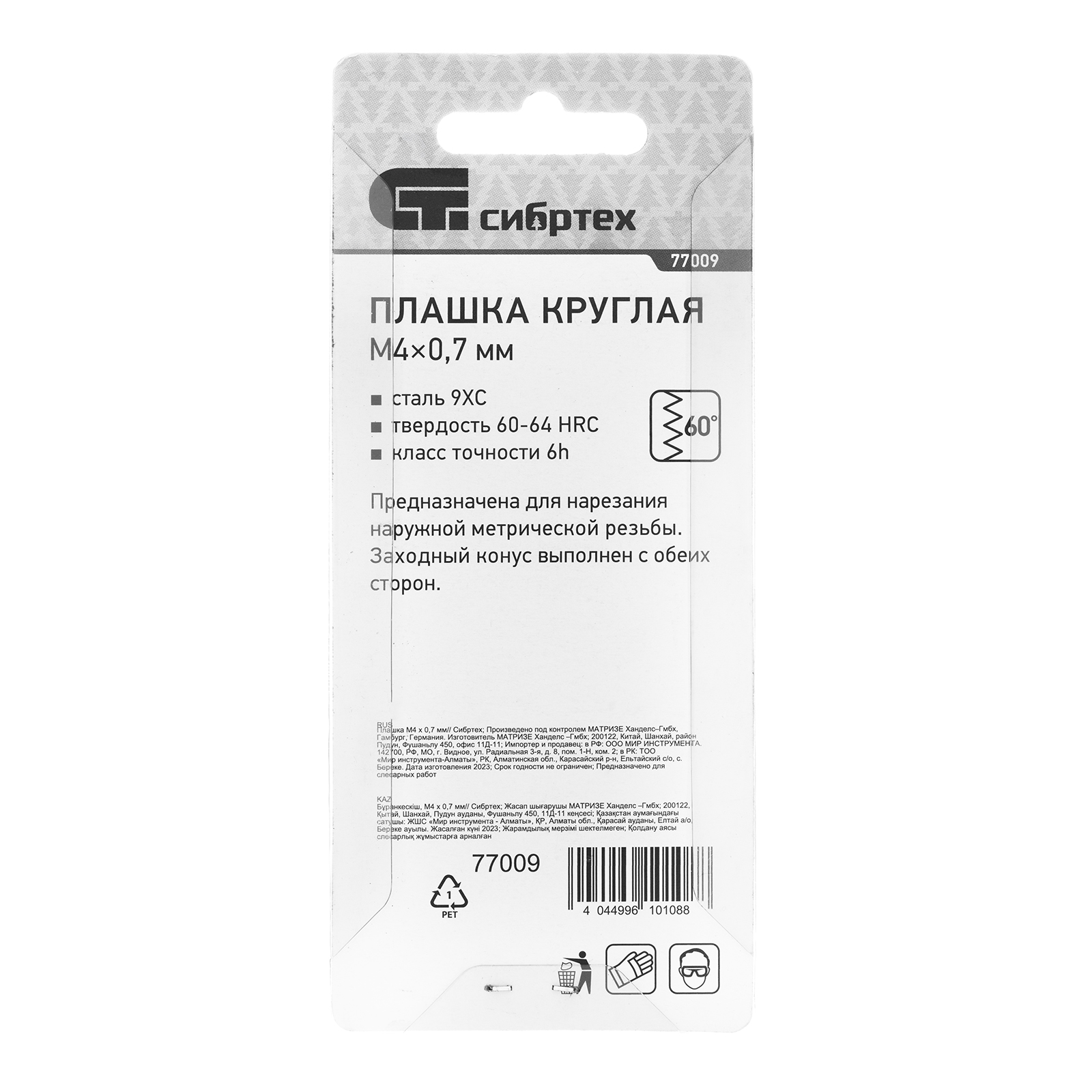 - Надежность и долговечность — плашка изготовлена из инструментальной стали 9XC, режущие кромки закалены до твердости 60 HRC в соответствии с ГОСТом.