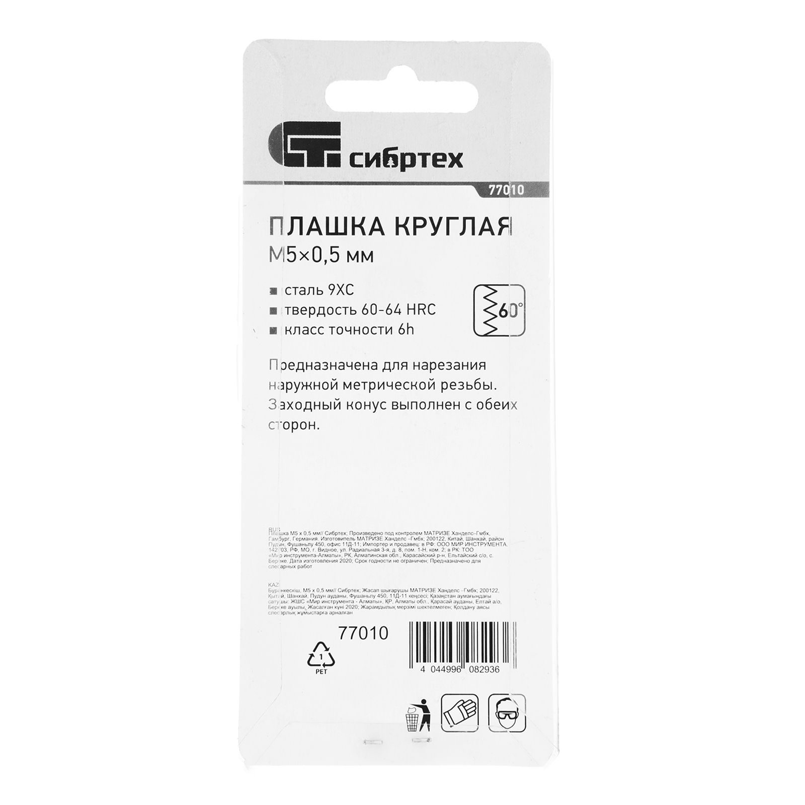 Плашка Сибртех 77010 типоразмера М5 х 0,5 мм предназначена для нарезания внешней метрической резьбы. Проста в использовании, поэтому пригодится даже начинающему мастеру для проведения слесарных и монтажных работ в быту. Цельная конструкция плашки позволяет полностью захватить деталь и нарезать высокоточную резьбу за один проход.