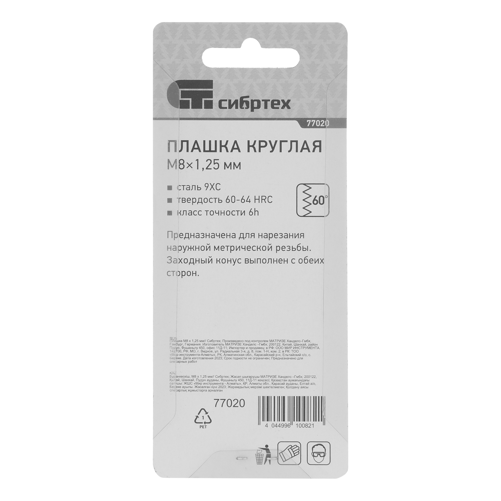 - Надежность и долговечность — плашка изготовлена из инструментальной стали 9XC, режущие кромки закалены до твердости 60 HRC в соответствии с ГОСТом.