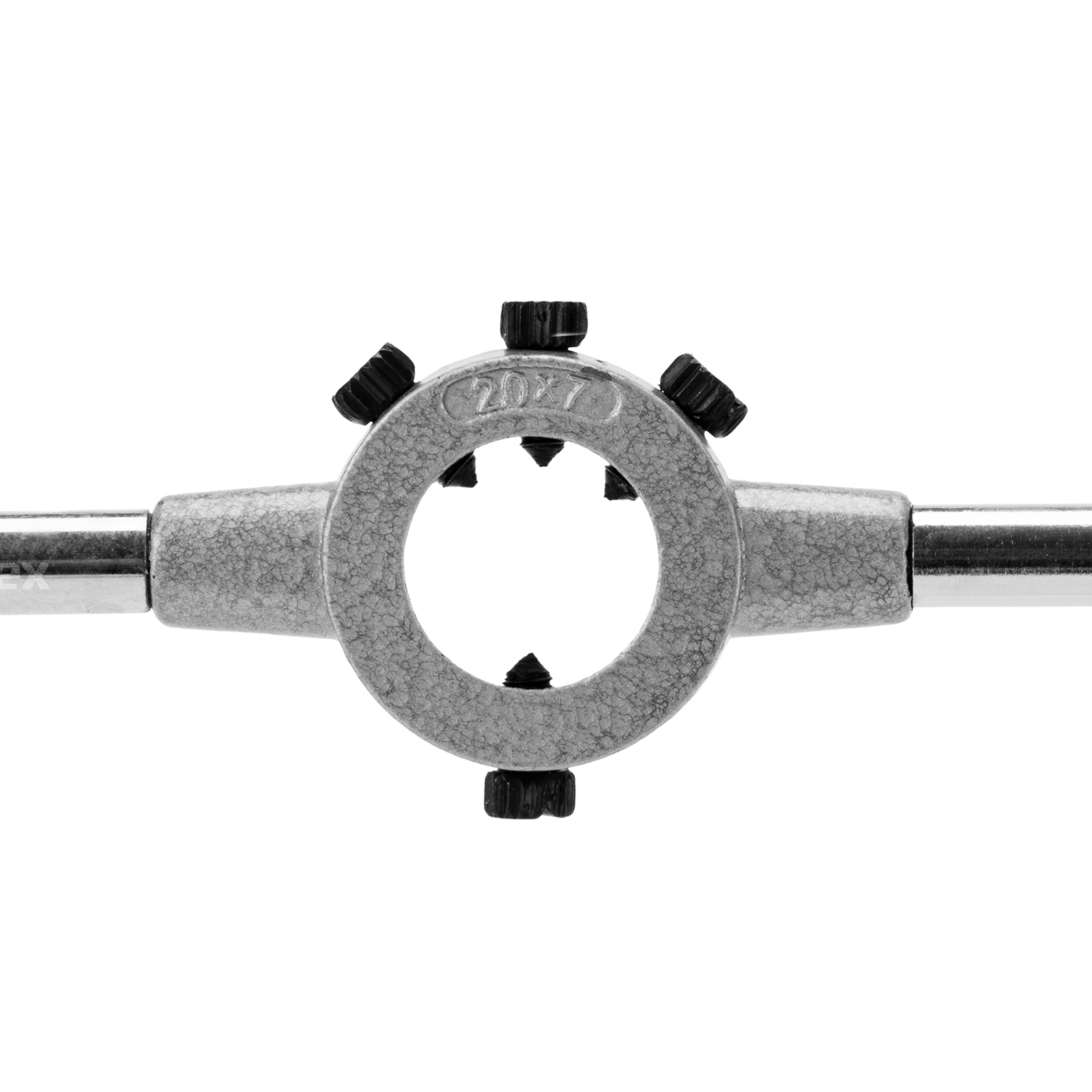 Плашкодержатель Сибртех 77420 предназначен для захвата плашек диаметром 20 мм. Пригодится для ручного нарезания резьбы при проведении слесарных и монтажных работ. Плашкодержатель позволяет приложить необходимое усилие для создания ровной резьбы.