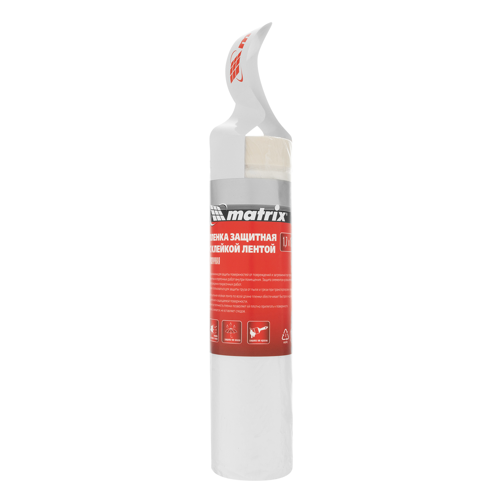 Защитная пленка с клеящей лентой Matrix 88752 размером 1700 мм х 15 м предотвращает загрязнение мебели, дверей, стен во время ремонта, также используется при покраске кузова автомобиля и перевозке грузов. Благодаря клейкой ленте надежно фиксируется на поверхностях, после использования легко снимается и не оставляет следов.