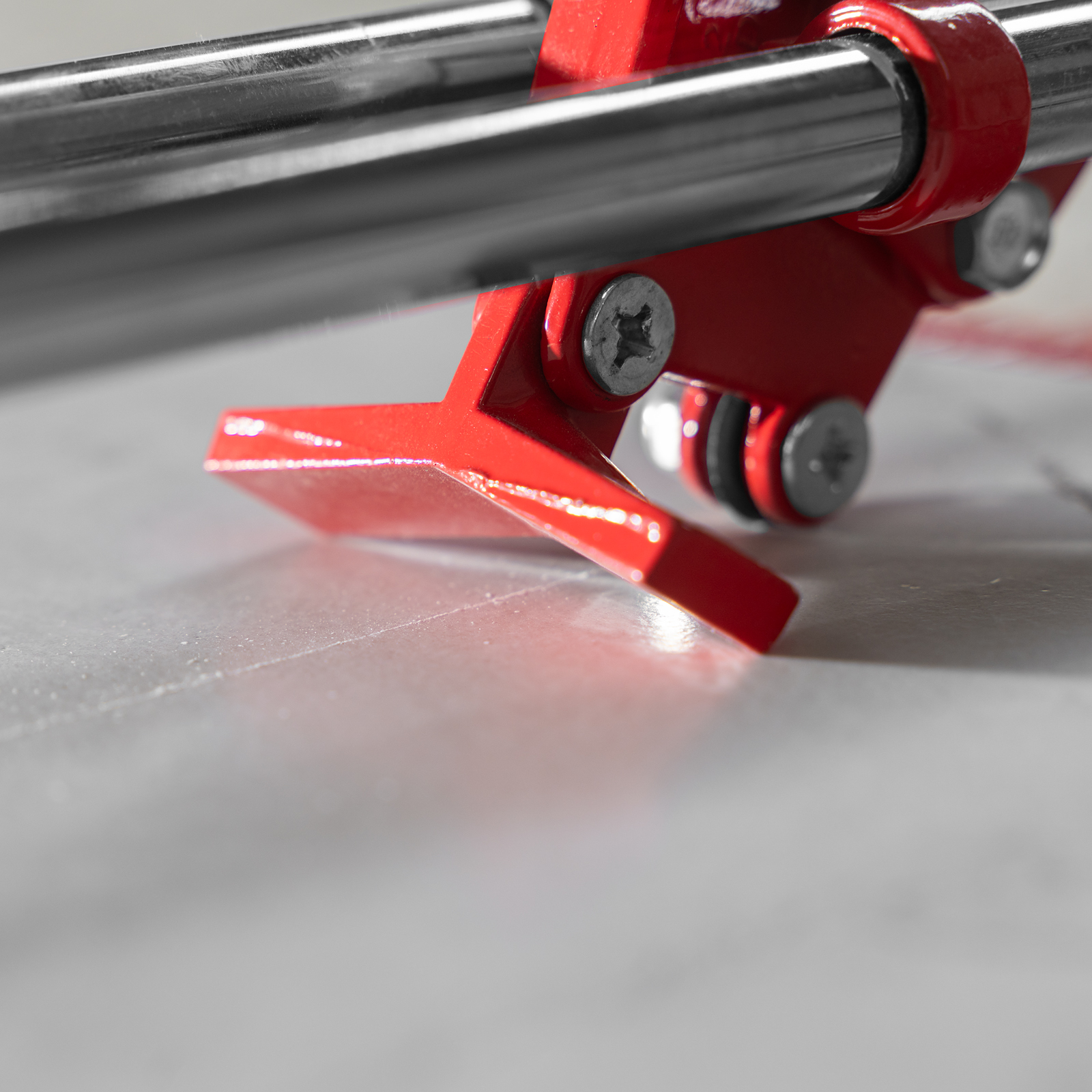 - Высокое качество работы — стальное основание обеспечивает устойчивость плиткореза, мягкие амортизирующие накладки предотвращают смещение плитки.