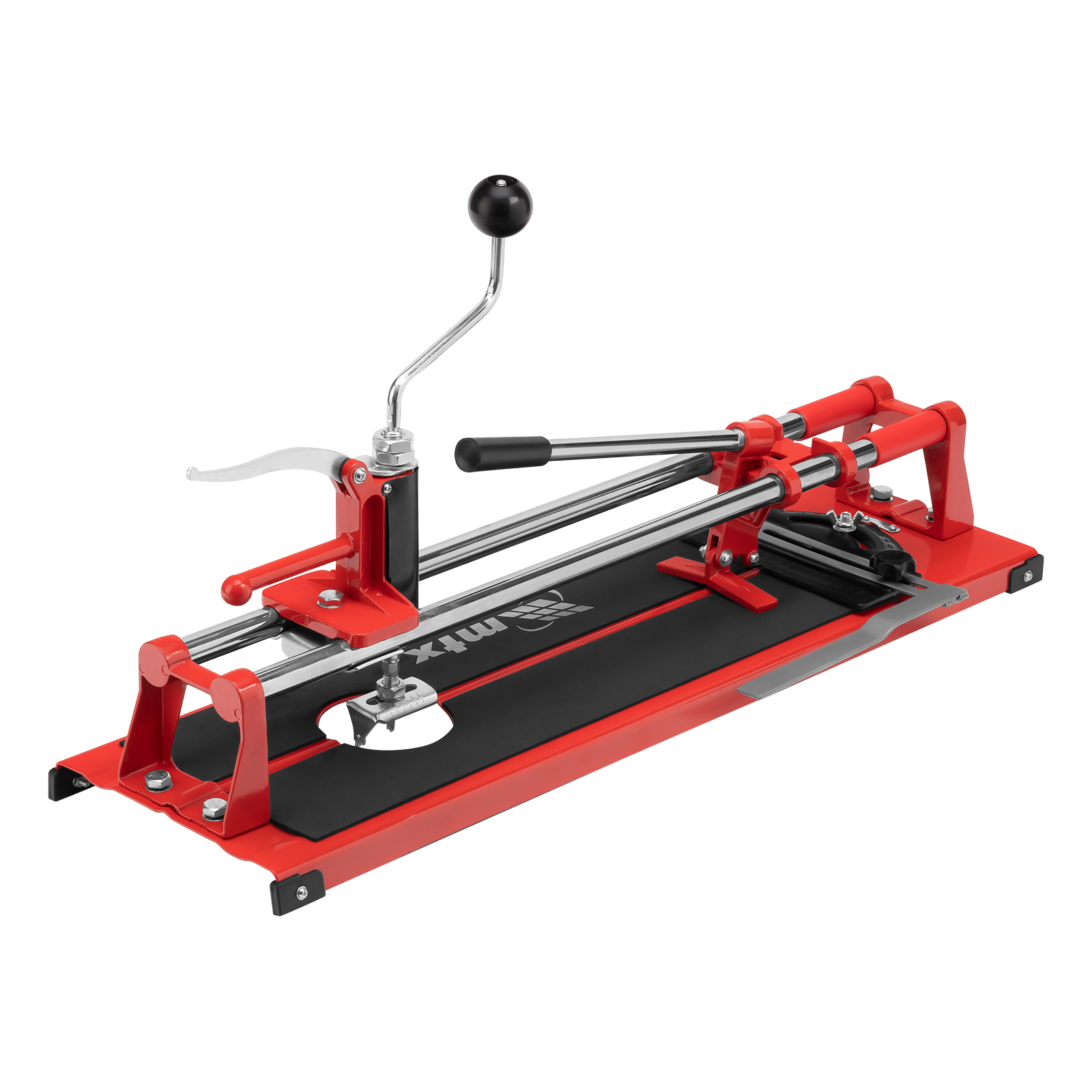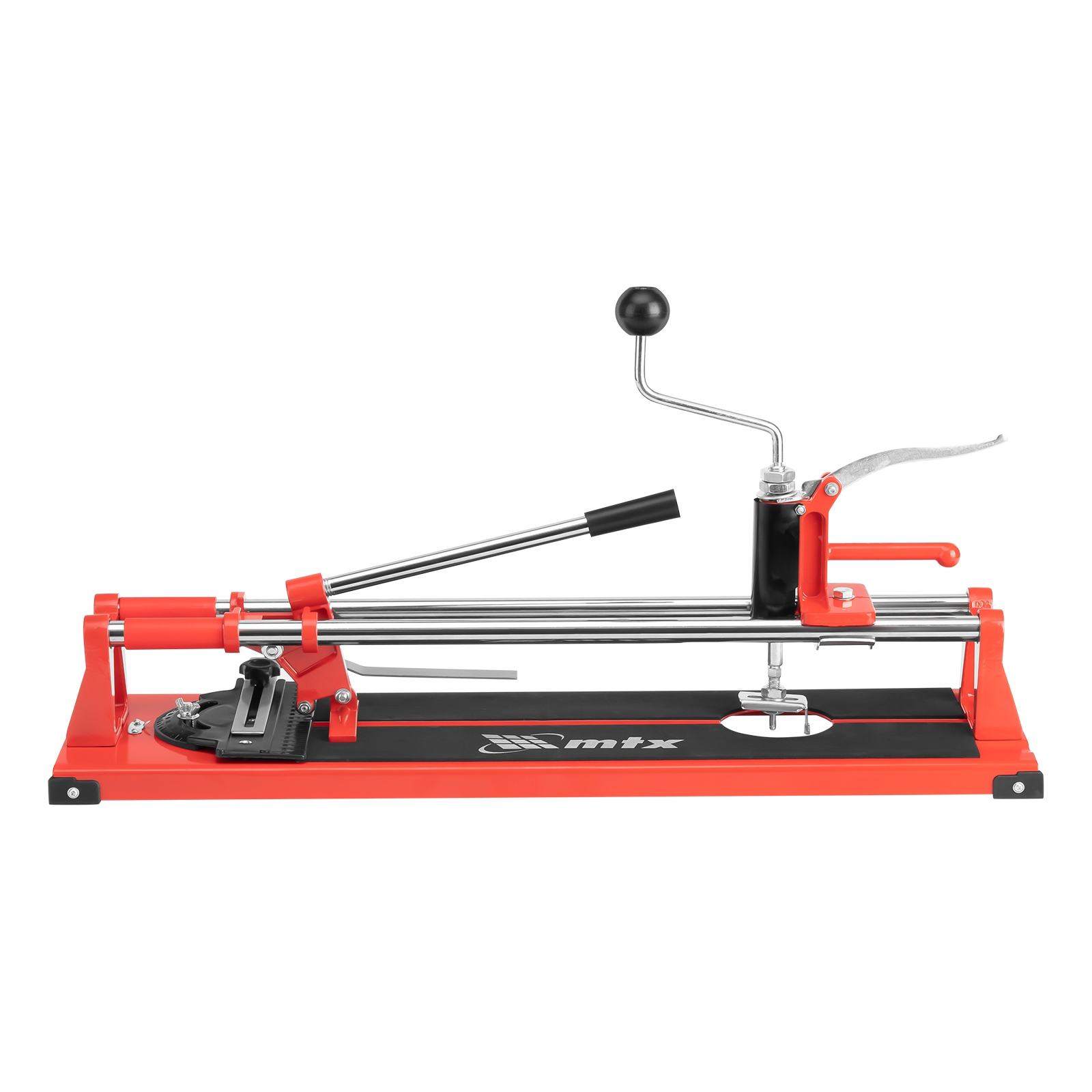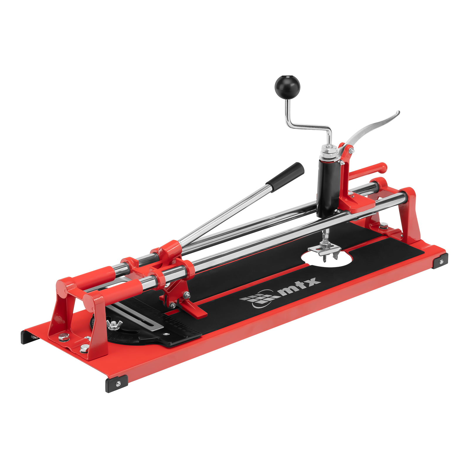 Плиткорез MTX «Балеринка» 87653 с поворотным металлическим угольником предназначен для резки кафельной плитки длиной до 400 мм и толщиной до 16 мм. С помощью встроенной «балеринки» можно вырезать отверстия диаметром 30-80 мм. Инструмент будет полезен во время бытовых облицовочных работ.