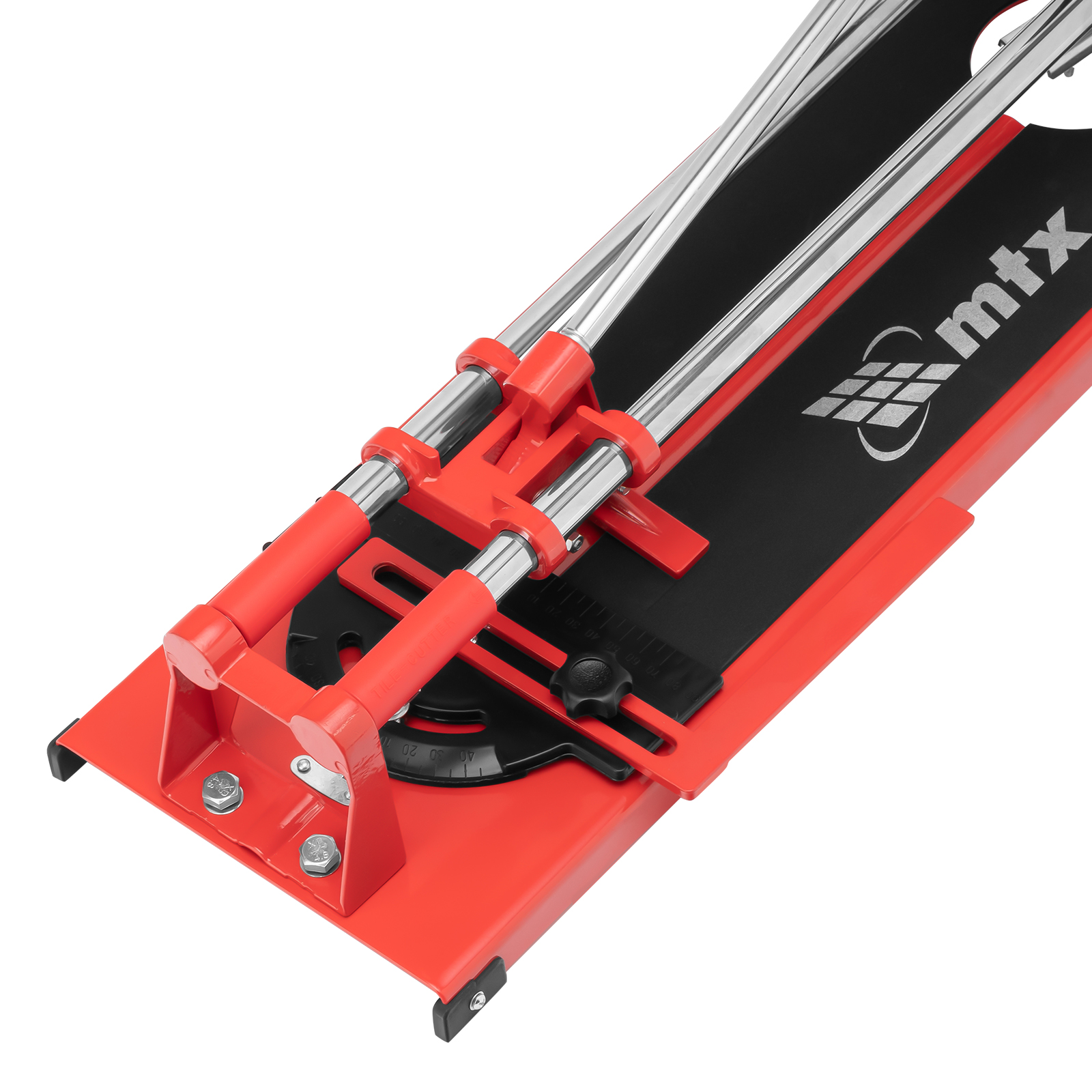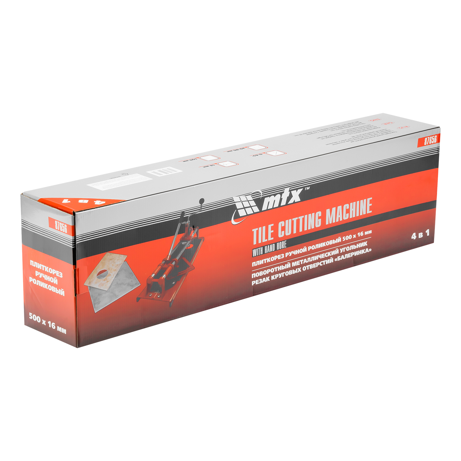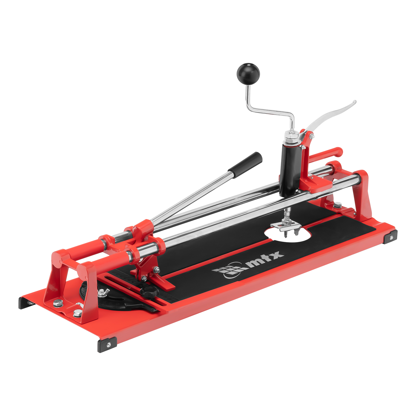 Плиткорез MTX «Балеринка» 87656 с поворотным металлическим угольником предназначен для резки кафельной плитки длиной до 500 мм и толщиной до 16 мм. С помощью встроенной «балеринки» можно вырезать отверстия диаметром 30-80 мм. Инструмент будет полезен во время бытовых облицовочных работ.