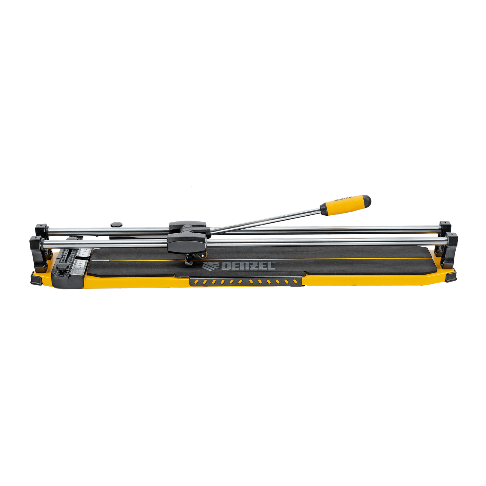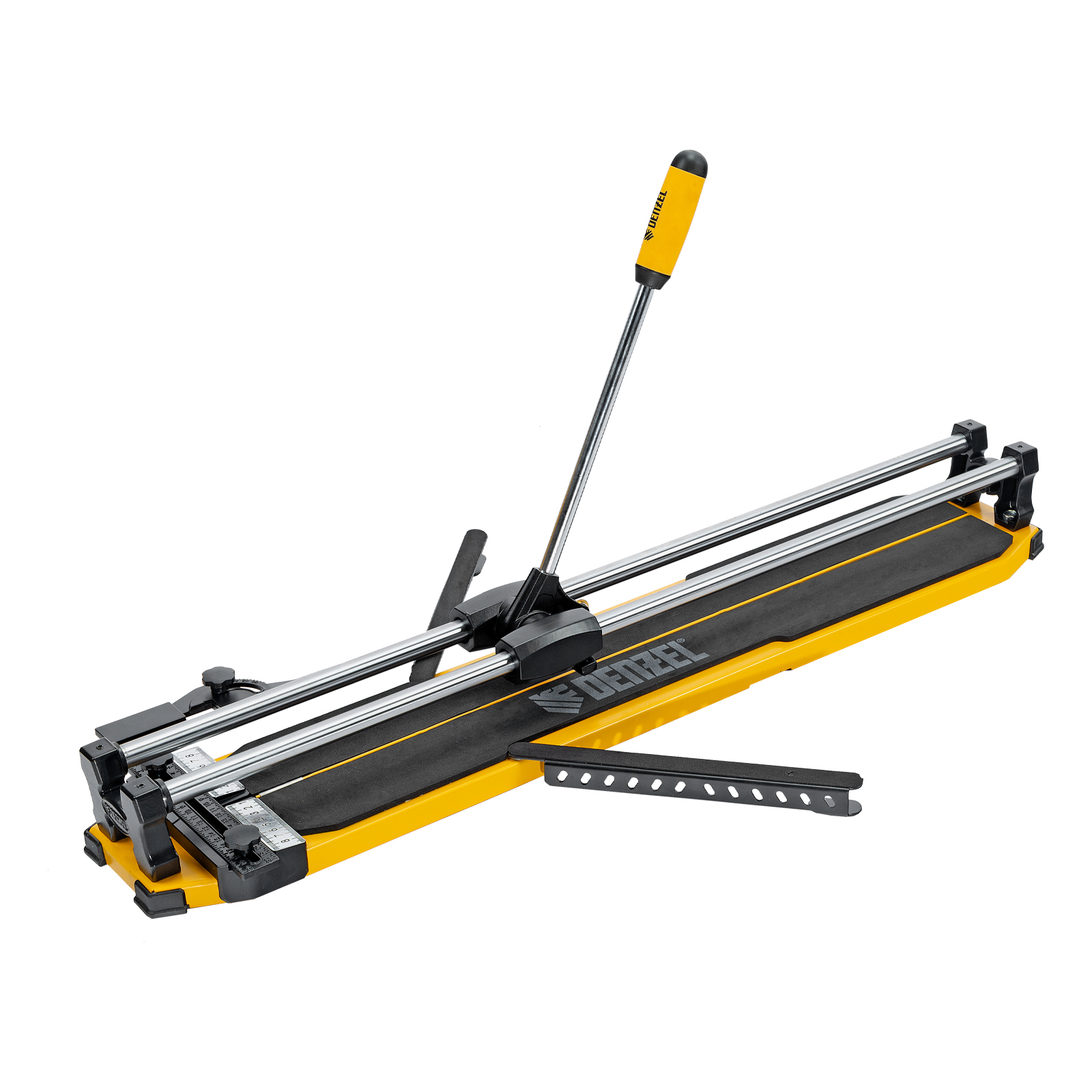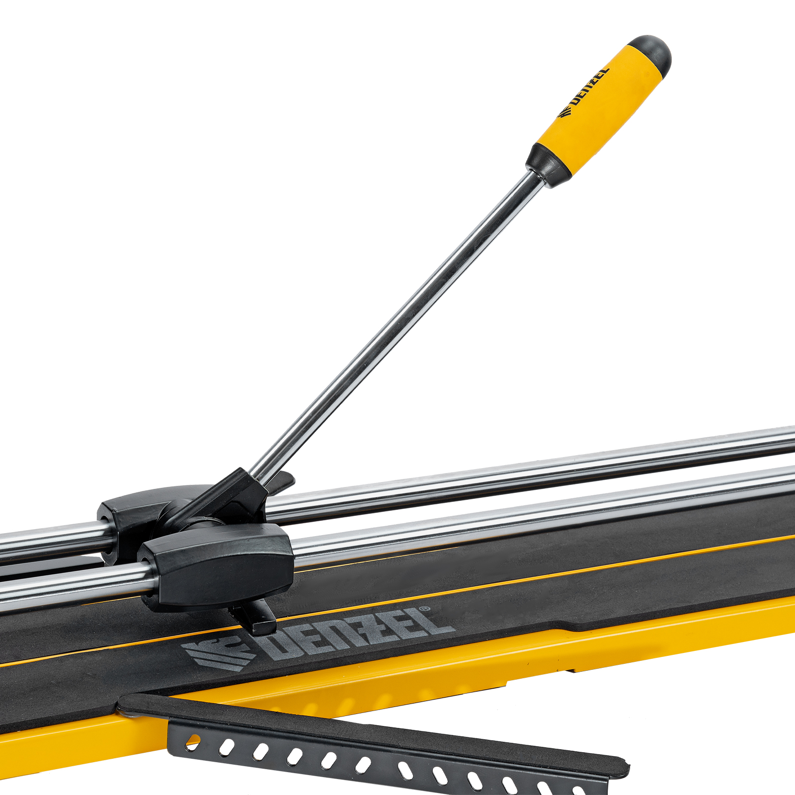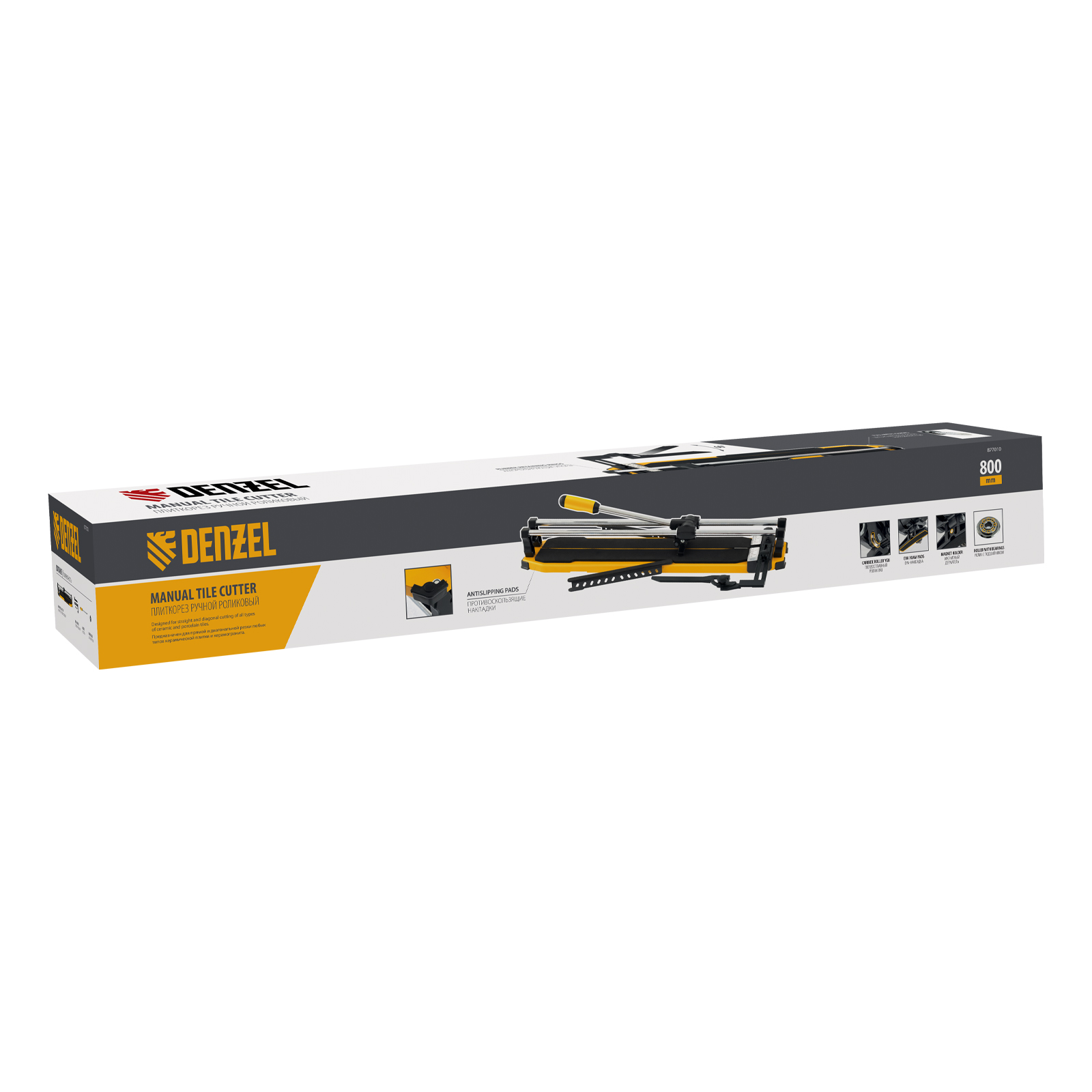 Ручной плиткорез Denzel 877010 с цельнометаллическими направляющими и стальной станиной, с кареткой на подшипниках и рукояткой-пеналом, предназначен для прямой и диагональной резки керамической плитки и керамогранита длиной до 800 мм и толщиной до 14 мм. Раздвижные упоры упрощают работу с плиткой большого размера. Инструмент используется для проведения отделочных работ.