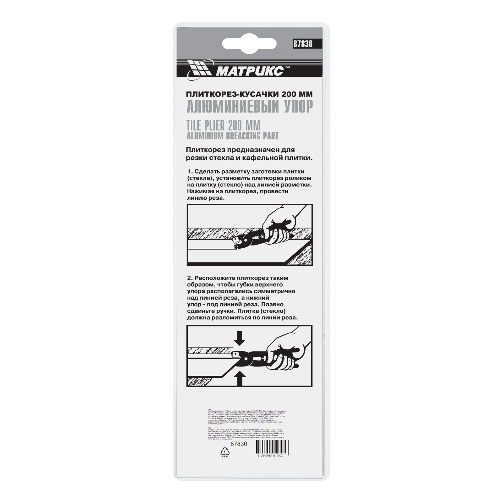 Плиткорез-кусачки МАТРИКС 87830 длиной 200 мм, с алюминиевым упором, поможет обрезать кромку плитки и придать ей нужную форму. Подходит для прямой и фигурной резки. Инструмент прост в использовании и не требует обслуживания. Пригодится во время проведения бытовых облицовочных работ.