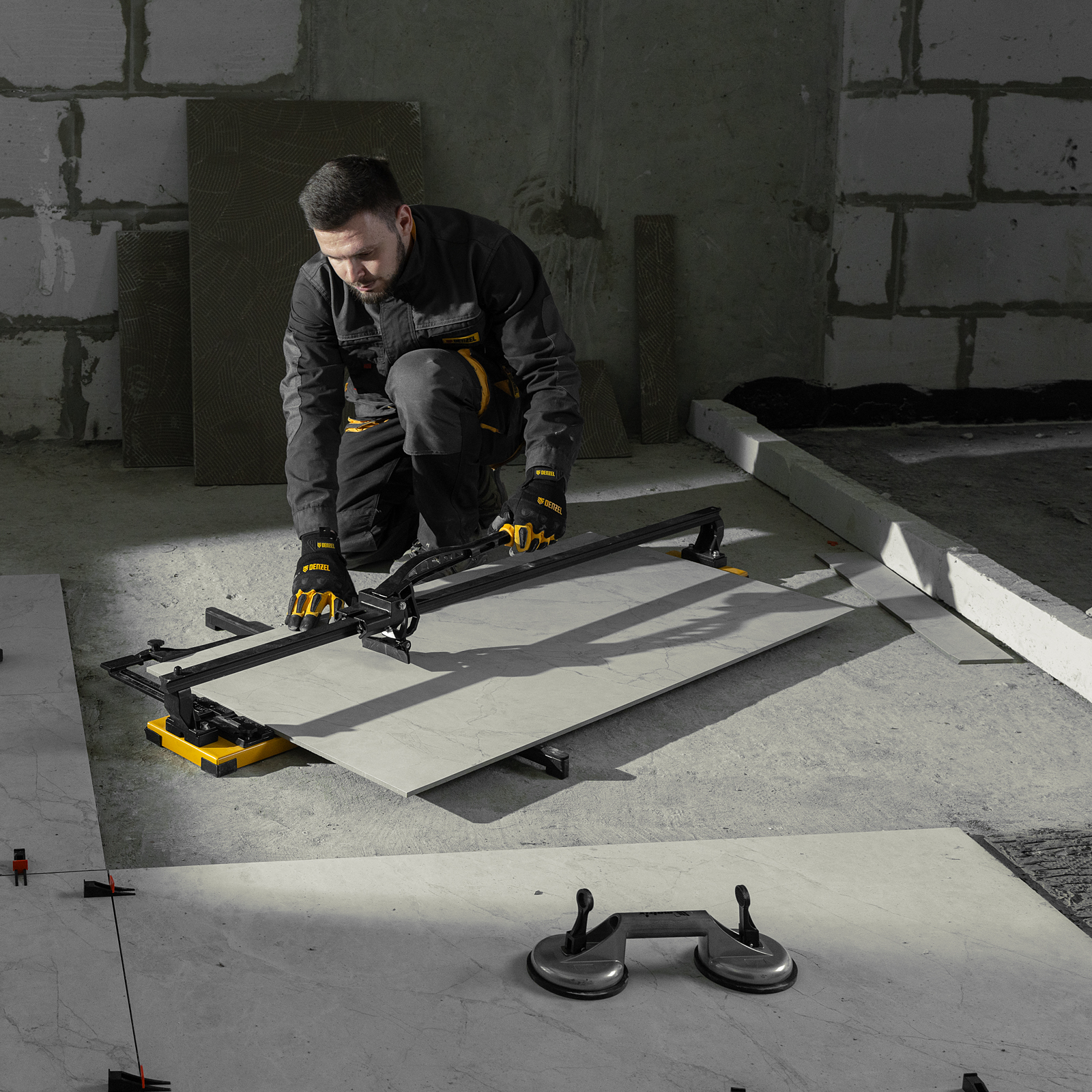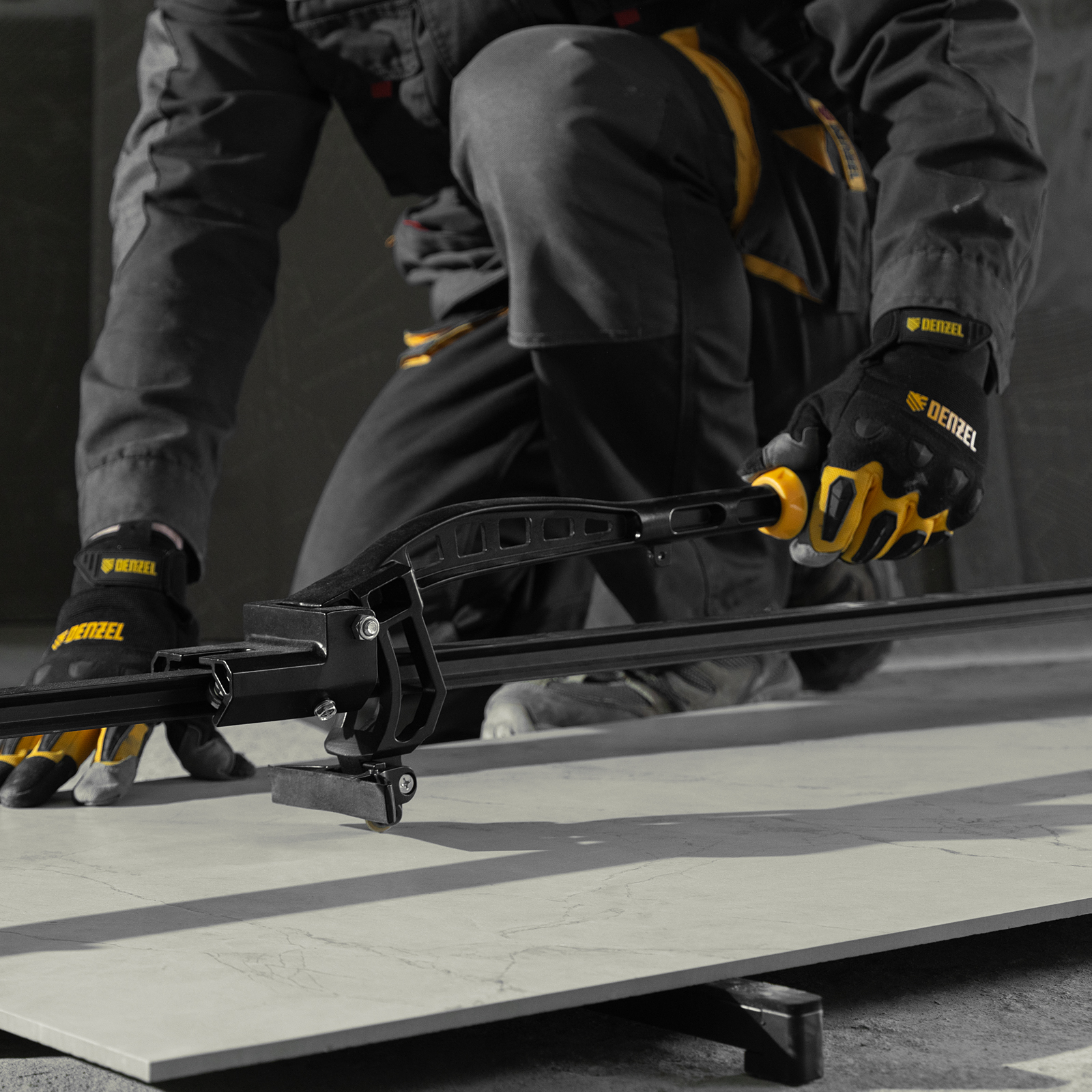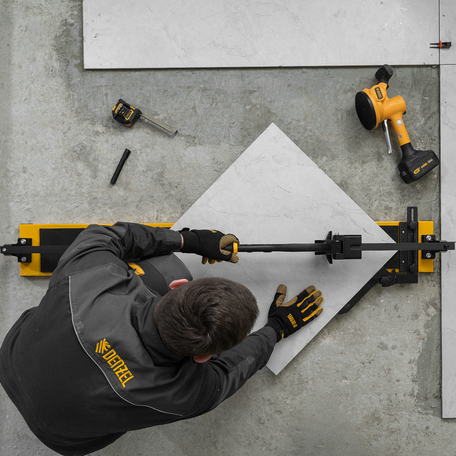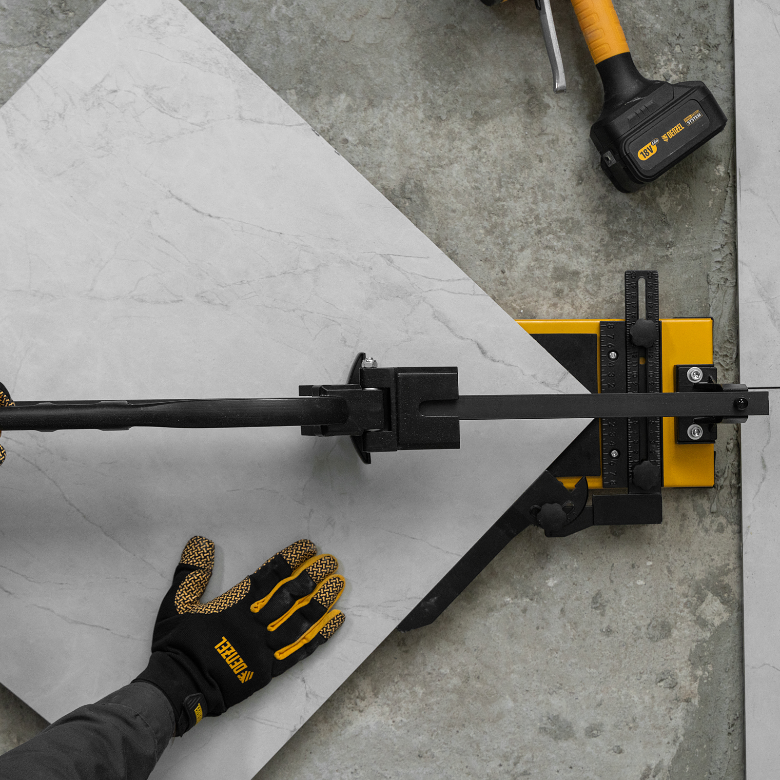 - Удобная работа — благодаря противоскользящим накладкам плиткорез не смещается даже на гладких поверхностях.