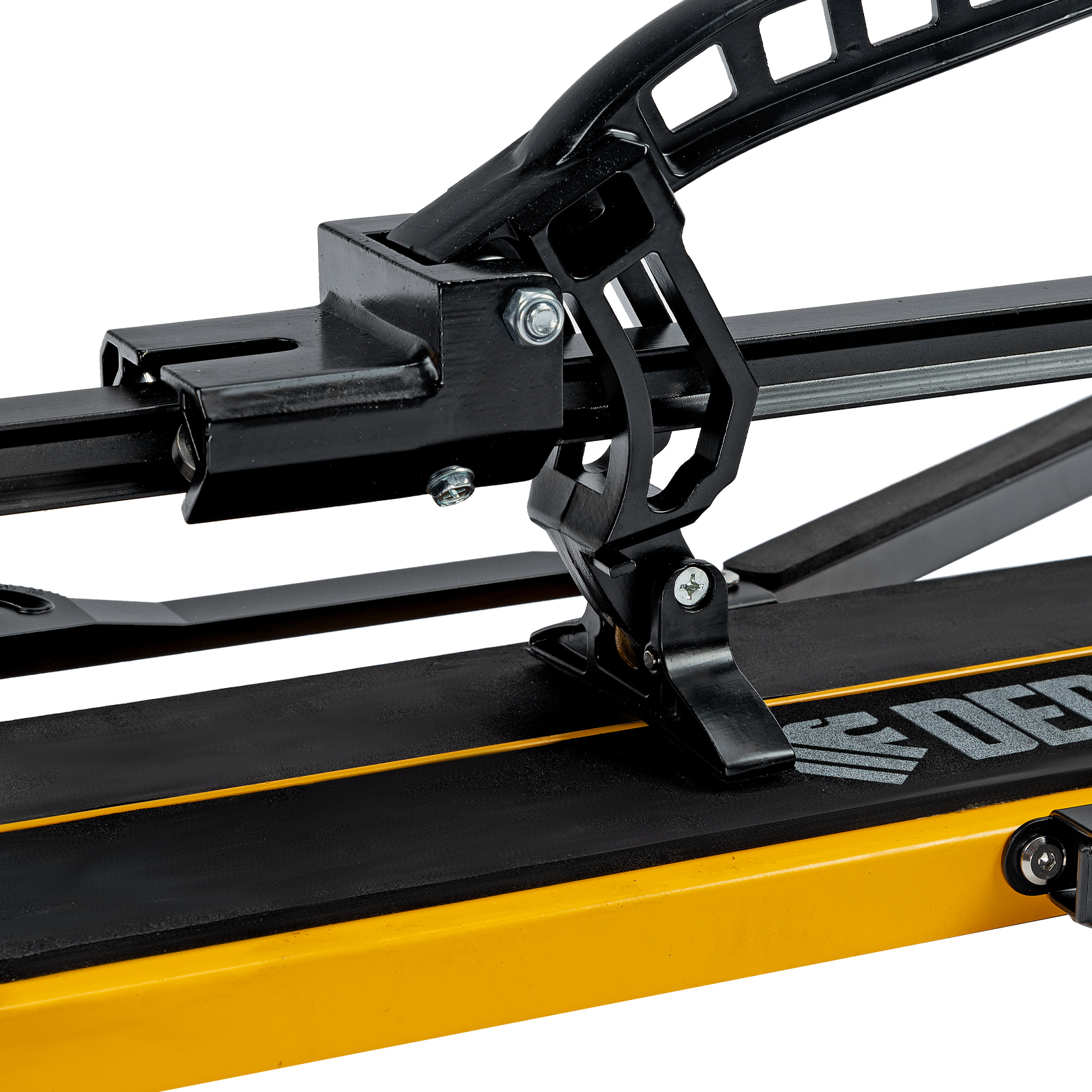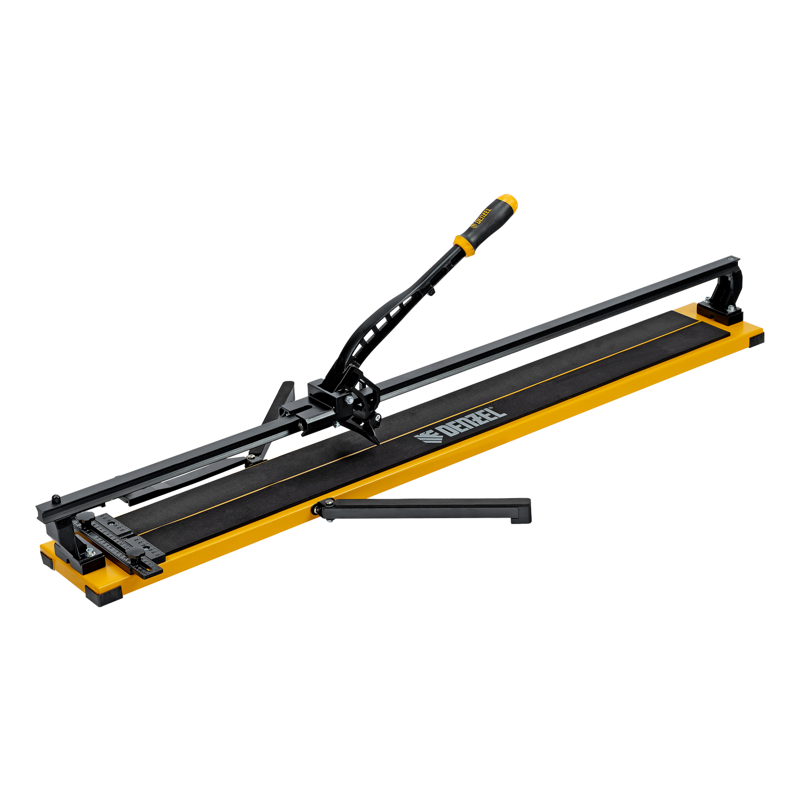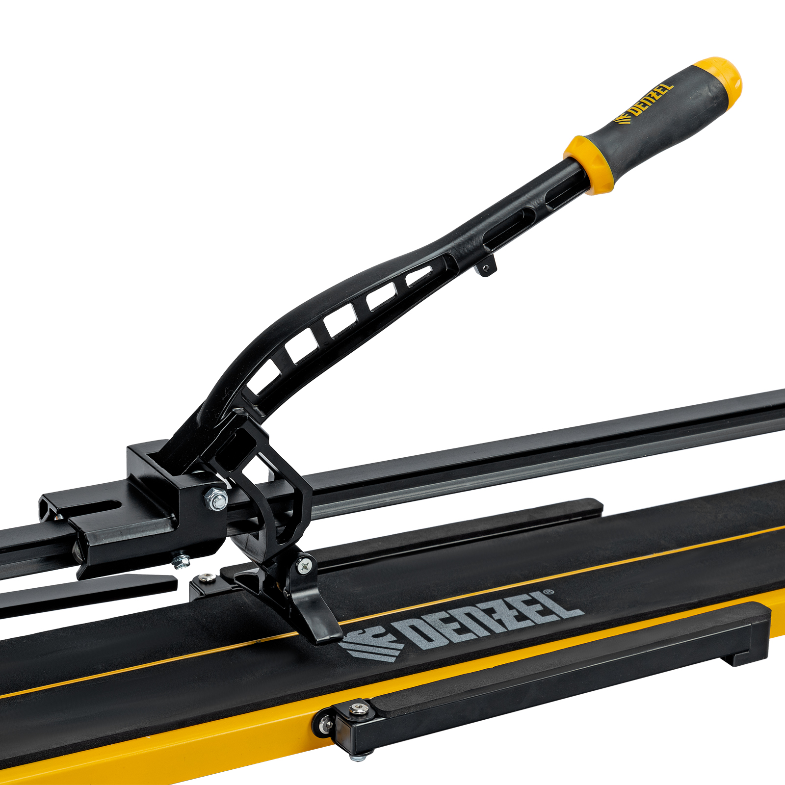 Ручной плиткорез Denzel 877020 с рельсовой направляющей и стальной станиной, с кареткой на подшипниках и усиленной рукояткой-пеналом, предназначен для прямой и диагональной резки керамической плитки и керамогранита длиной до 1200 мм и толщиной до 16 мм. Раздвижные упоры упрощают работу с плиткой большого размера. Инструмент используется для проведения отделочных работ.