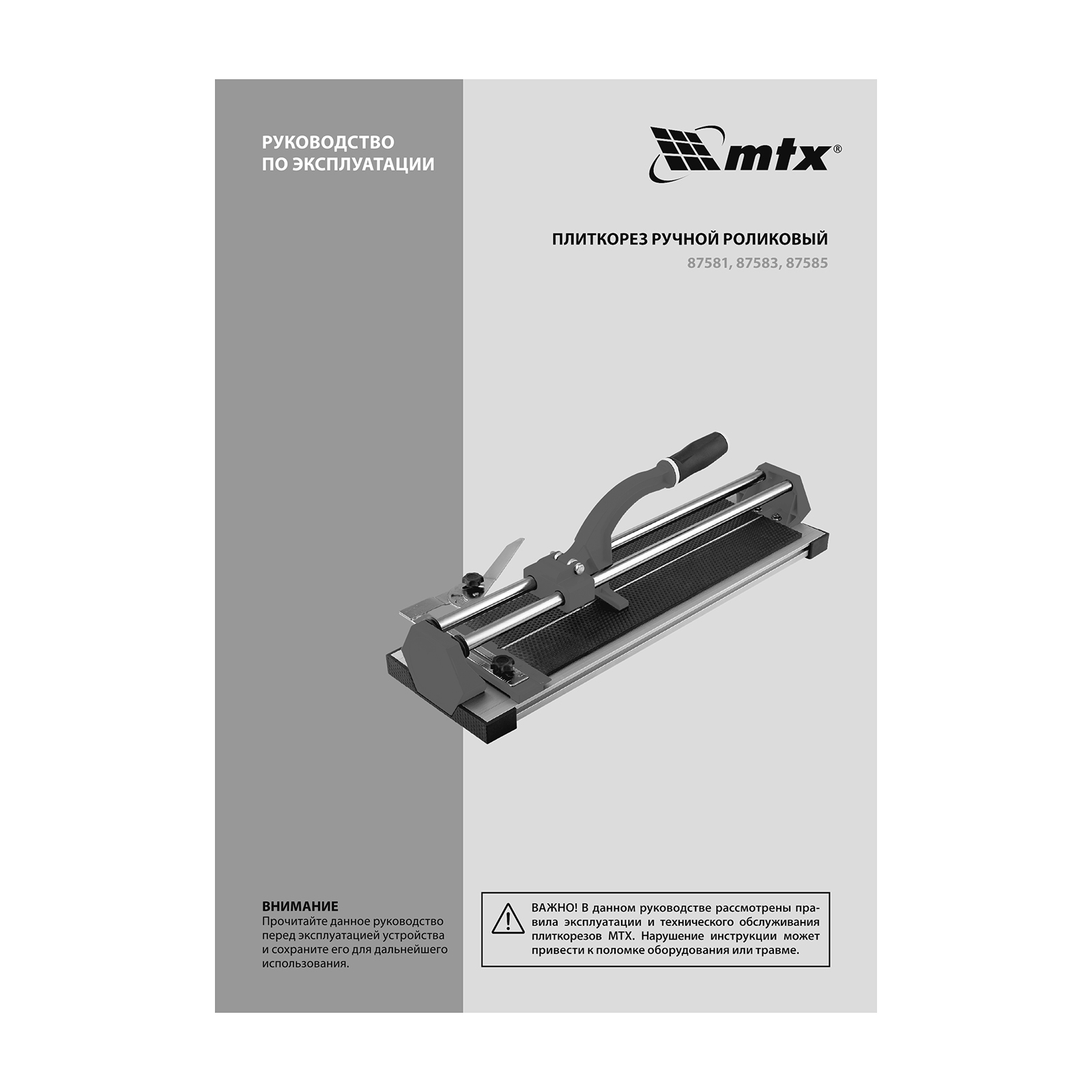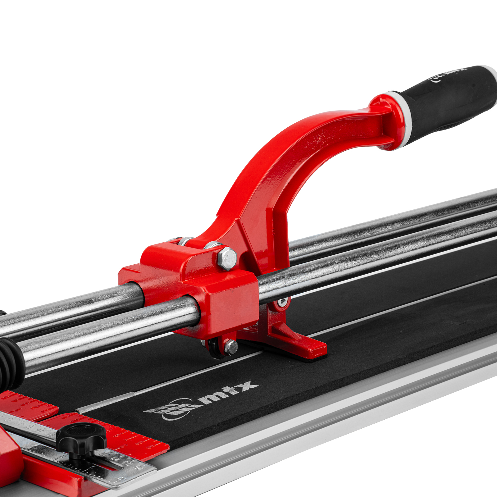 Ручной плиткорез MTX 87581 с кареткой на подшипниках, усиленной рукояткой и облегченной алюминиевой станиной, предназначен для резки кафельной и керамической плитки длиной до 600 мм и толщиной до 14 мм. Благодаря регулируемому боковому упору удобен для серийной резки. Ролик из твердого сплава ВК8 на подшипниках обеспечивает максимальное качество реза. Инструмент подходит для бытового и профессионального использования, оптимален для выполнения больших объемов облицовочных работ.