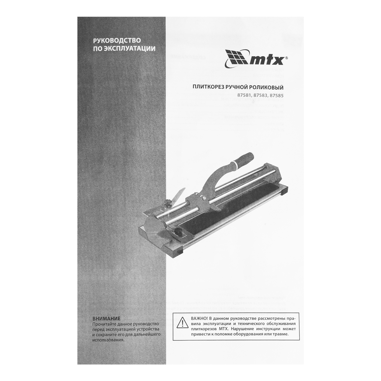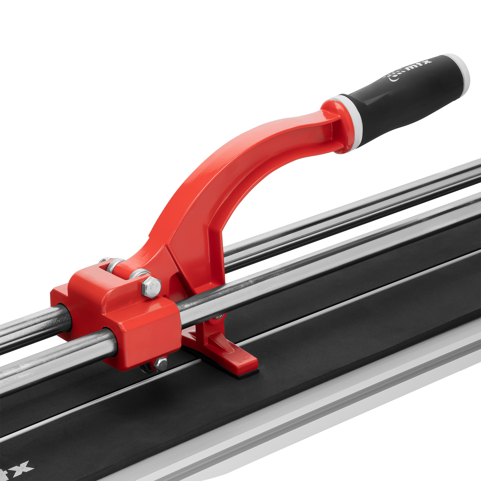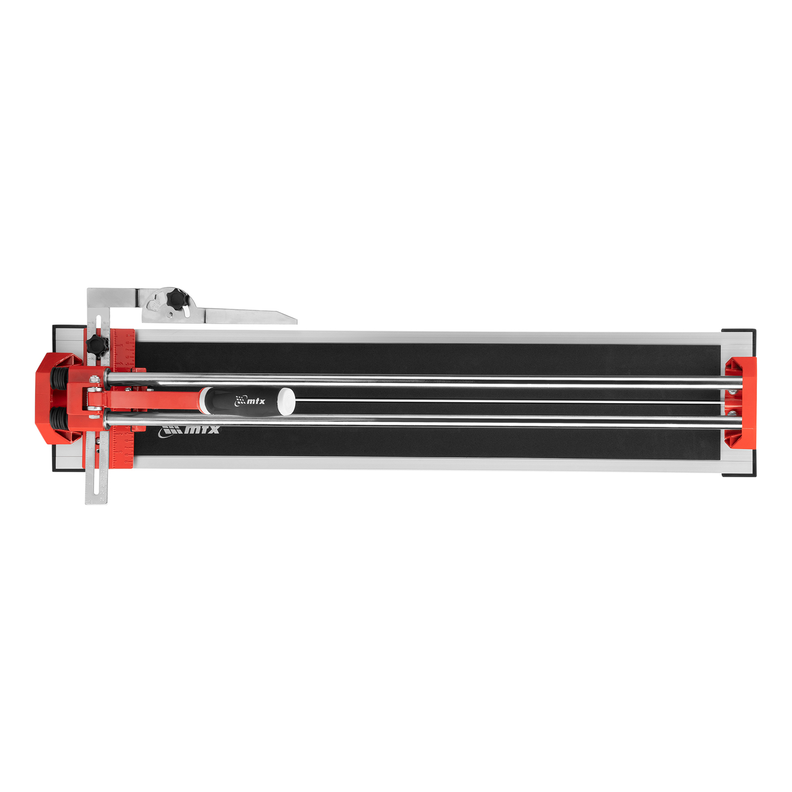 Ручной плиткорез MTX 87583 с кареткой на подшипниках, усиленной рукояткой и облегченной алюминиевой станиной, предназначен для резки плитки из кафеля и керамогранита длиной до 800 мм и толщиной до 14 мм. Благодаря регулируемому боковому упору удобен для серийной резки. Ролик из твердого сплава ВК8 на подшипниках обеспечивает максимальное качество реза. Инструмент подходит для бытового и профессионального использования, оптимален для выполнения больших объемов облицовочных работ.