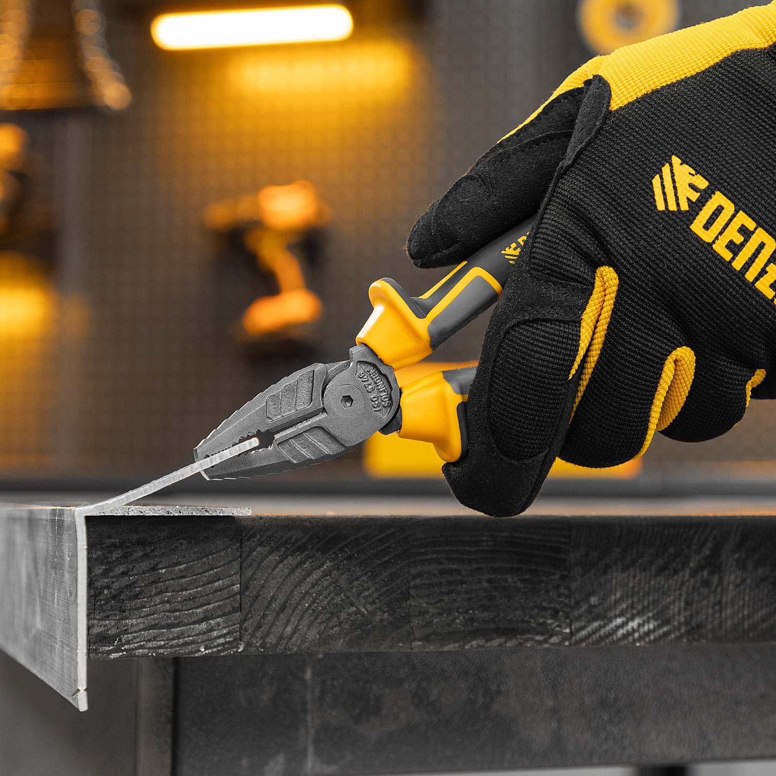 Комбинированные плоскогубцы Denzel 17080 длиной 165 мм, с трехкомпонентными рукоятками, используются для зажима и удержания деталей, сгибания металлических листов. Позволяют также перекусывать мягкую проволоку (алюминиевую, медную, с пределом прочности 220 Н/мм2) диаметром до 4 мм, проволоку средней жесткости и гвозди (750 Н/мм2) диаметром до 3,1 мм, а также жесткую (1800 Н/мм2) толщиной до 2 мм. Имеют внутренние грани специальной формы, предназначенные для использования инструмента в качестве гаечного ключа. Губки с насечками надежно удерживают заготовки. Плоскогубцы пригодятся профессионалу и частному мастеру при проведении слесарных, ремонтных и сборочных работ.
