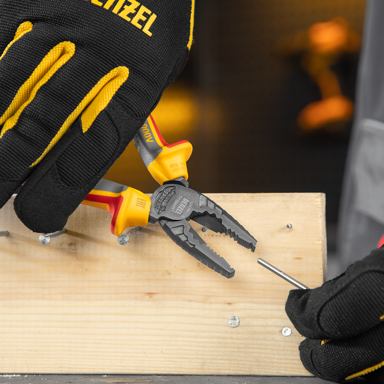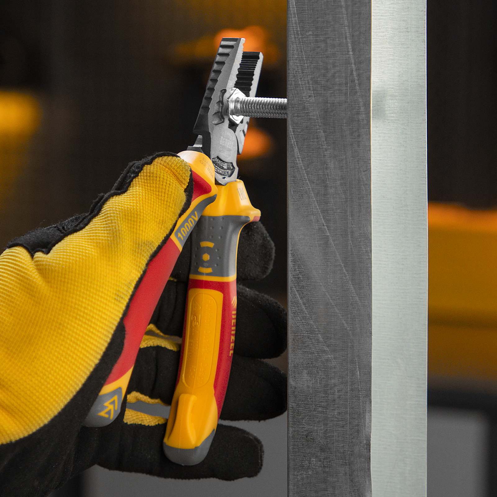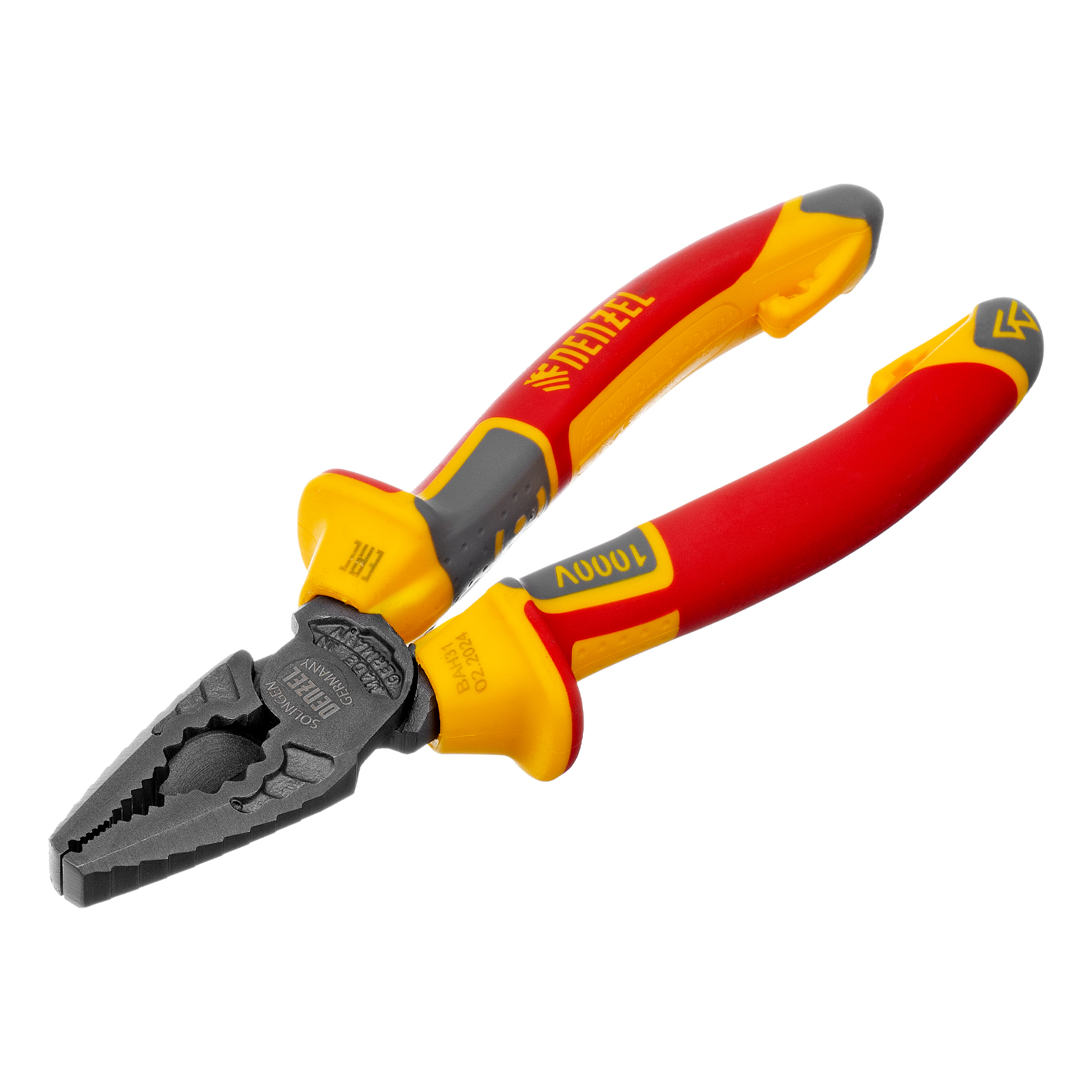 Комбинированные плоскогубцы Denzel 17085 длиной 165 мм, с диэлектрическими трехкомпонентными рукоятками, выдерживающими до 1000 В, предназначены для выполнения работ с токопроводящими элементами. С их помощью можно захватить или согнуть мелкие и крупные детали, перекусить проволоку или перерезать провод. Инструмент подходит для работы с мягкой проволокой (алюминиевой, медной, с пределом прочности 220 Н/мм2) диаметром до 4 мм, проволокой средней жесткости и гвоздями (750 Н/мм2) диаметром до 3,1 мм, и жесткой (предел прочности 1800 Н/мм2) толщиной до 2 мм. Также плоскогубцы можно использовать в качестве гаечного ключа. Инструмент незаменим для проведения слесарных и монтажных работ с различными компонентами и материалами. Внимание: перед началом работ следует отключить напряжение!