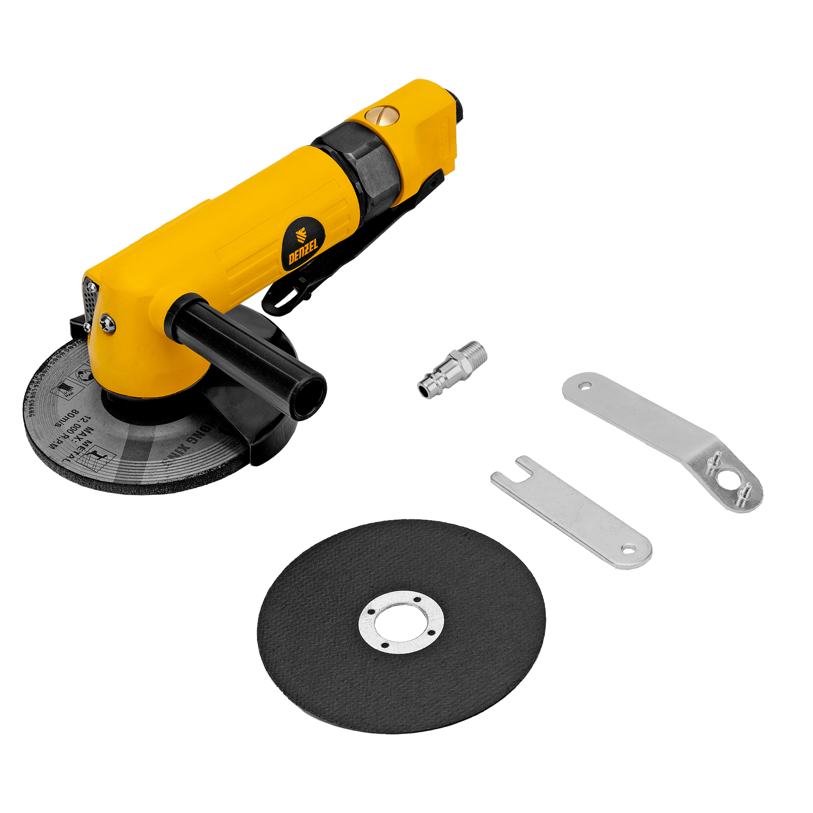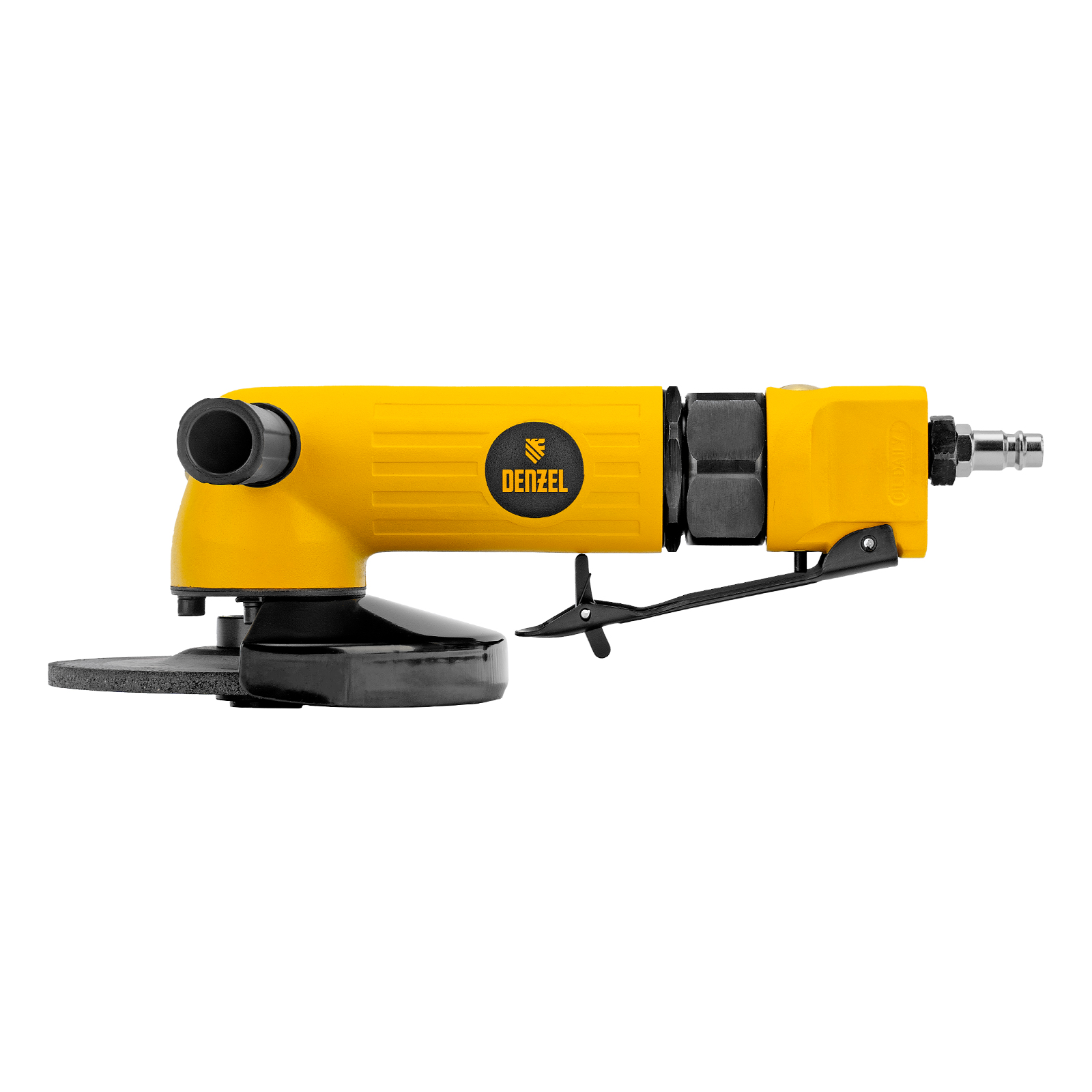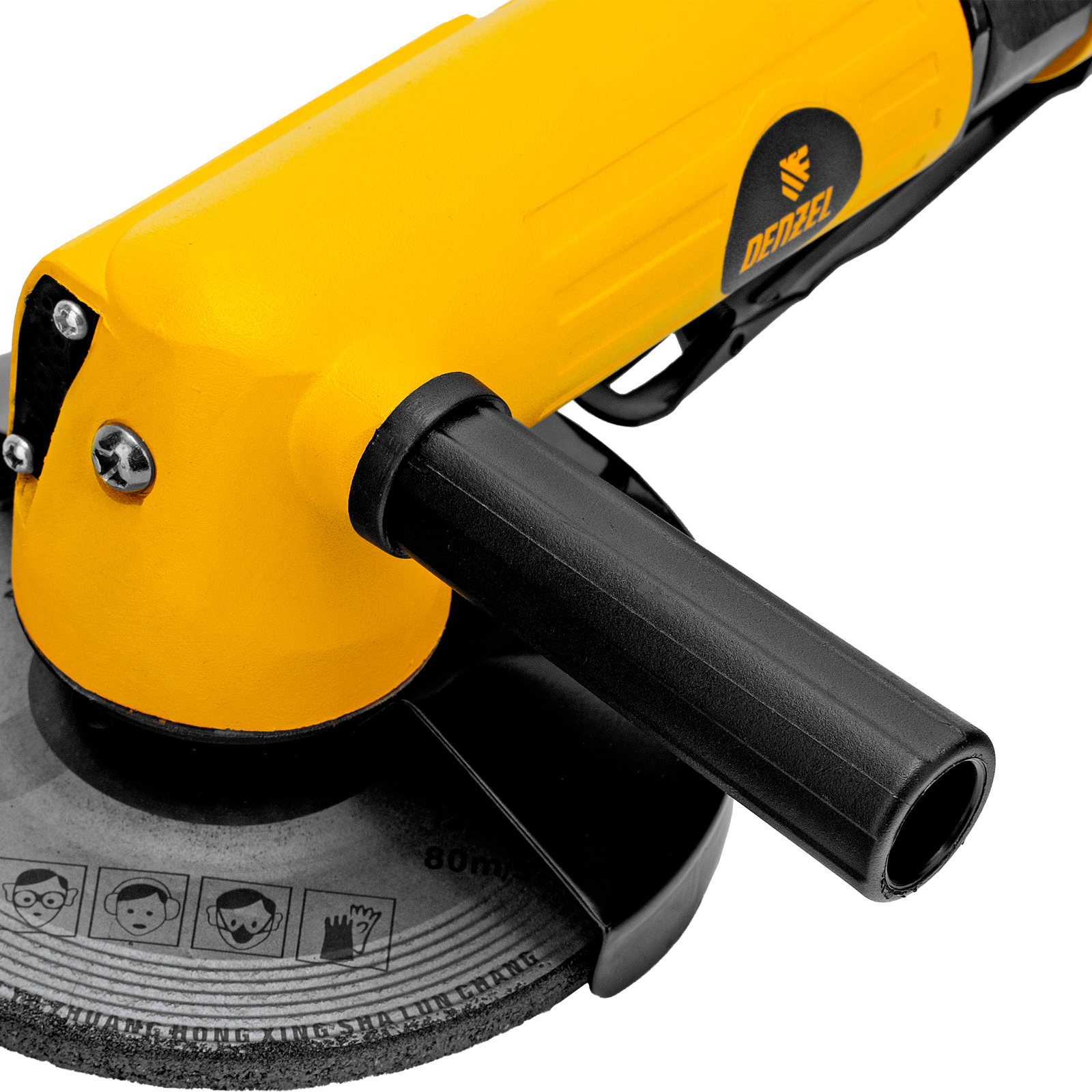 Пневматическая углошлифовальная машина Denzel AG125 57477 используется с дисками до 125 мм для шлифования, зачистки, резки деревянных, металлических, пластмассовых и других материалов. Это универсальный инструмент, востребованный в строительстве, ремонте, незаменимый для домашних мастерских и решения бытовых задач. Частота вращения диска 11000 об/мин при среднем расходе воздуха 186 л/мин обеспечивает высокую производительность и скорость работы. Оптимальная скорость редуктора позволяет быстро и качественно обрабатывать поверхности.,УШМ предназначена для работы при давлении 6,3 бар, расход воздуха в среднем не превышает 200 л/мин. Во время работы не забывайте использовать специальное масло ISO 46, которое можно добавлять как напрямую в инструмент, так и с помощью блока подготовки воздуха Denzel 57469, включающего в себя лубрикатор для автоматической подачи масла.