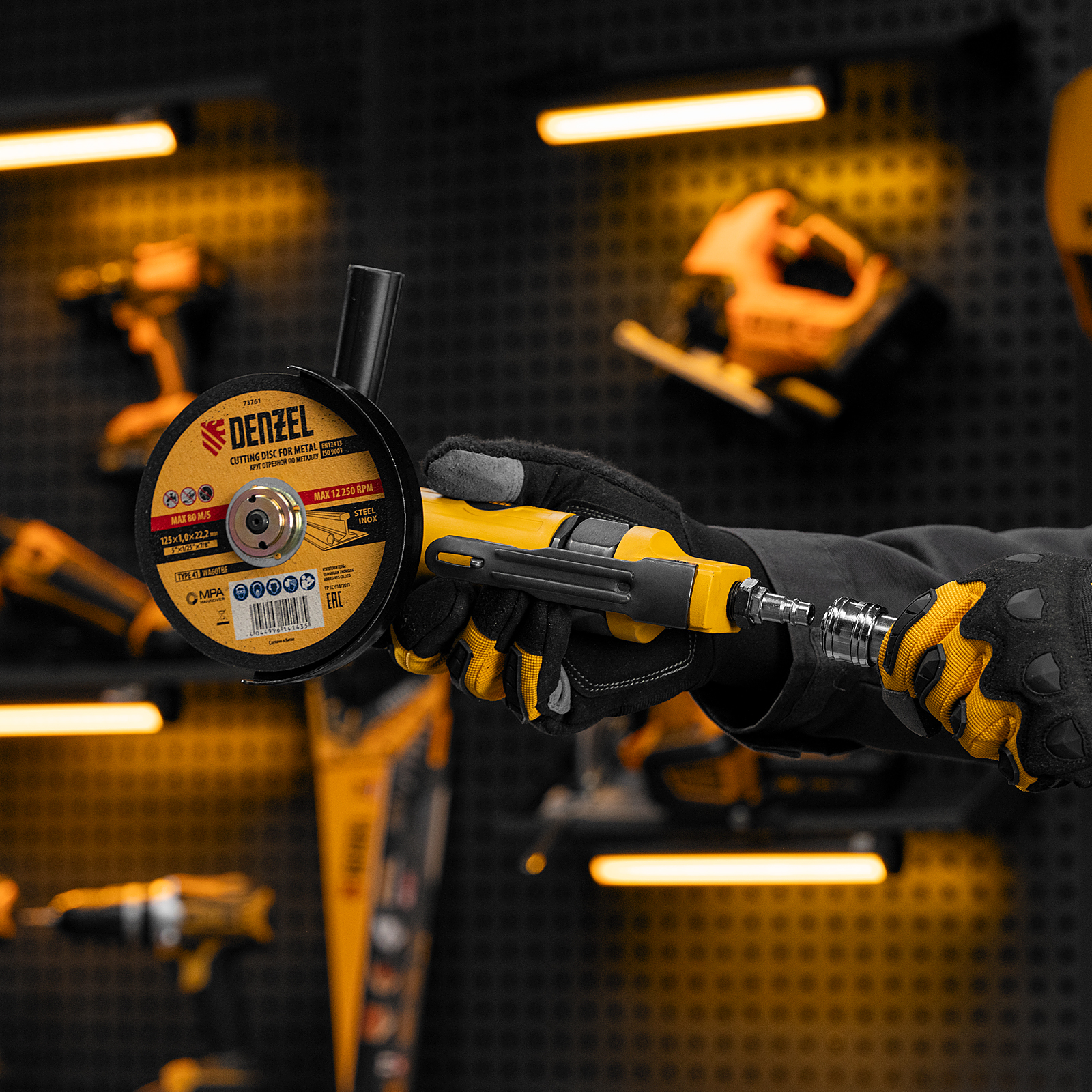 - Высокая эффективность — инструмент справляется с разрезанием материалов толщиной до 35 мм, оптимально подходит для профессионального применения на строительных площадках, в сварочных и арматурных цехах, автосервисах.