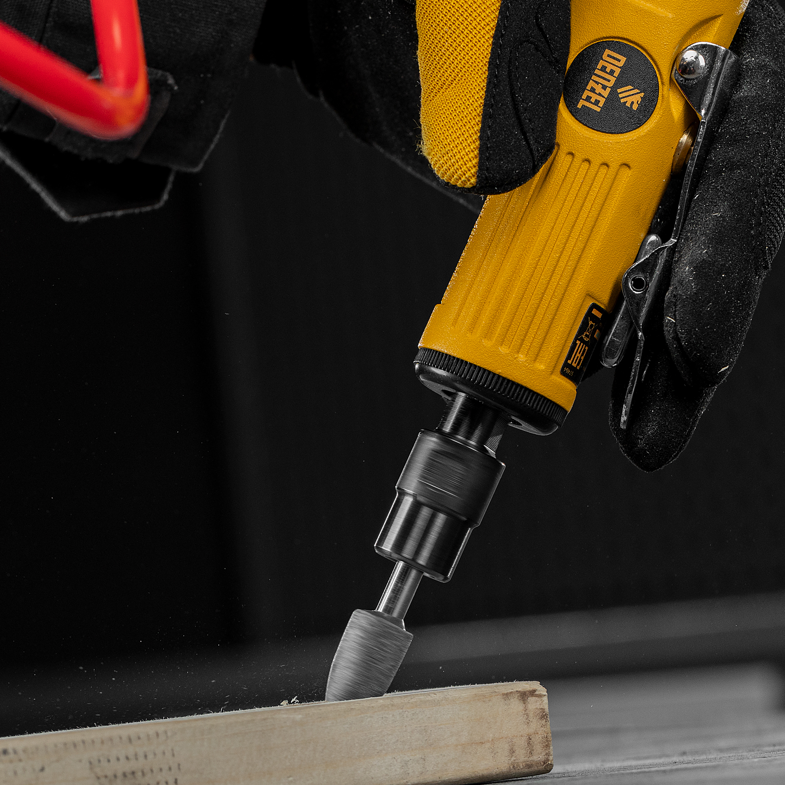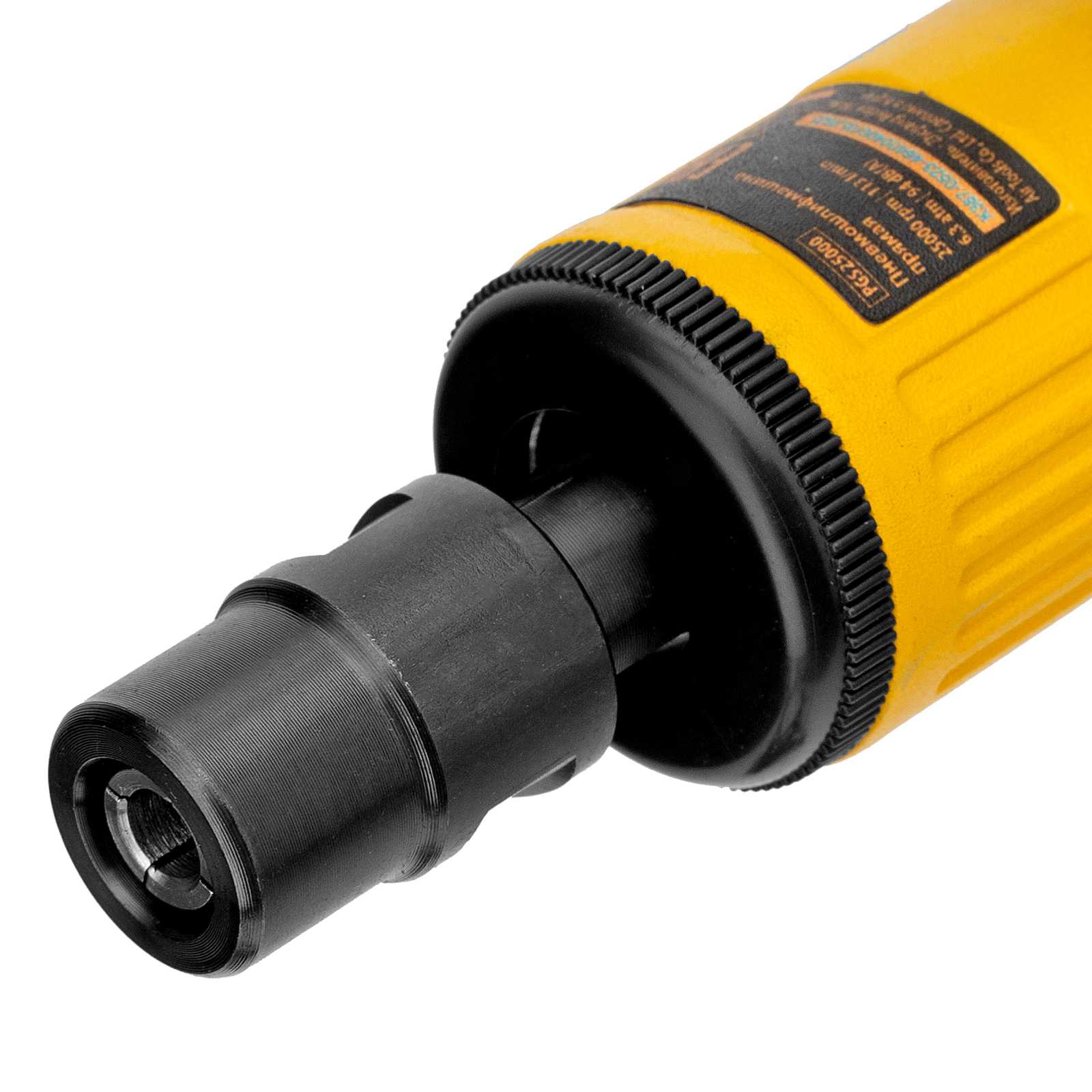 Прямая пневмошлифмашина Denzel PGS25000 57464 поставляется с 10 шлифовальными камнями и цангами 3 и 6 мм, потребляет 113 л сжатого воздуха в минуту и обеспечивает скорость вращения оснастки 25000 об/мин. Используется для обработки изделий из пластика, древесины и металла. Позволяет удалять заусенцы, зачищать сварные швы, снимать тонкий слой ржавчины или лакокрасочного покрытия на небольших участках, выполнять шлифовальные работы. Инструмент оптимален для работы в условиях ограниченного пространства, подходит для профессионального и бытового использования.