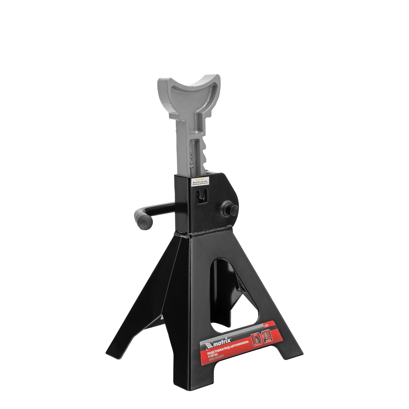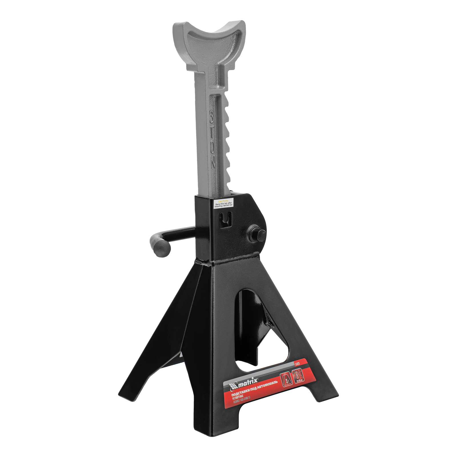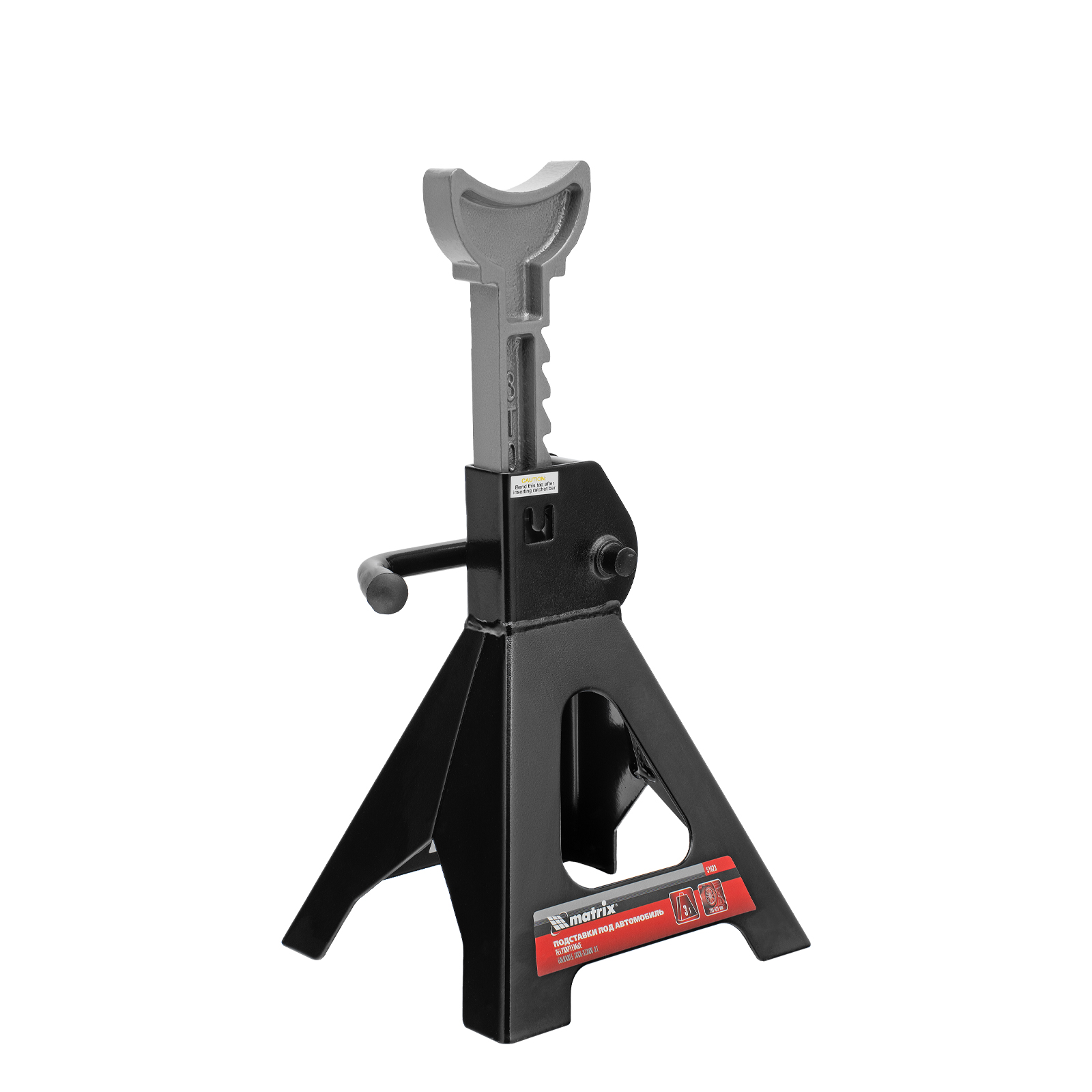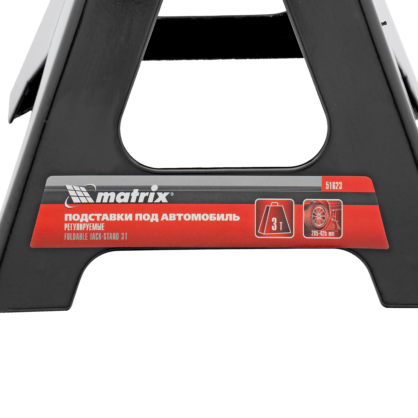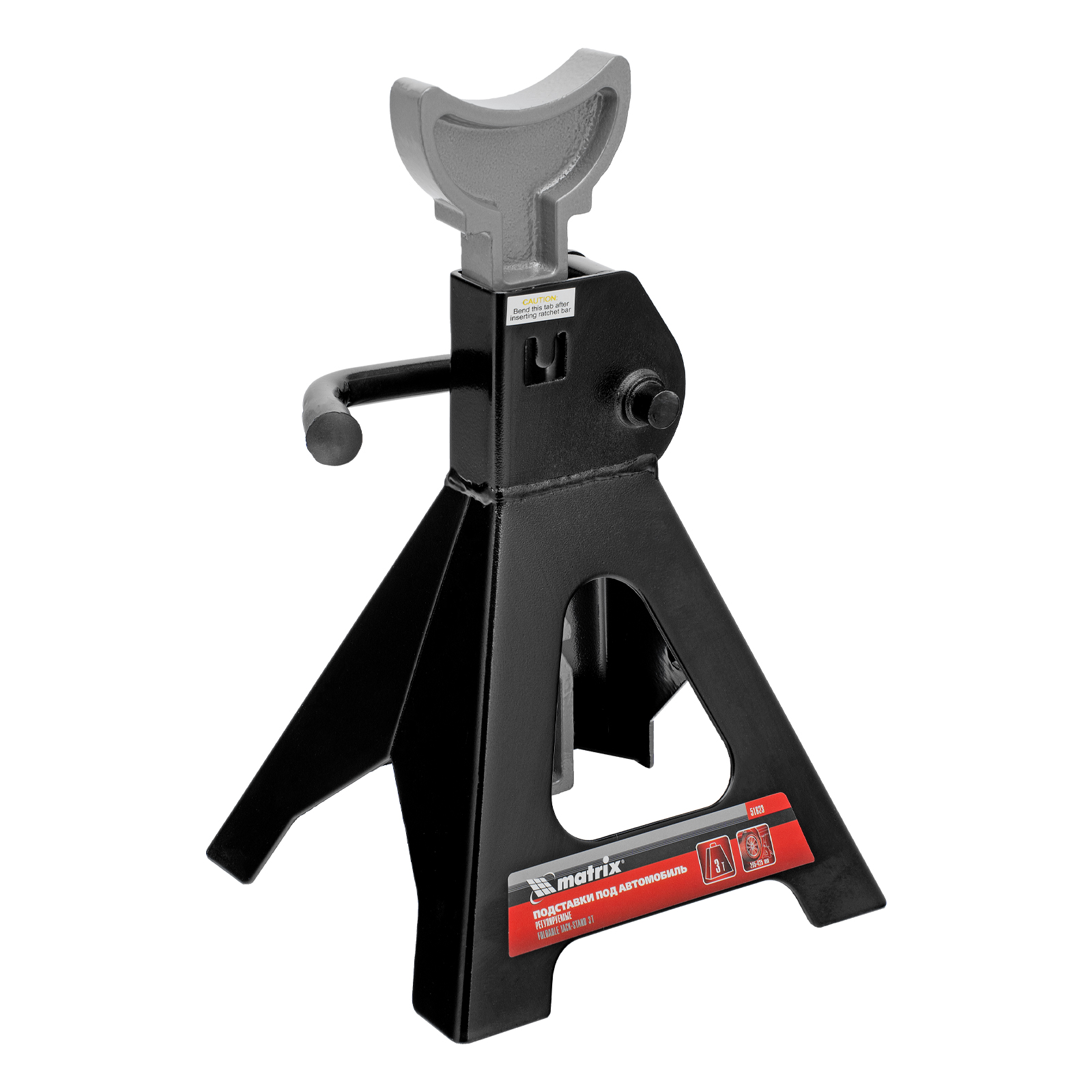 Регулируемые подставки под автомобиль Matrix 51623 с несущей способностью 3 т, 2 шт. в комплекте, удерживают груз на высоте 295-425 мм. Их используют в качестве средства дополнительной фиксации и страховки легкового автомобиля, поднятого на подъемнике или домкрате. Конструкцией предусмотрен зубчатый механизм, надежно удерживающий шток в выдвинутом положении. Подставки пригодятся в гараже или автосервисе во время проведения ремонтных работ.