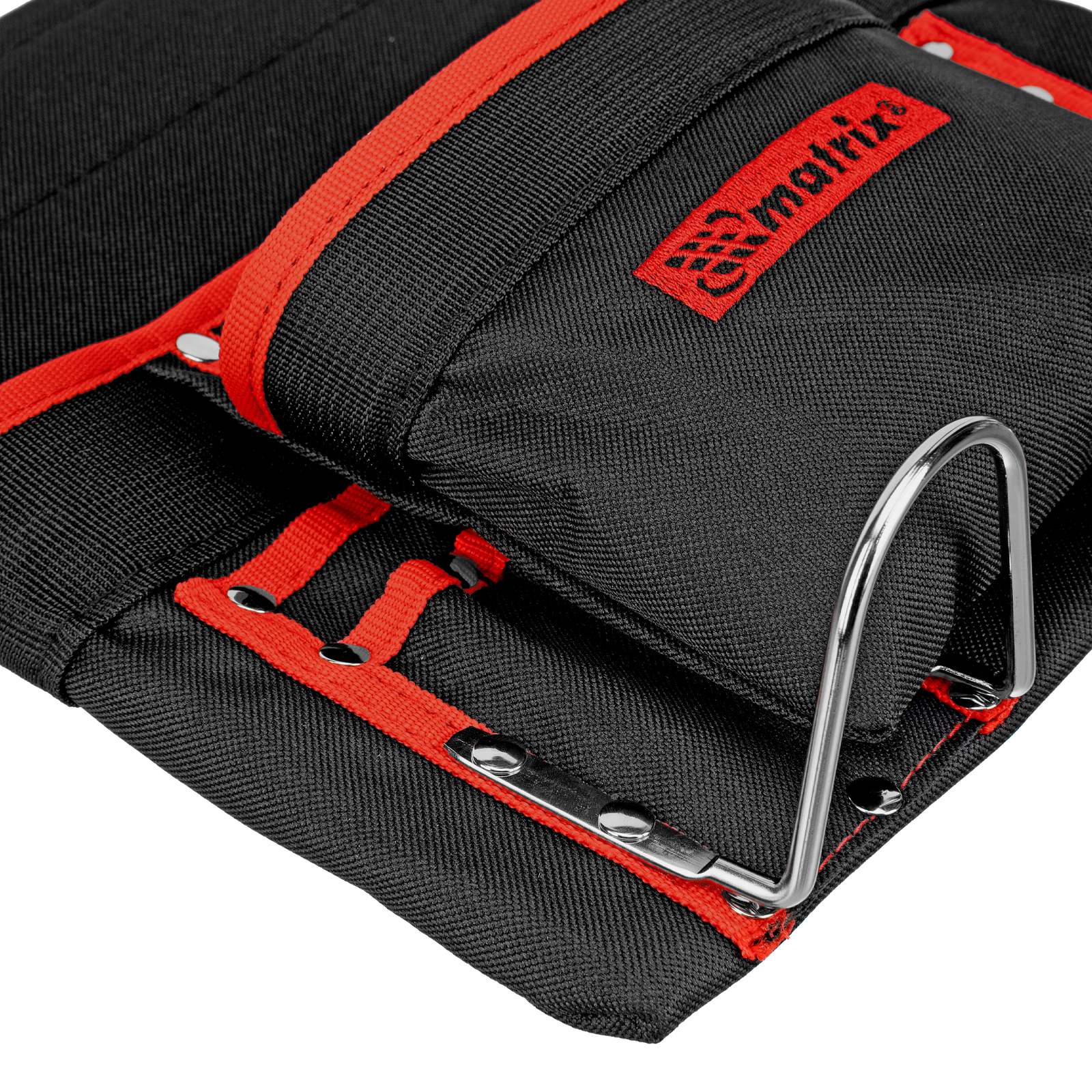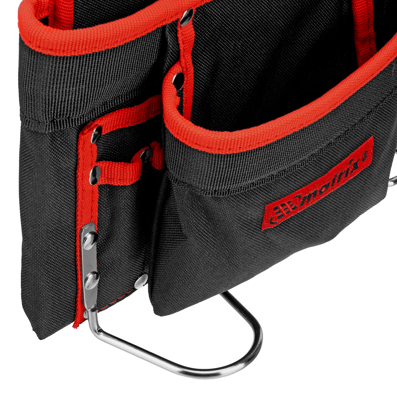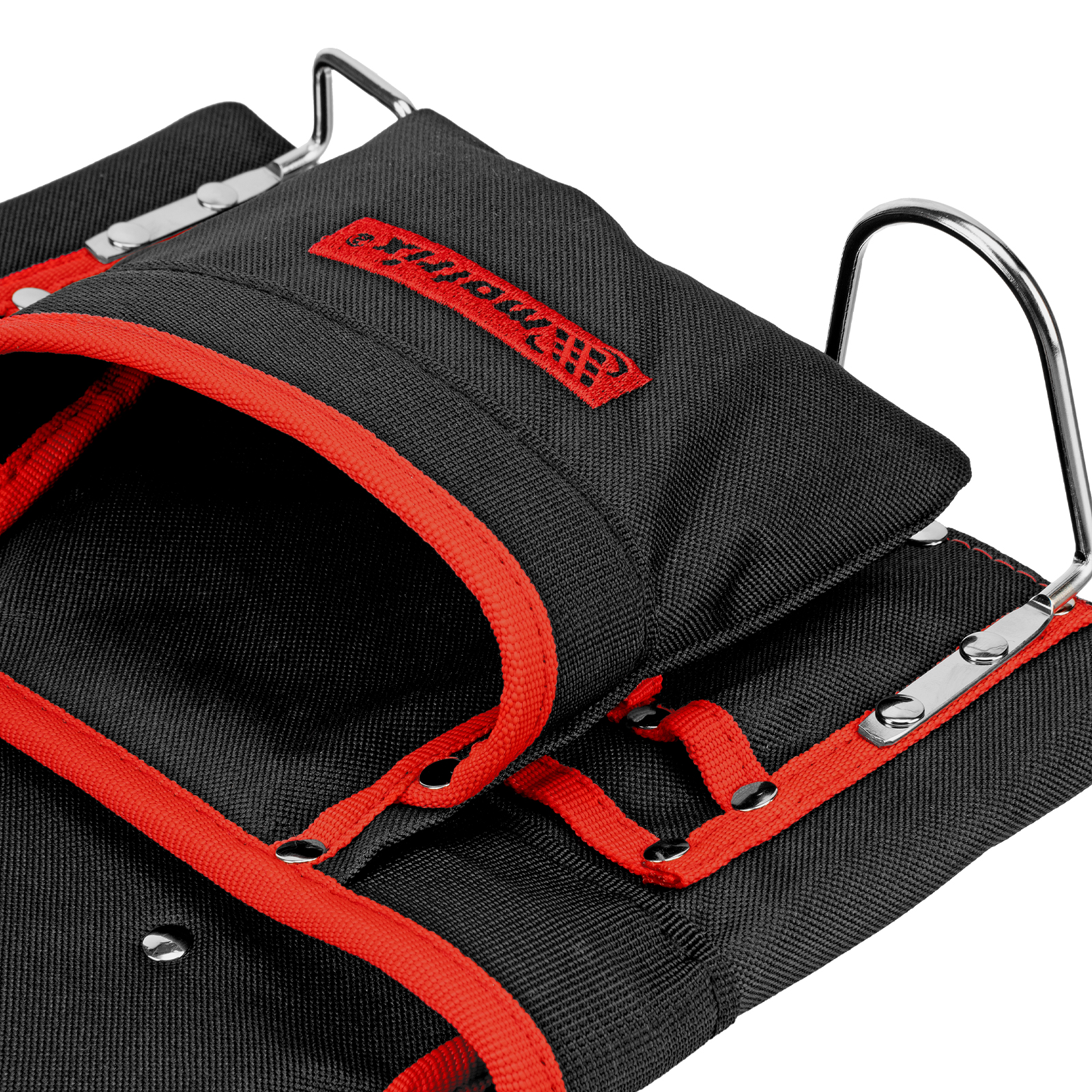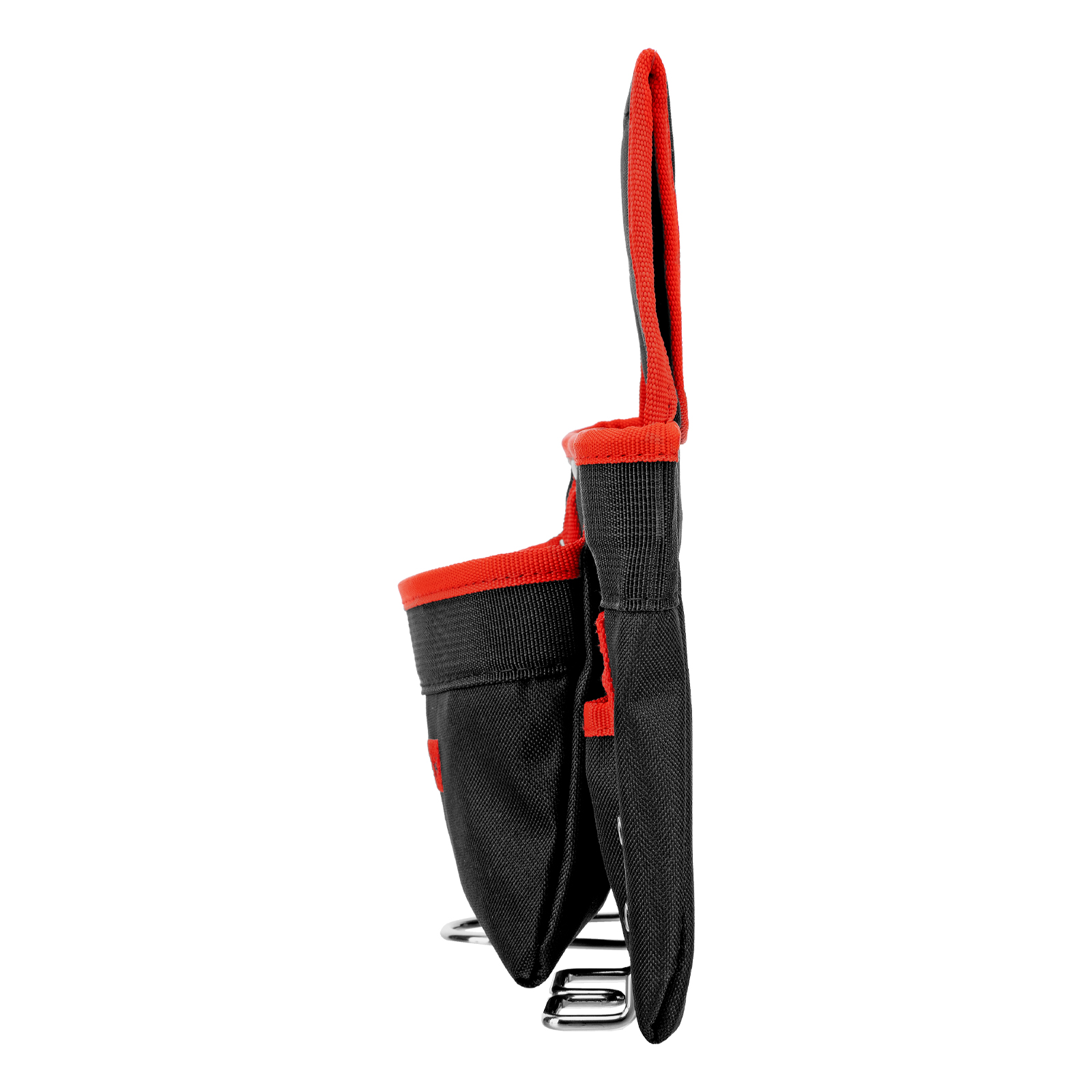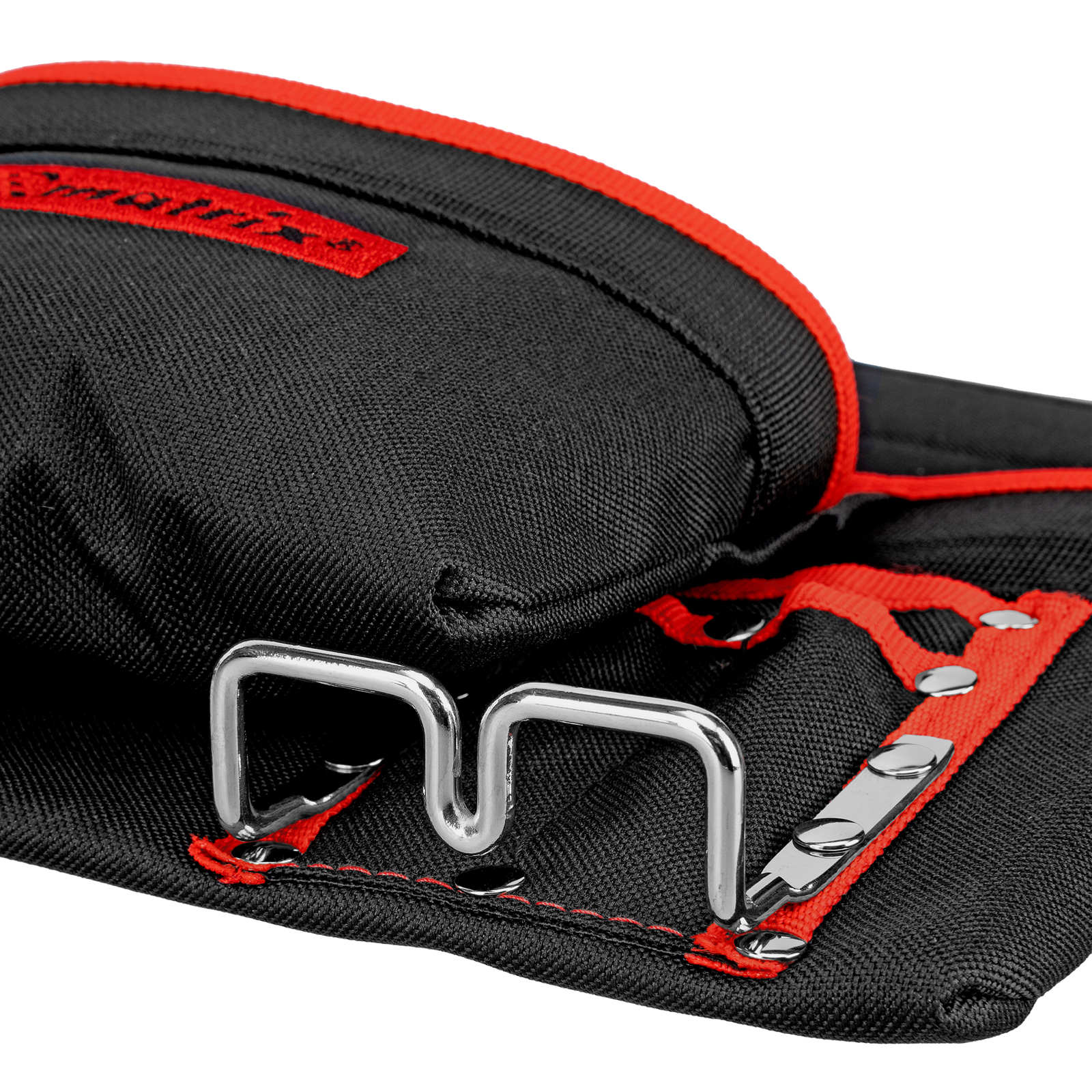 - Быстрый доступ к молотку и клещам — металлические держатели для них закреплены снаружи подсумка.