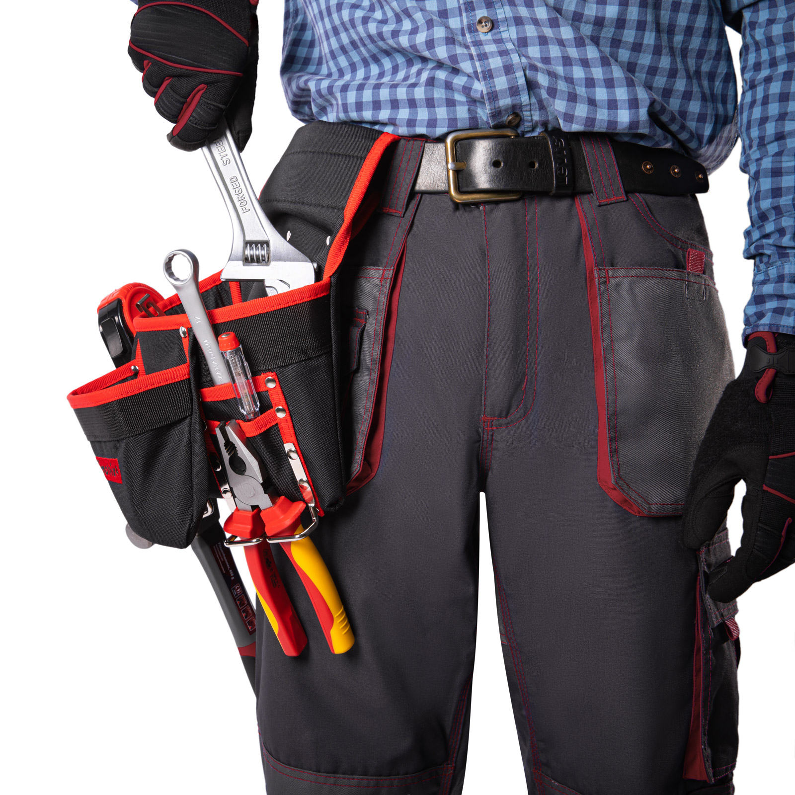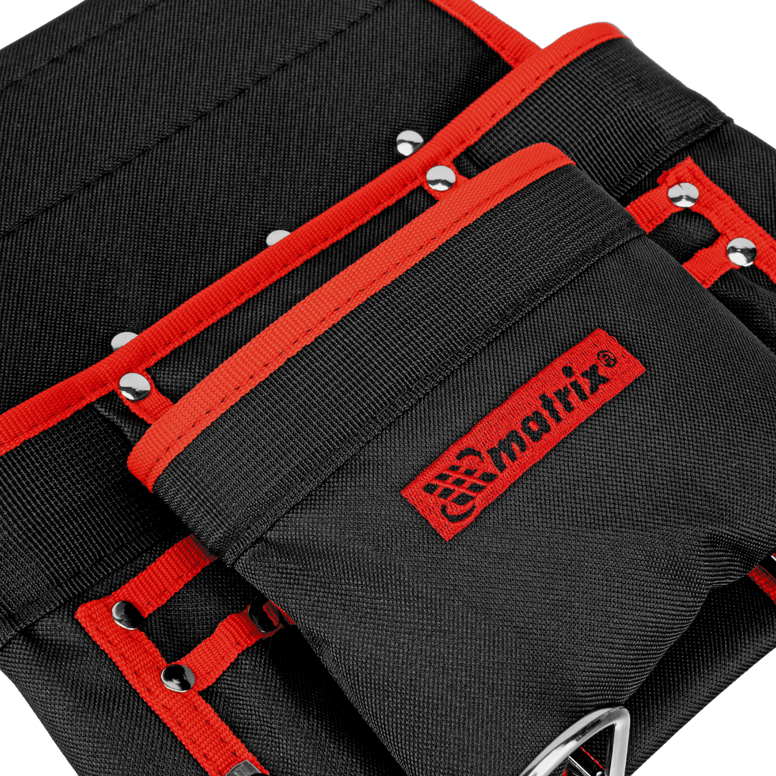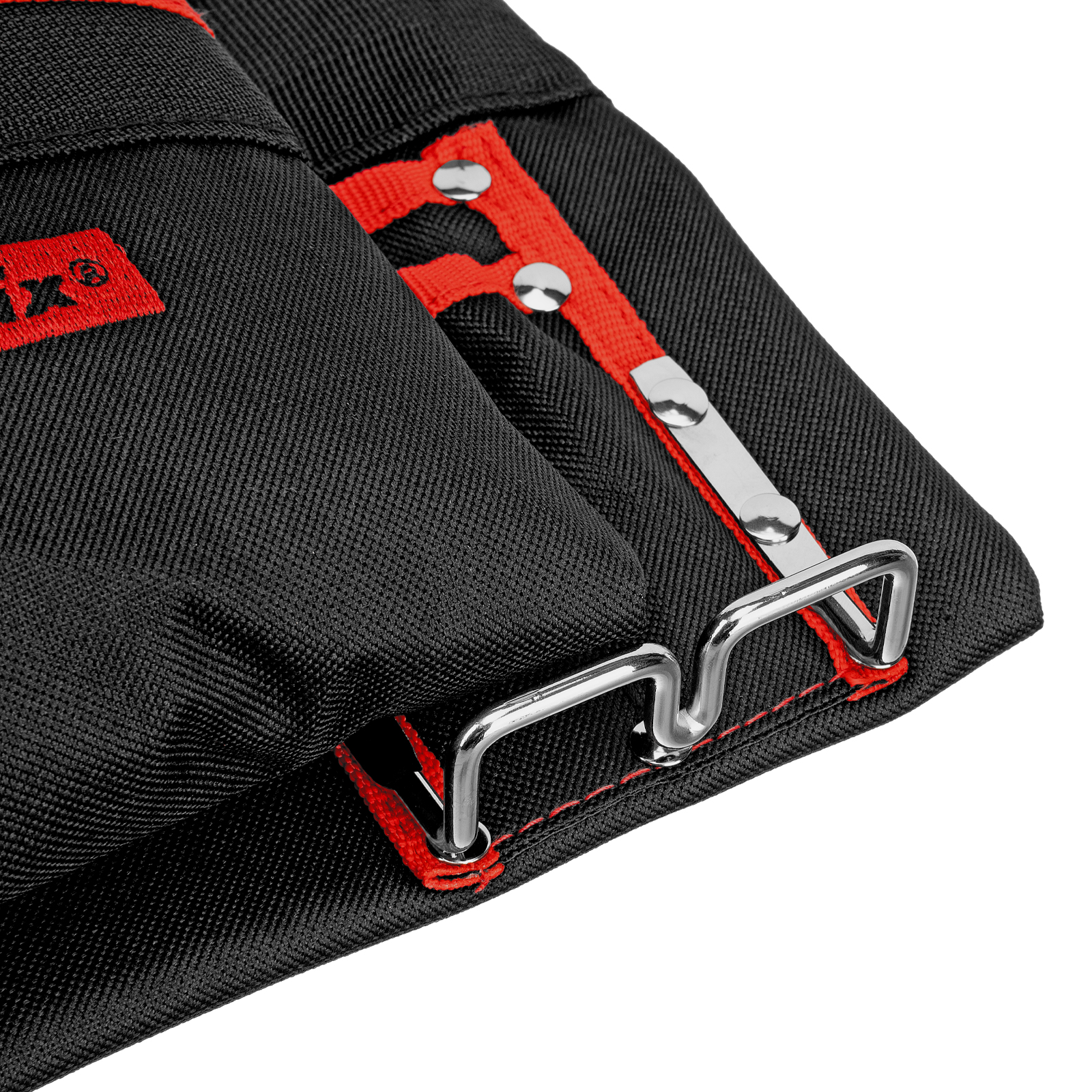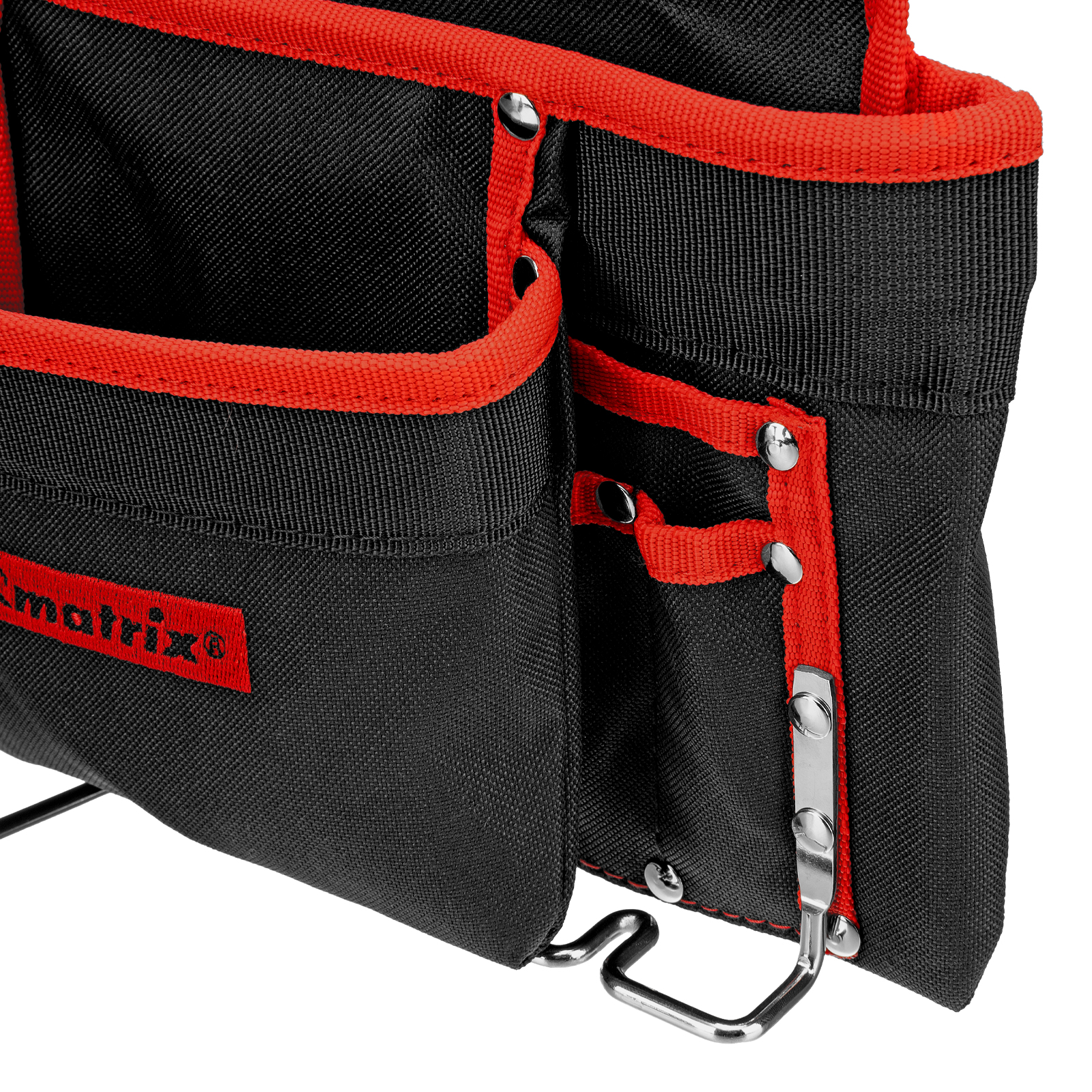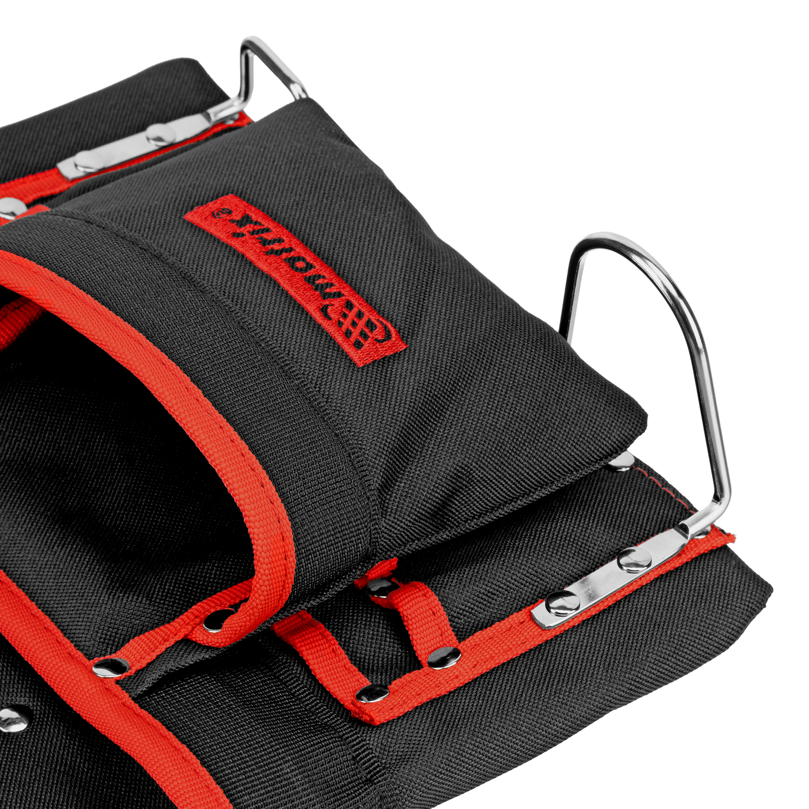 - Быстрый доступ к молотку и клещам — металлические держатели для них закреплены снаружи подсумка.