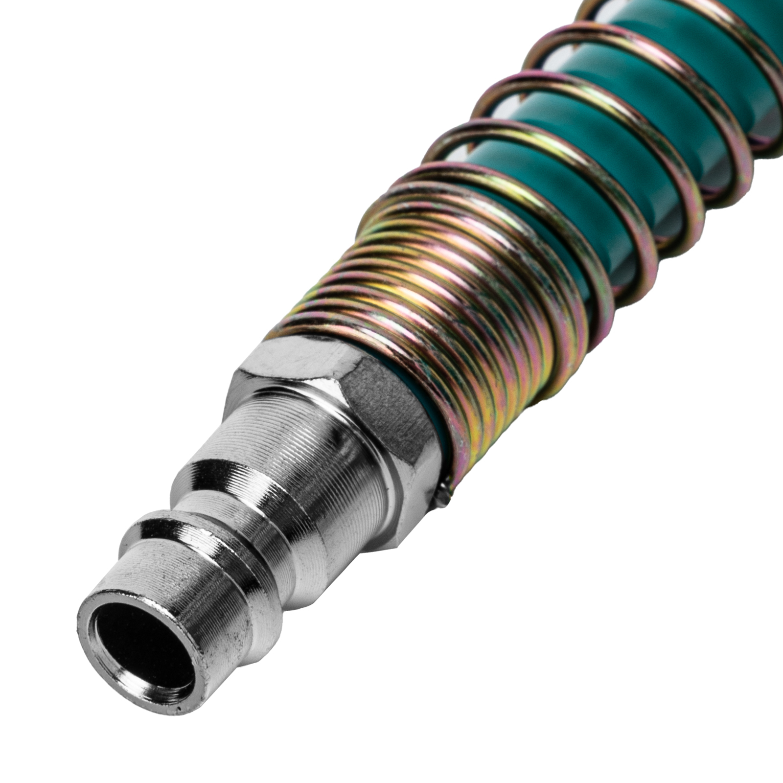 Профессиональный полиуретановый спиральный шланг Stels 57009 из сырья BASF, длиной 15 м, с быстросъемными соединениями, предназначен для подключения пневматического оборудования. Благодаря увеличенной толщине рукав выдерживает давление до 24 бар, поэтому подходит для мощного компрессорного оборудования. Используется в строительстве и на производственных предприятиях.