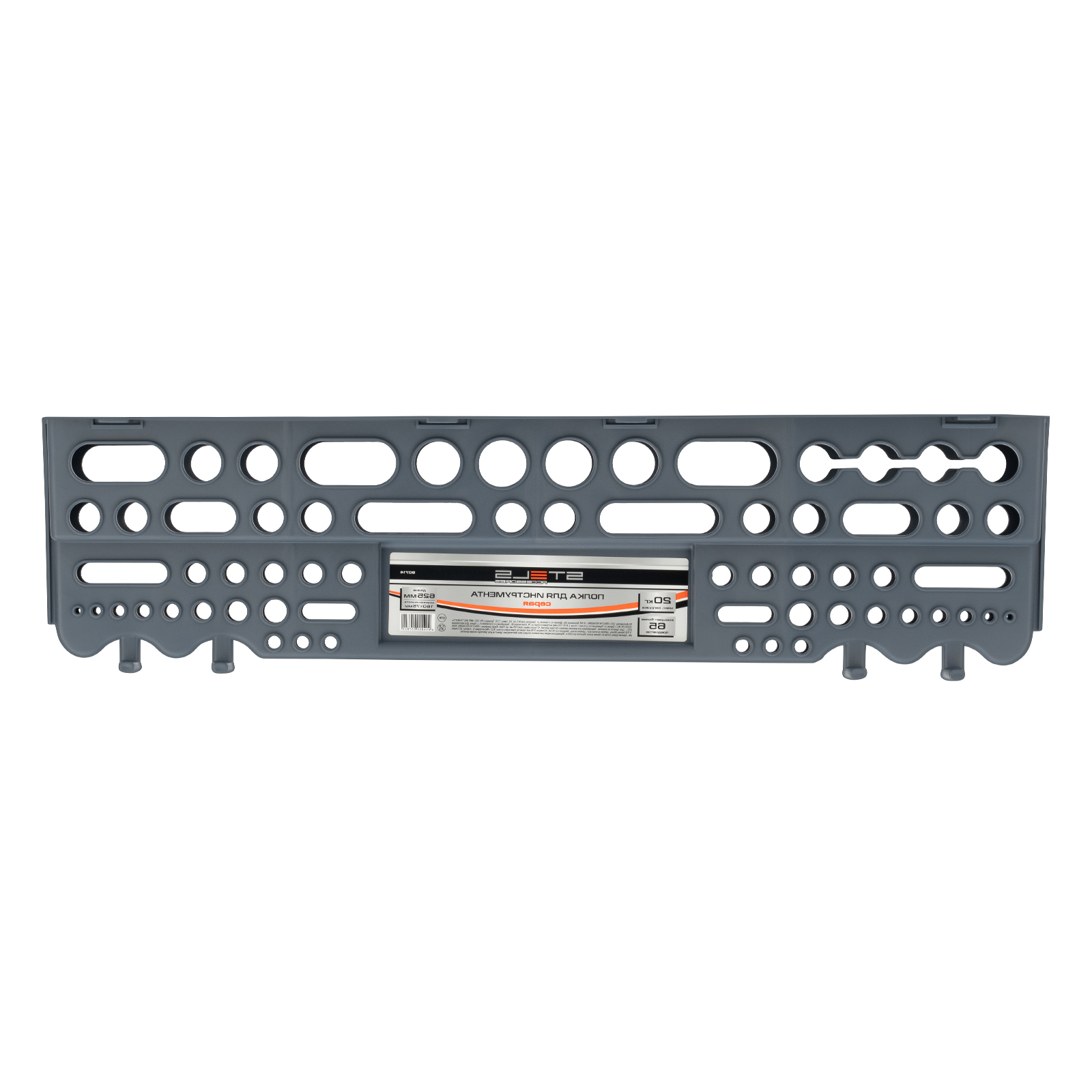 - Большая длина 625 мм и индивидуальные отверстия под инструменты — на полке можно разместить до 65 предметов.