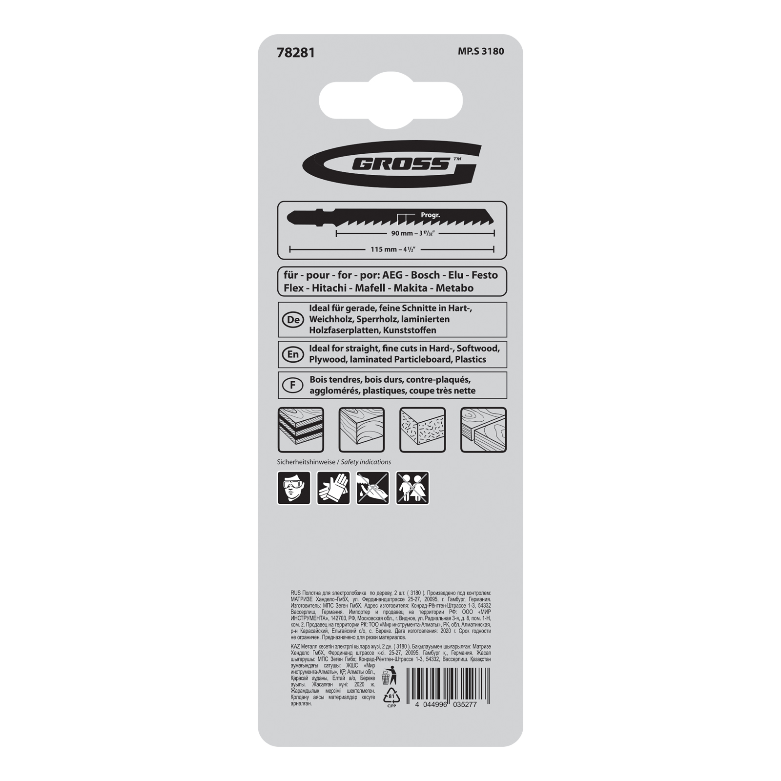 Полотна по дереву Gross 78281, 2 шт. (3180), являются сменными режущими элементами для большинства современных моделей электролобзиков. Осуществляют прямой рез заготовок из древесины и изделий толщиной 1-80 мм. Высококачественные полотна пригодятся профессиональным мастерам в ходе проведения ремонтных и строительных работ.