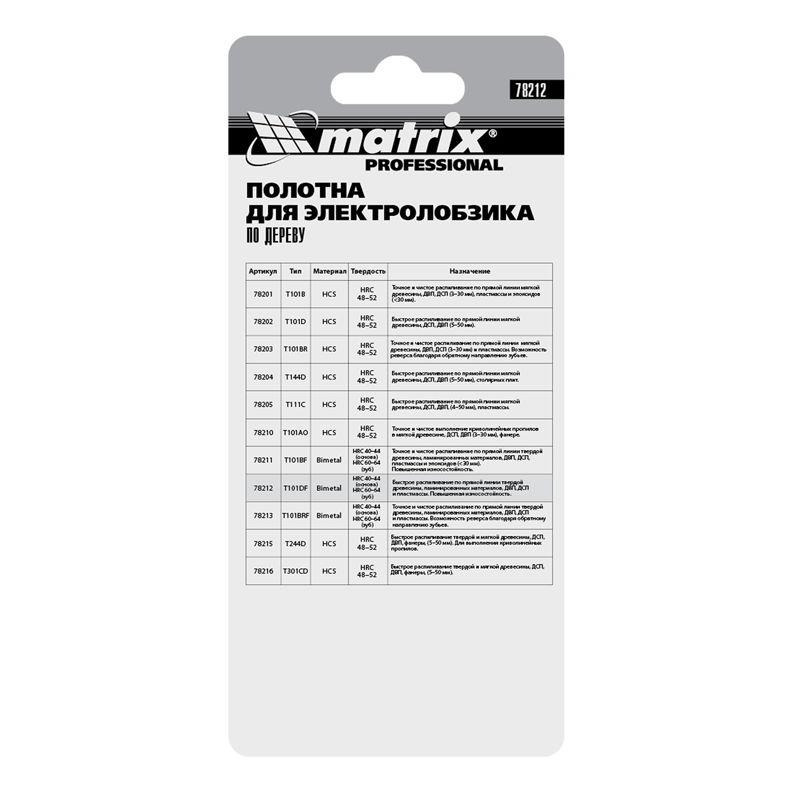 Полотна для электролобзика T101DF Matrix 78212 с шагом зубьев 4 мм, биметаллические (Bimetal), 3 шт. в упаковке, имеют рабочую длину 75 мм и используются для работ по дереву. Позволяют распилить фанеру, древесину, ДСП толщиной до 30 мм, эффективны для работы с клееными и ламинированными материалами. Шлифованные зубья с шагом 4 мм обеспечивают быстрый рез, позволяя получить тонкий и чистый распил. Полотна можно устанавливать на электролобзики с зажимом под Т-образный хвостовик. Пилки пригодятся во время ремонта и для решения бытовых задач.