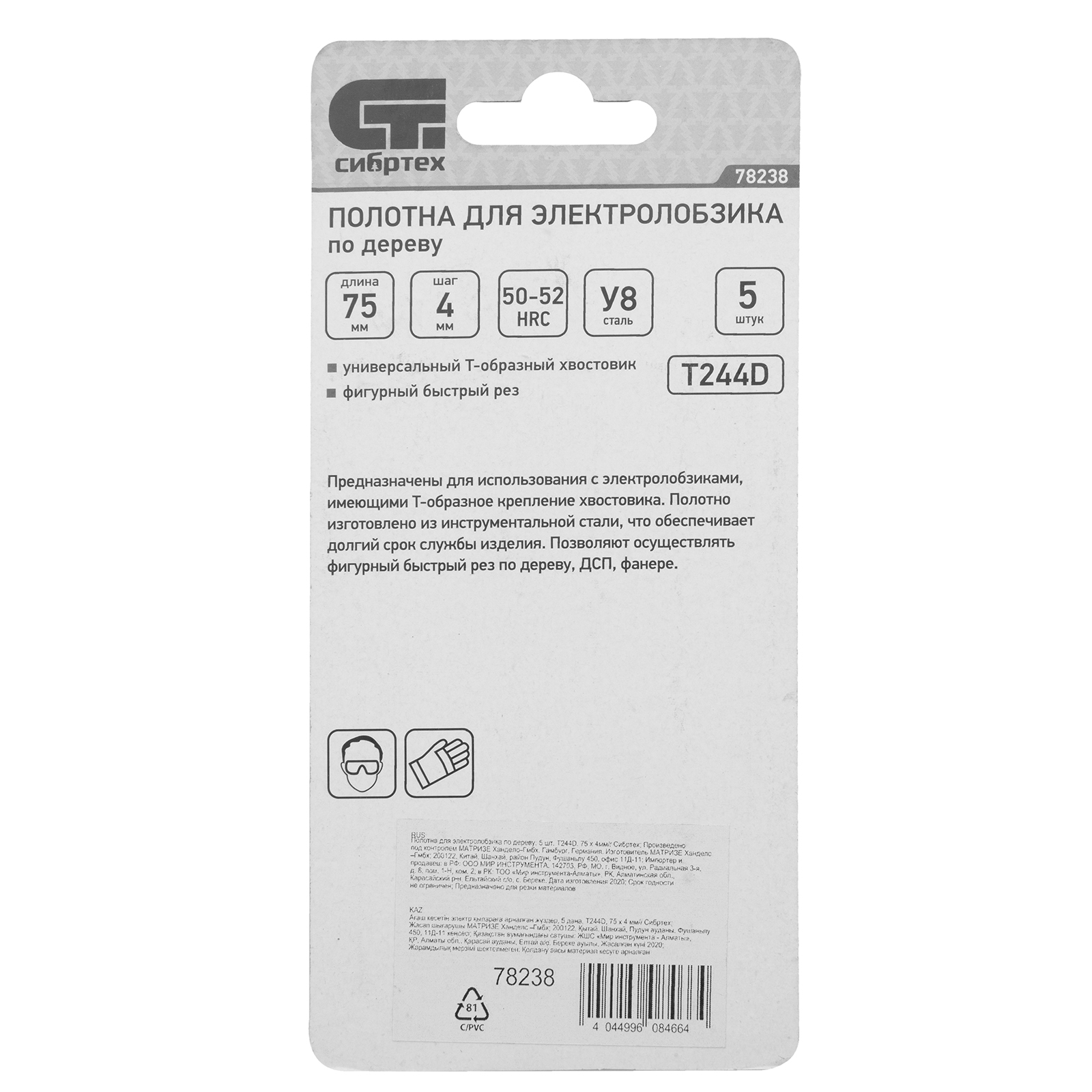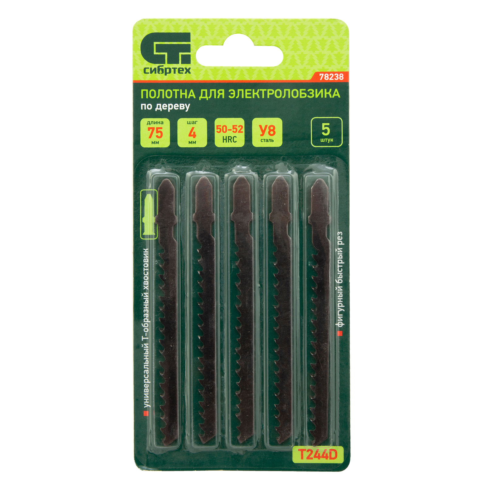 Полотна по дереву Сибртех 78238, 5 шт. T244D, 75 х 4мм, устанавливаются на электролобзики в качестве режущего элемента. Они помогают произвести быстрый рез деревянных конструкций. Полотна пригодятся мастерам при выполнении бытовых ремонтных работ.