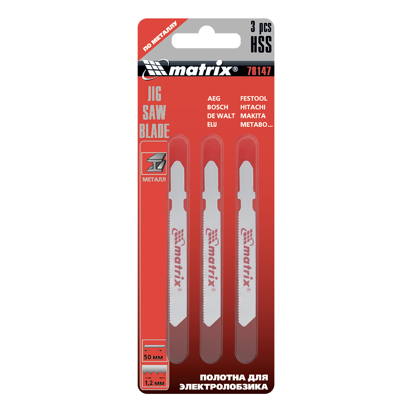 Полотна для электролобзика Matrix 78147 с шагом зубьев 1,2 мм, из стали HSS, с EU-хвостовиком, 3 шт. в упаковке, имеют рабочую длину 50 мм и предназначены для работ по металлу. Имеют стандартный Т-образный хвостовик и могут быть установлены на большинство современных моделей электролобзиков. Используются в слесарном деле, будут также полезны в быту.
