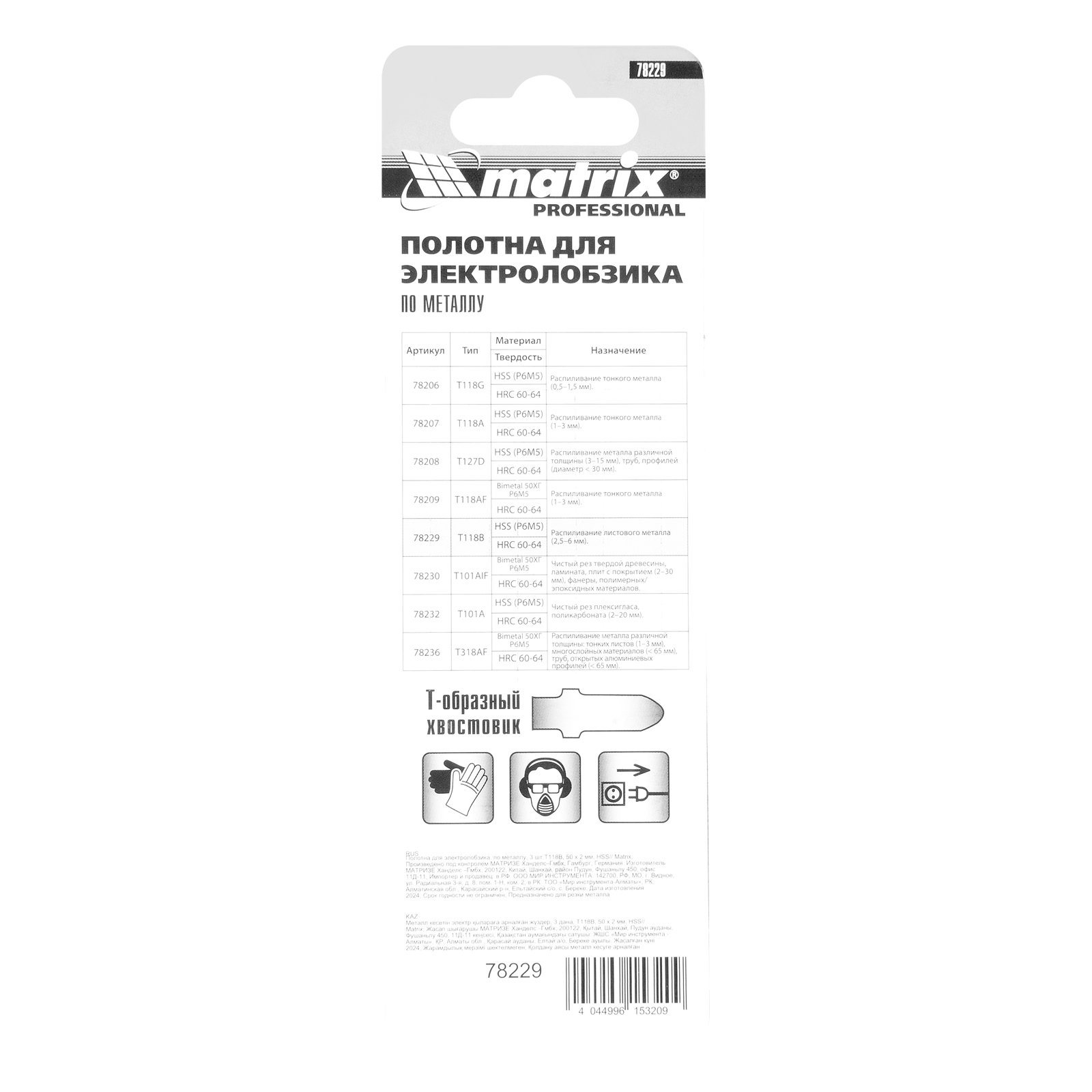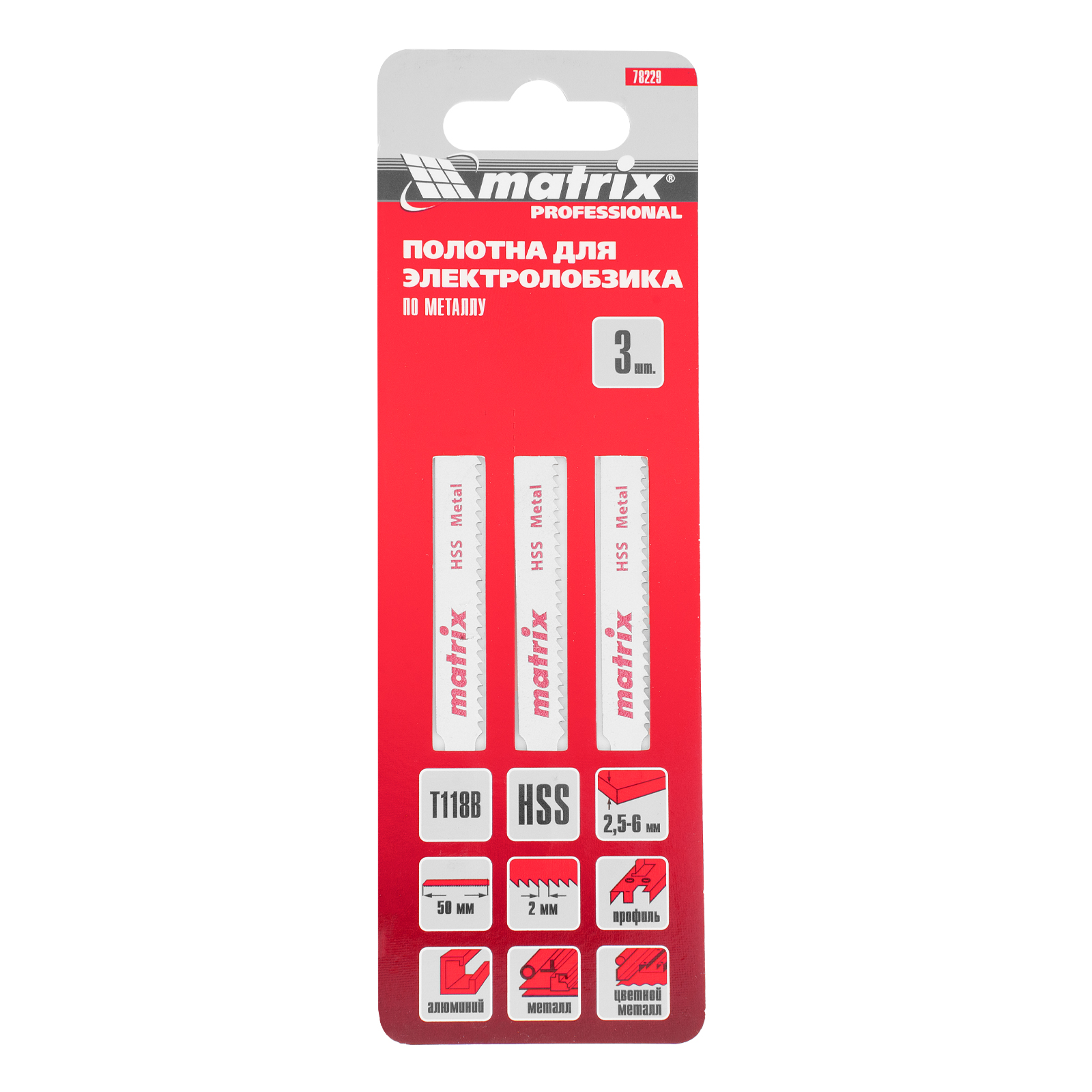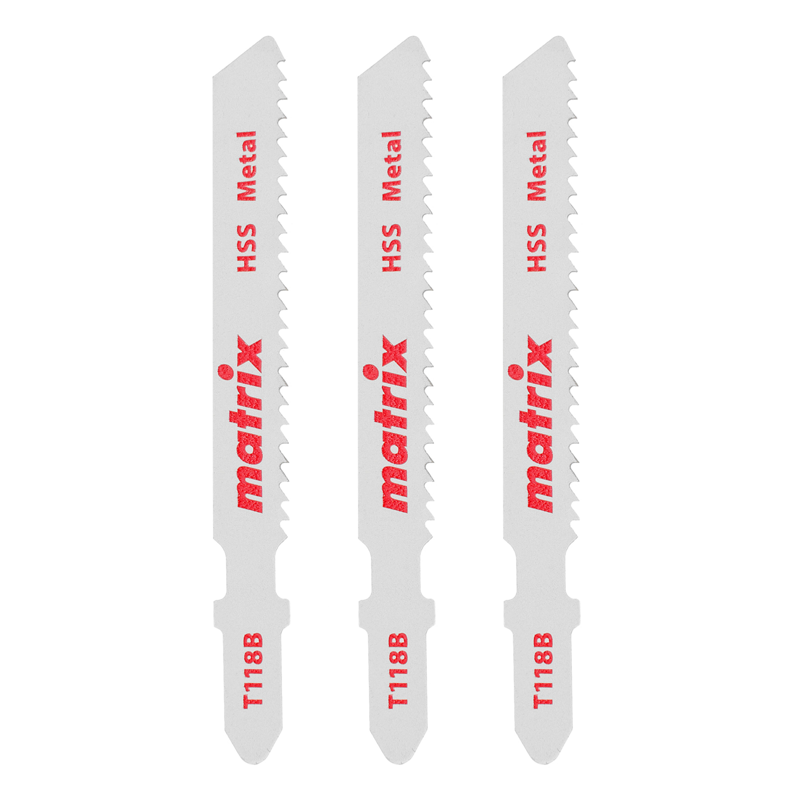 Полотна для электролобзика T118B Matrix 78229 с рабочей длиной 50 мм и шагом зубьев 2 мм, из стали HSS, входят в набор из 3 шт. и предназначены для выполнения работ по металлу. Используются для распиливания металлических заготовок толщиной 2,5-6 мм. Благодаря Т-образному хвостовику совместимы с большинством современных электролобзиков. Пилки применяются в слесарном деле, также будут полезны в быту.