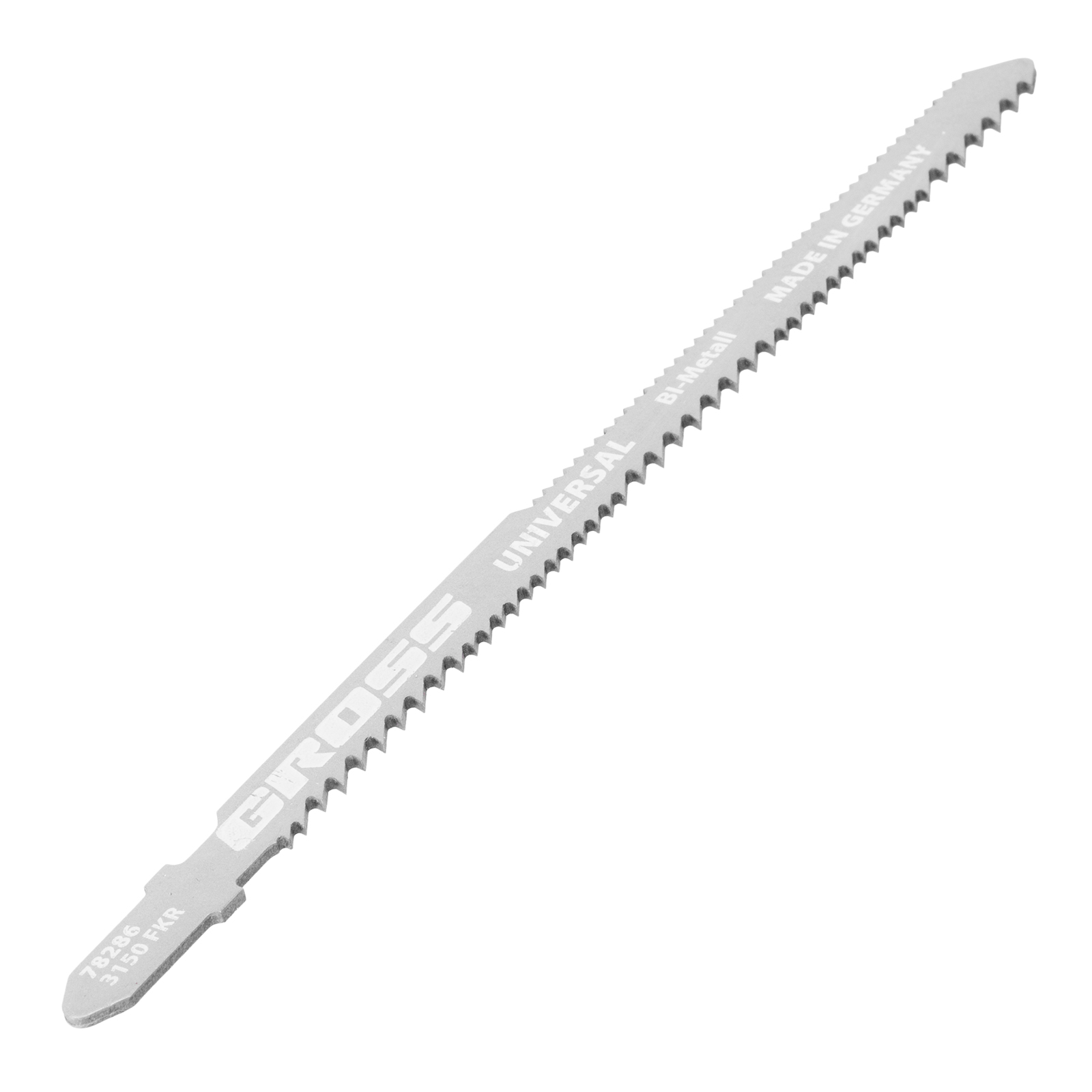 Универсальные двусторонние полотна Gross 78286, 2 шт. (3150 - FKR), предназначены для фигурного и чистого прямого реза под свободным углом. Позволяют работать практически с любым типом материалов: черным и цветным металлом, алюминиевым профилем и трубами толщиной 3-10 мм, оргстекла и пластмассы 3-100 мм, ламината, ДСП, древесины 5-100 мм, в том числе клееной. Полотна изготовлены из качественных материалов на высокотехнологичном производстве в Германии, поэтому рассчитаны на профессиональное использование.