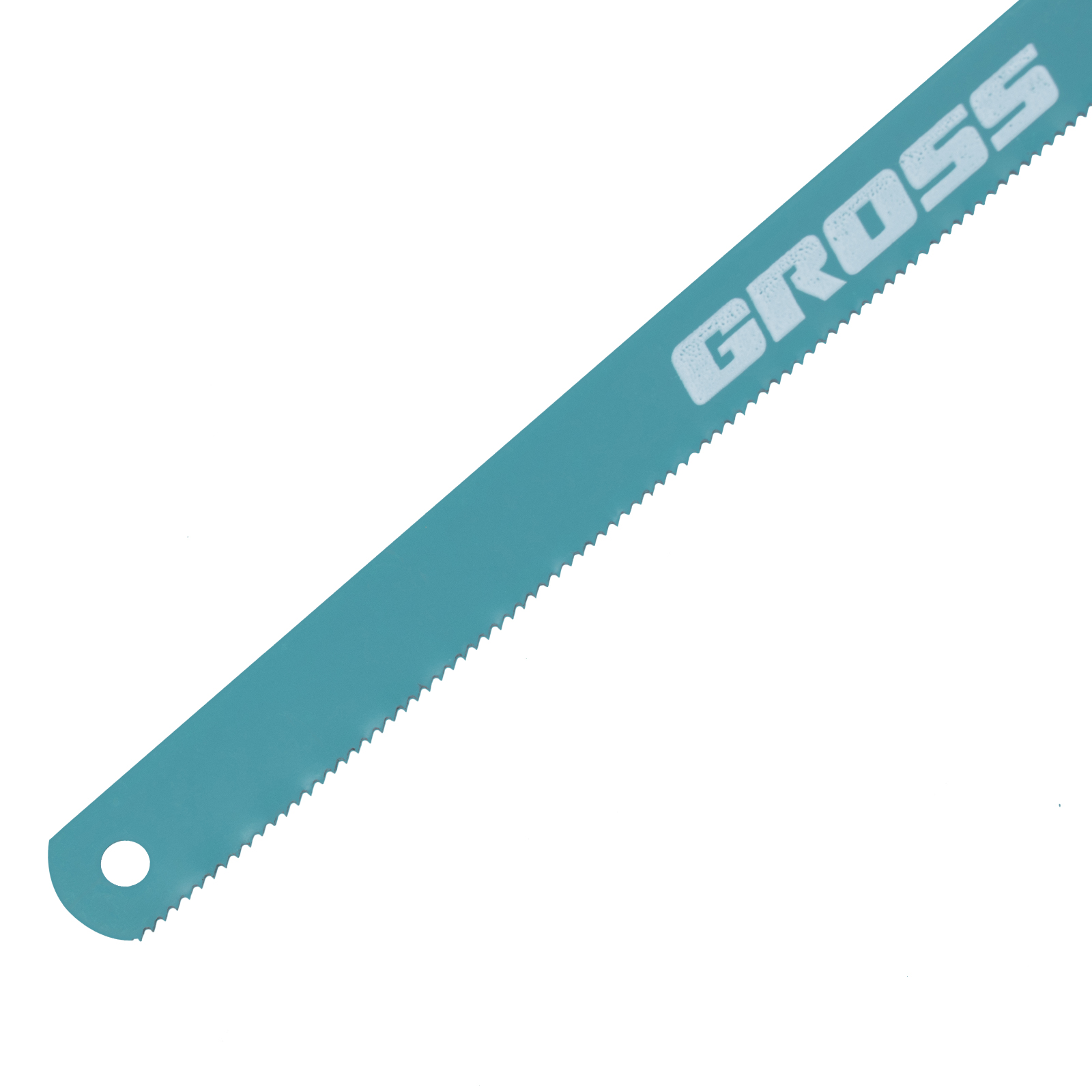 <p>Полотна для ножовки GROSS 77725 длиной 300 мм, с шагом зубьев 18 TPI, предназначены для резания черных и цветных металлов, «нержавейки», пластика. Пригодятся частным и профессиональным мастерам для проведения слесарных, монтажных и других работ. Полотна совместимы с ножовками Gross 77600, 77602, 77604 и другими моделями соответствующего типоразмера.</p><h2>Преимущества</h2><ul><li>Высокие рабочие качества — полотна выполнены из быстрорежущей инструментальной стали HSS.</li><li>Производительность — зубья с шагом 18 TPI (1,4 мм) успешно режут заготовки большой толщины.</li><li>Эффективная работа — благодаря агрессивной разводке зубьев полотна двигаются свободно и не застревают.</li><li>Удобная комплектация — можно установить полотна на 2 ножовки одновременно или обеспечить длительную эксплуатацию одного инструмента.</li></ul>