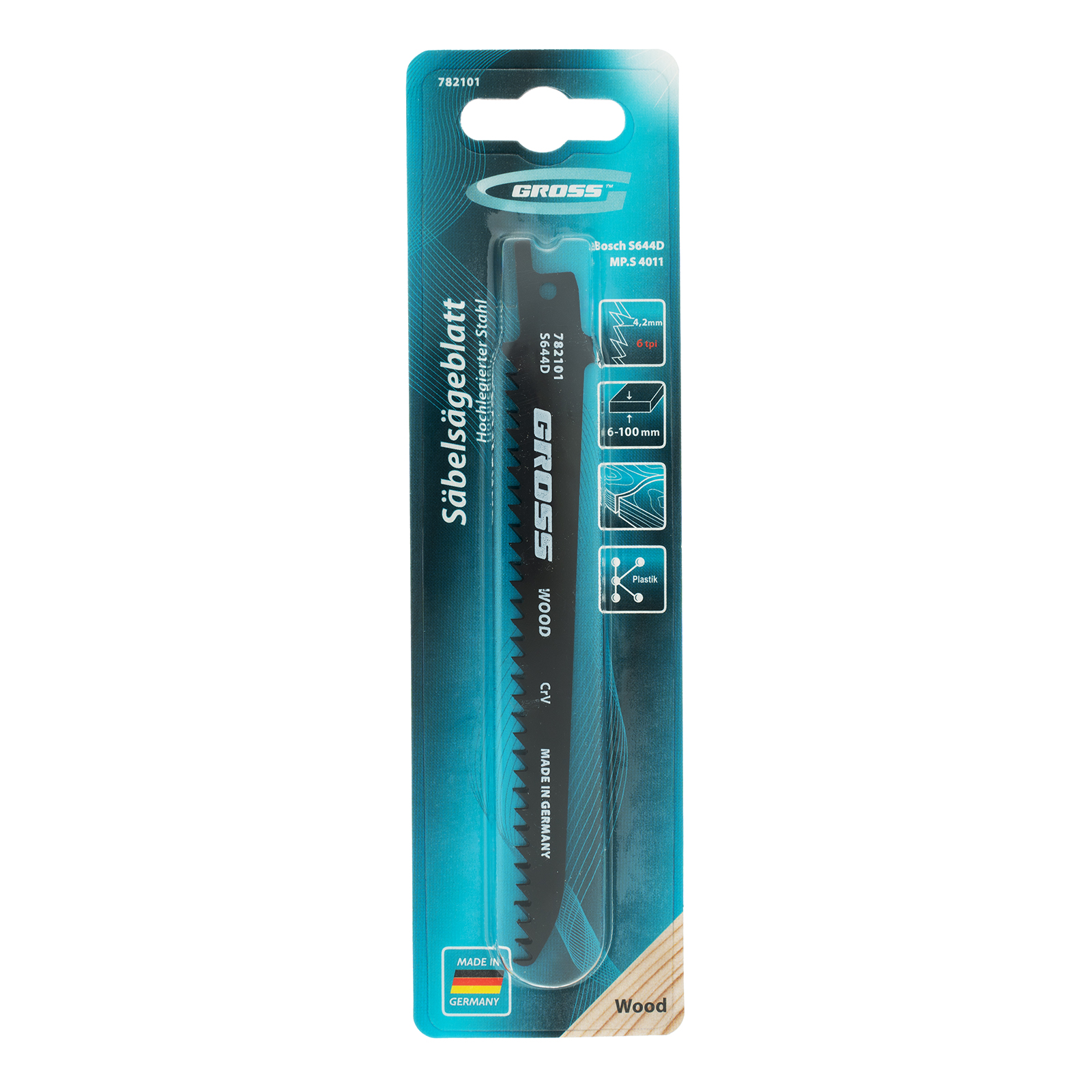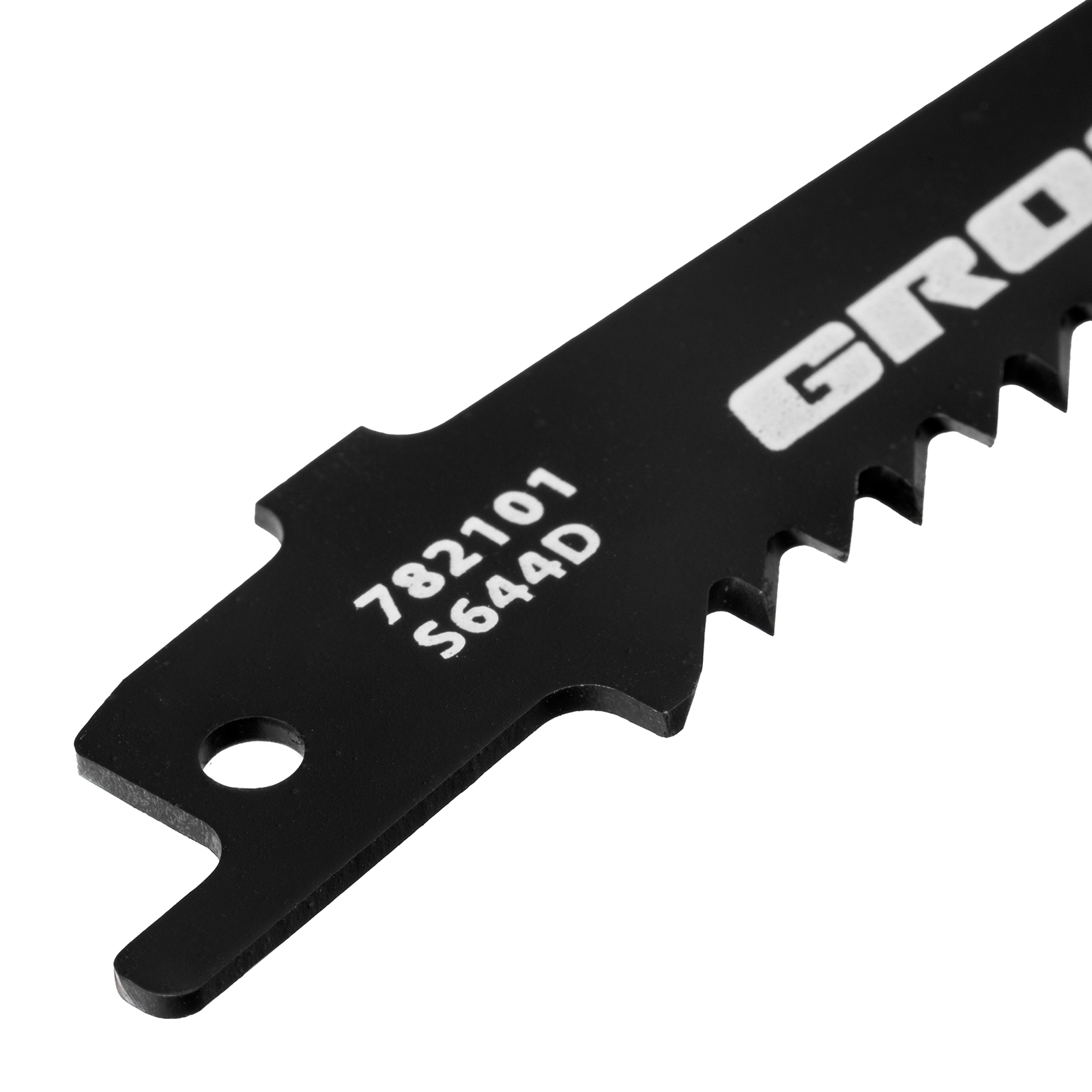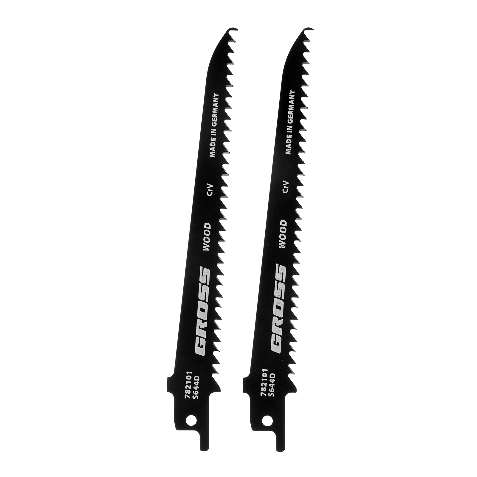 Полотна по дереву Gross 782101, 4011 - S644D, 2 шт. размером 130 x 4,2 мм, используются совместно с сабельной пилой для фигурного и прямого реза. Профессиональные полотна обеспечивают возможность реза древесины любой твердости толщиной до 100 мм. Они пригодятся при проведении ремонтных, строительных, монтажных/ демонтажных работ.
