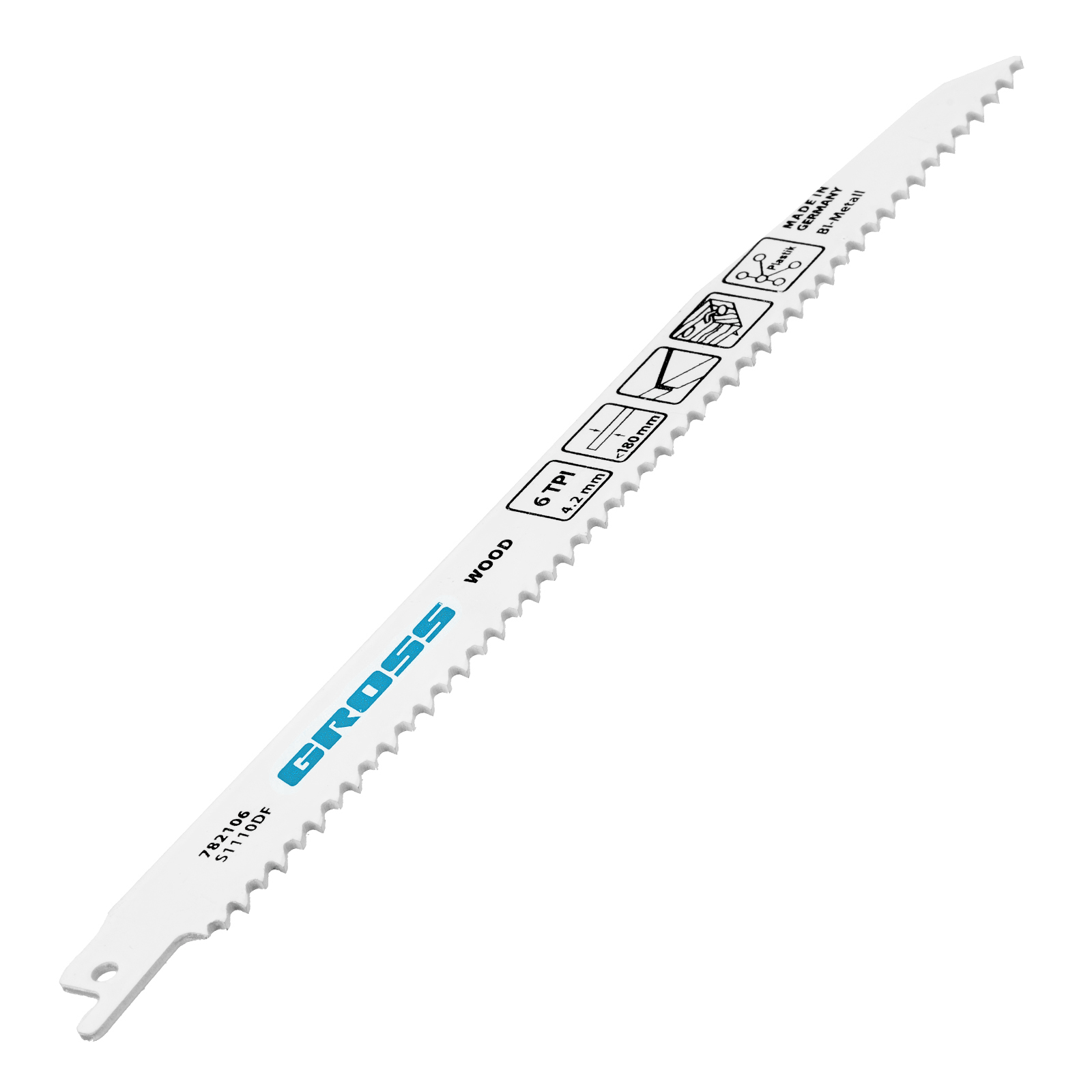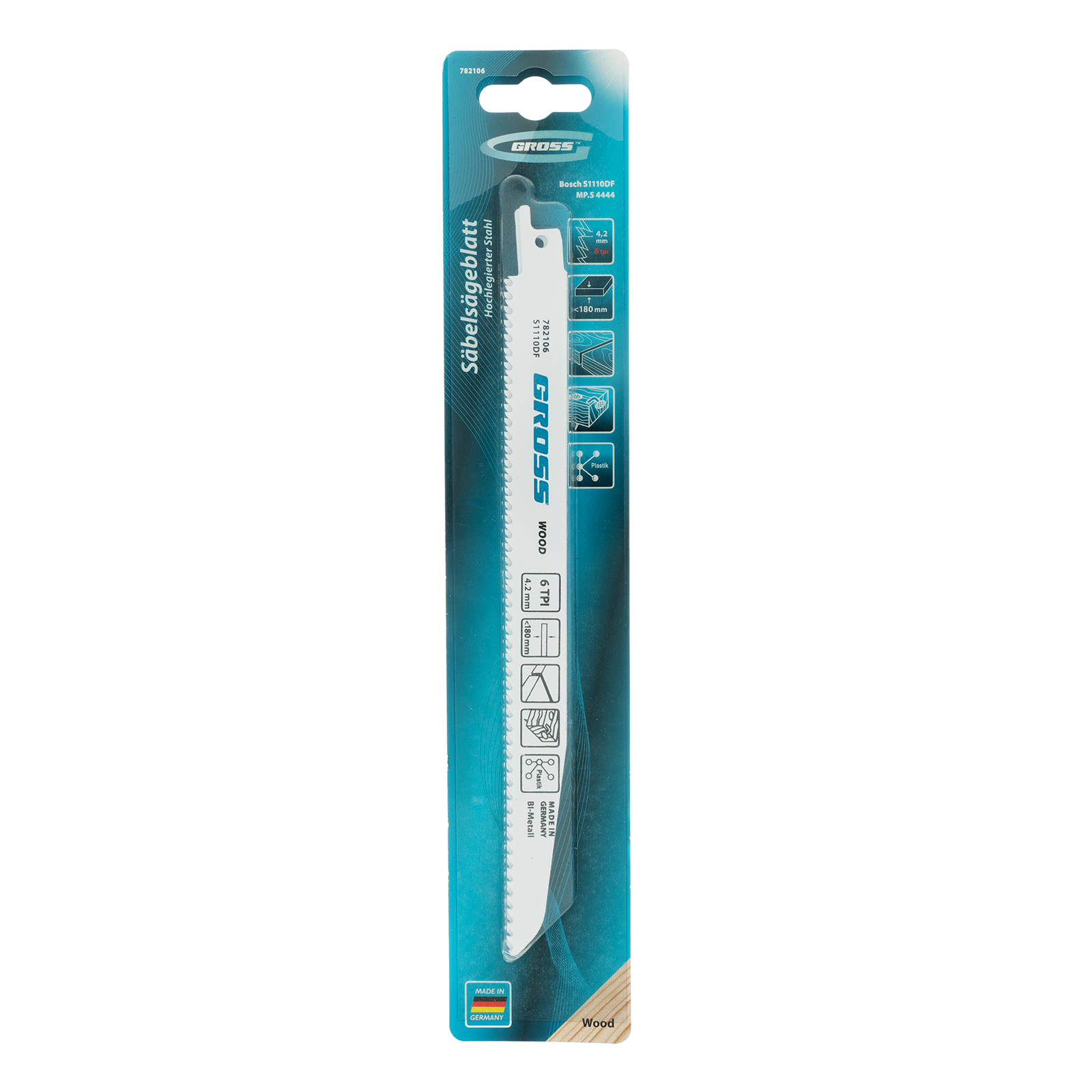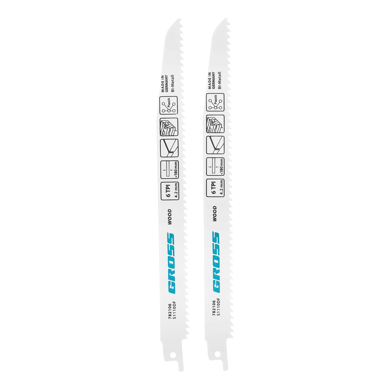 Полотна по дереву Gross 782106, 4444 - S1110DF, 210 x 4,2 мм, 2 шт., предназначены для установки на сабельную пилу. Они оптимальны для демонтажа изделий из дерева: мебели, окон, ограждений и различных конструкций. Увеличенная толщина 1,57 мм обеспечивает высокую надежность полотен, поэтому они рассчитаны на профессиональное применение.