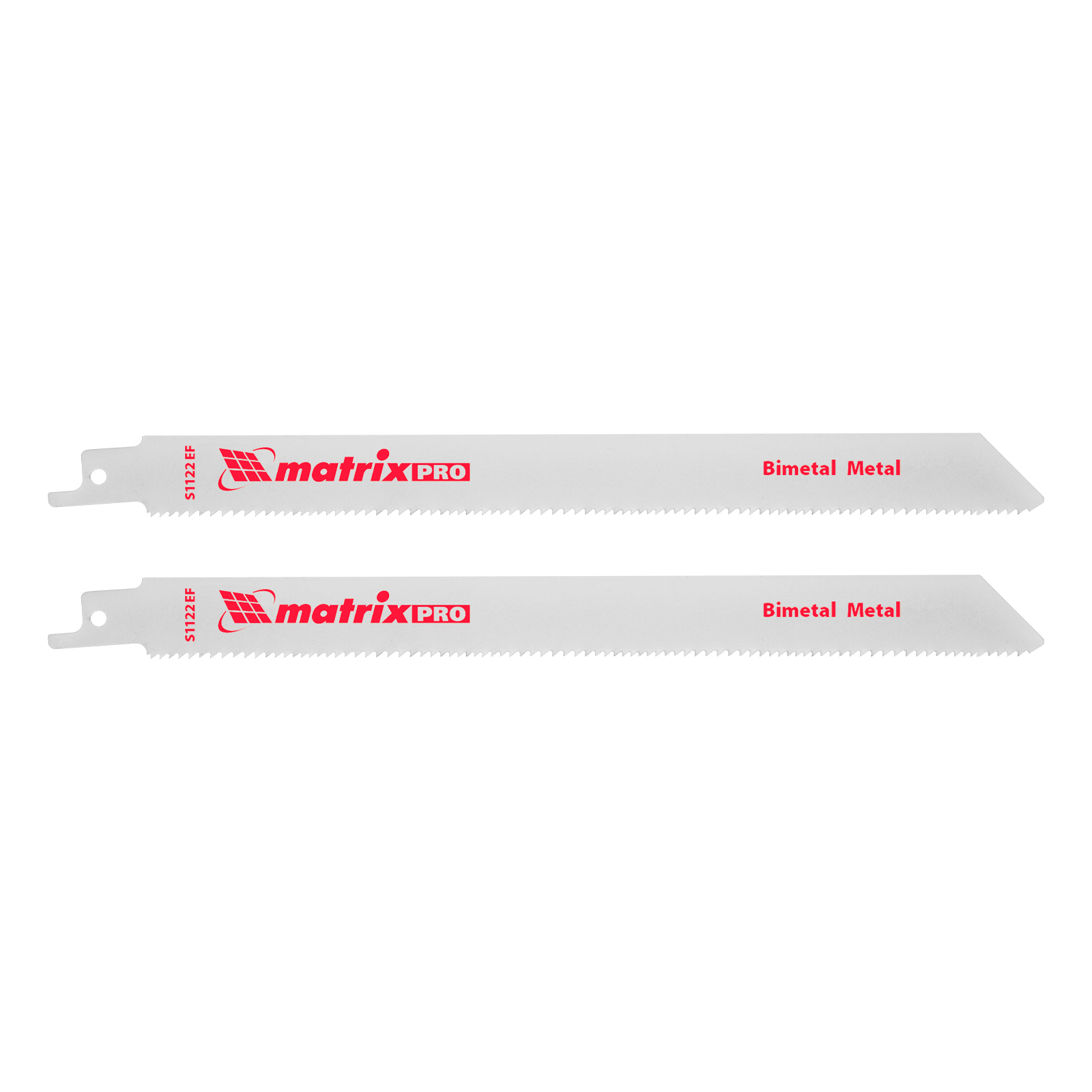 <p>Полотна по металлу Matrix PRO 782010, S1122EF, с рабочей длиной 200 мм и шагом зубьев 1,4 мм, Bimetal, — оснастка для сабельной пилы. Позволяют работать с листовым металлом, в том числе цветным, а также с трубами и алюминиевыми профилем толщиной до 180 мм. Совместимы с большинством современных электропил. Полотна используются при проведении строительных и демонтажных работ, а также для решения бытовых задач.</p><h2>Преимущества</h2><ul><li>Отличные режущие свойства в сочетании с прочностью и гибкостью — основа полотна выполнена из пружинной стали 65Г, на нее наварена рабочая кромка из быстрорежущей стали М42.</li><li>Высокий рабочий ресурс — зубья закалены до твердости 60-64 HRC и долго сохраняют режущие качества.</li><li>Гладкий и точный распил — зубья имеют мелкий шаг 1,4 мм, корпус отшлифован.</li><li>Экономия на расходниках — в упаковке 2 полотна, которых хватит надолго.</li></ul>
